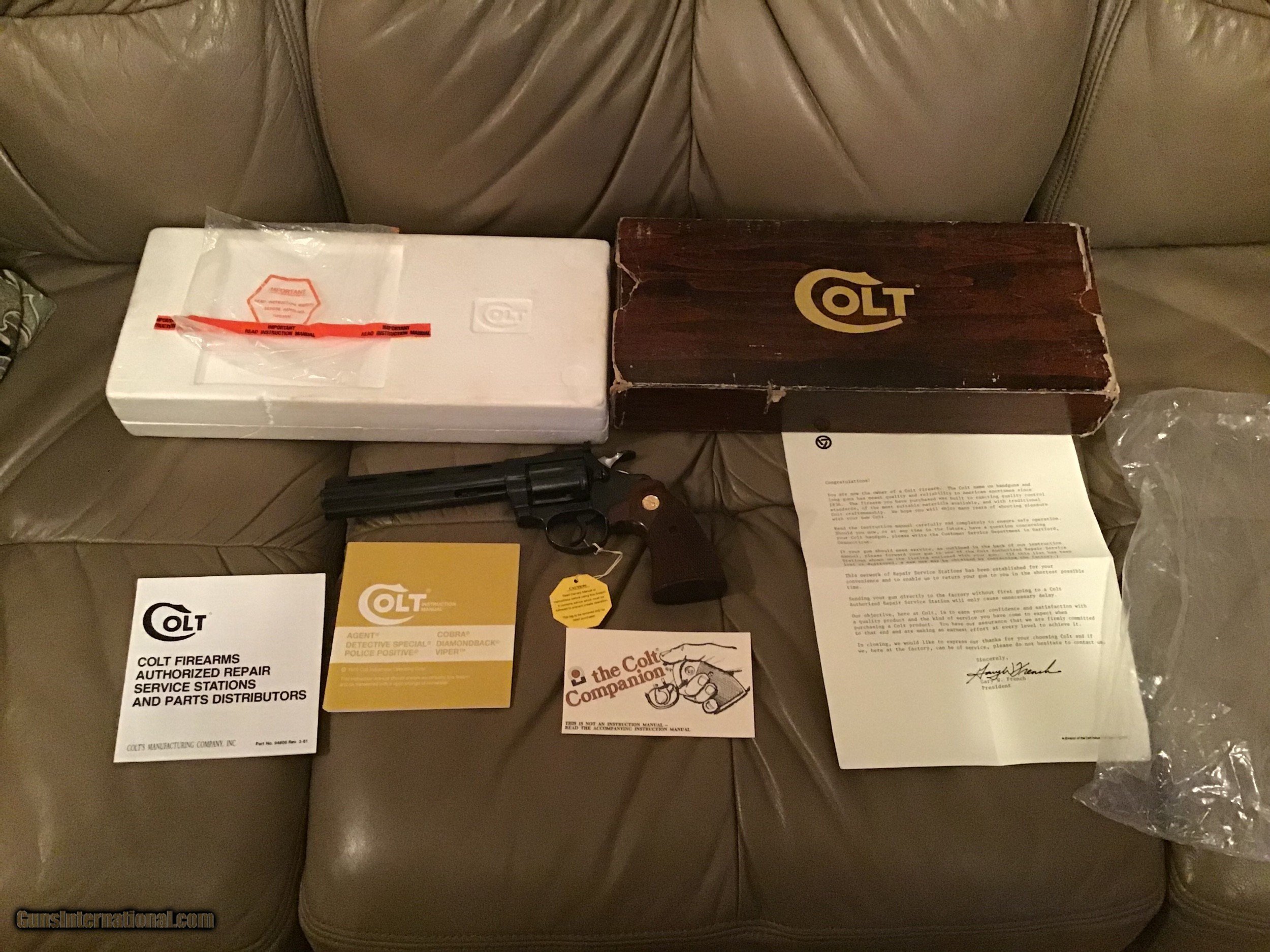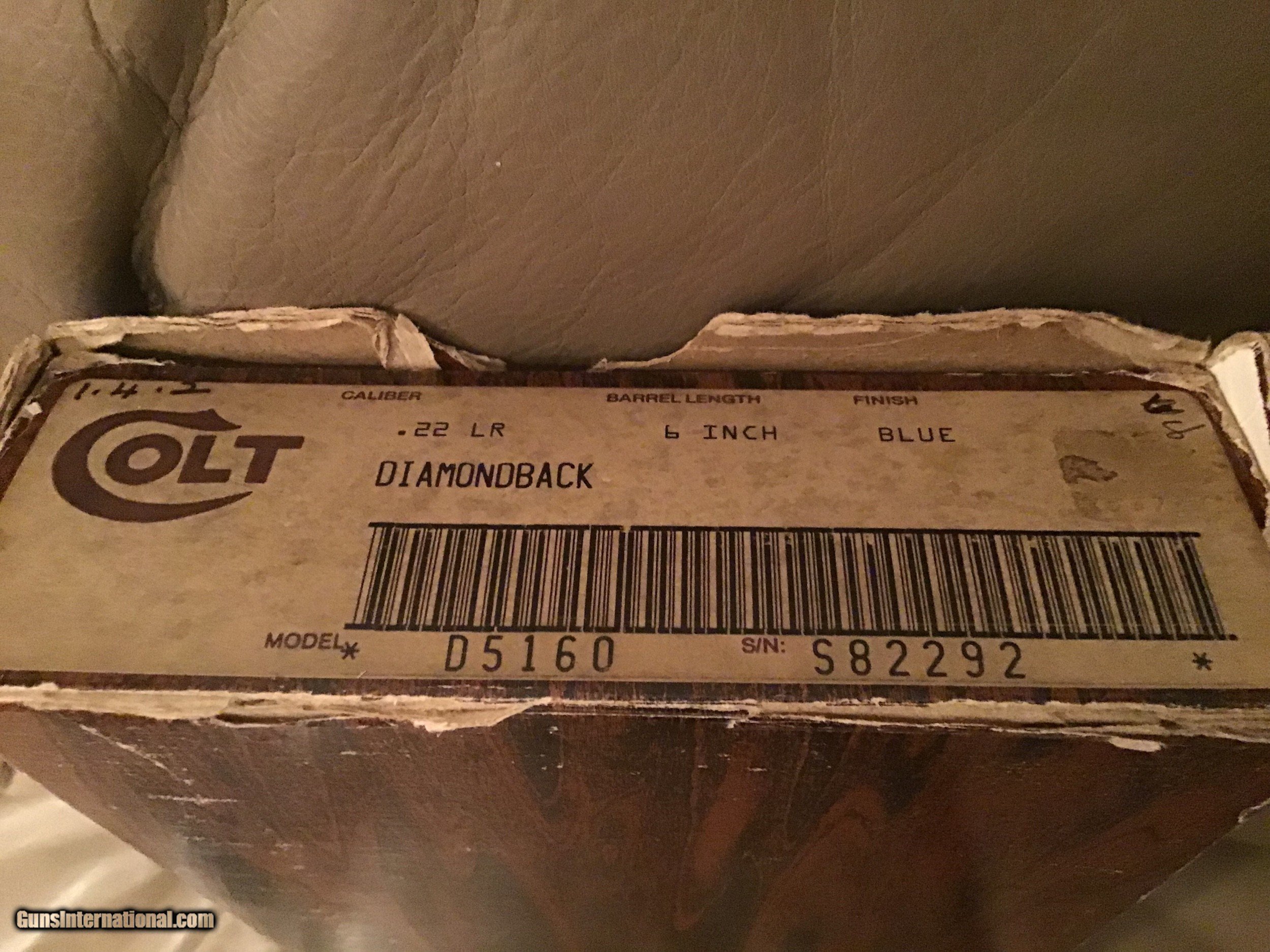 COLT DIAMONDBACK 22 LR. 6” BLUE, NEW UNFIRED, UNTURNED IN FACTORY COSMOLINE, MFG. 1981, IN THE FACTORY BOX