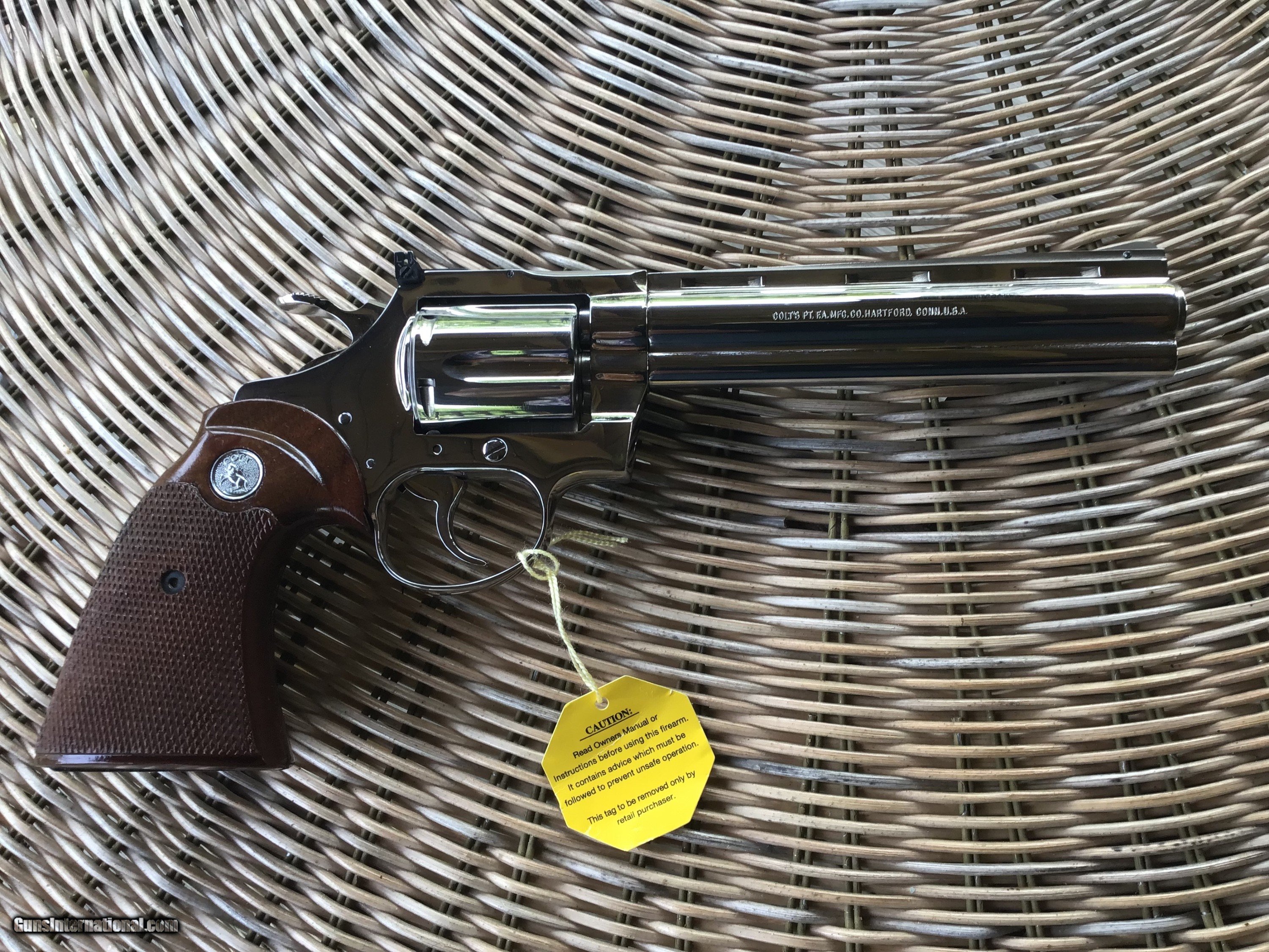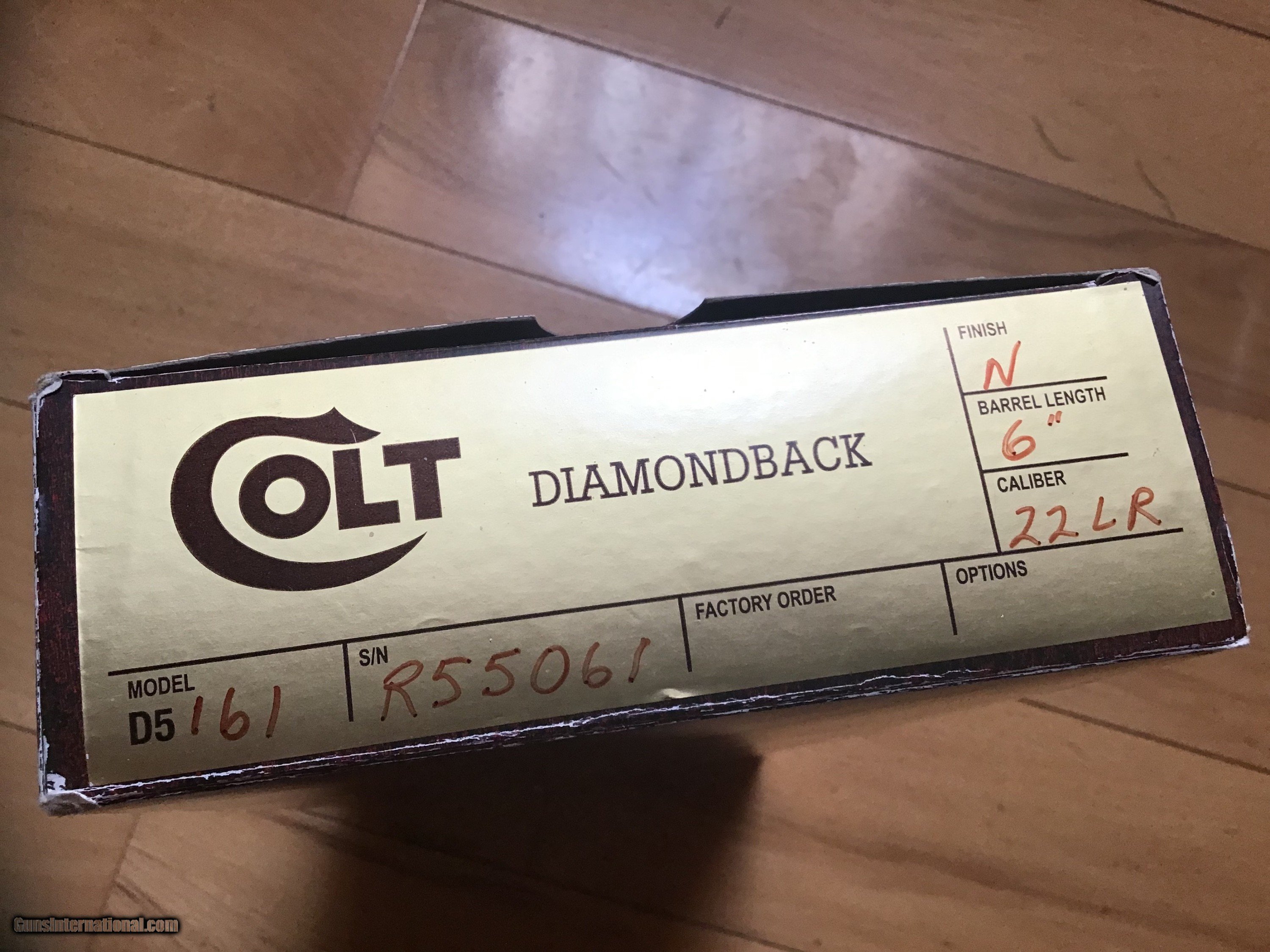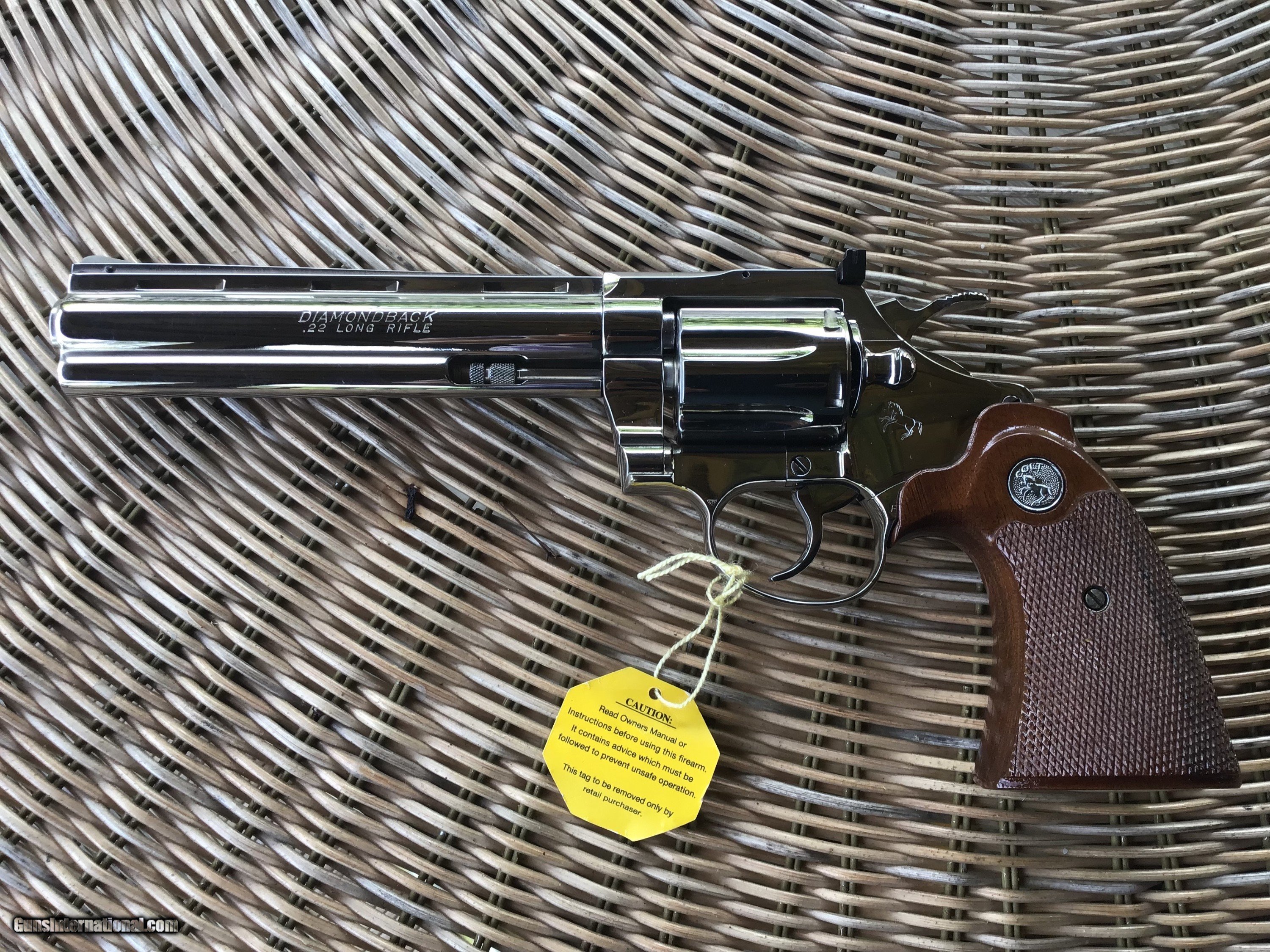 COLT DIAMONDBACK 22 LR. 6” BRIGHT NICKEL, MFG. 1978, NEW UNFIRED, UNTURNED IN THE BOX WITH OWNERS MANUAL, HANG TAG, COLT LETTER, ETC.