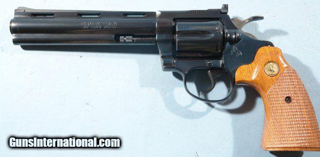 Description: COLT DIAMONDBACK .22 LR CAL. 6” BLUE REVOLVER CA. 1980’S. Very near new. 100% blue. Mint bore and perfect working order. Mint original factory walnut grips. Extra nice. SOLD |