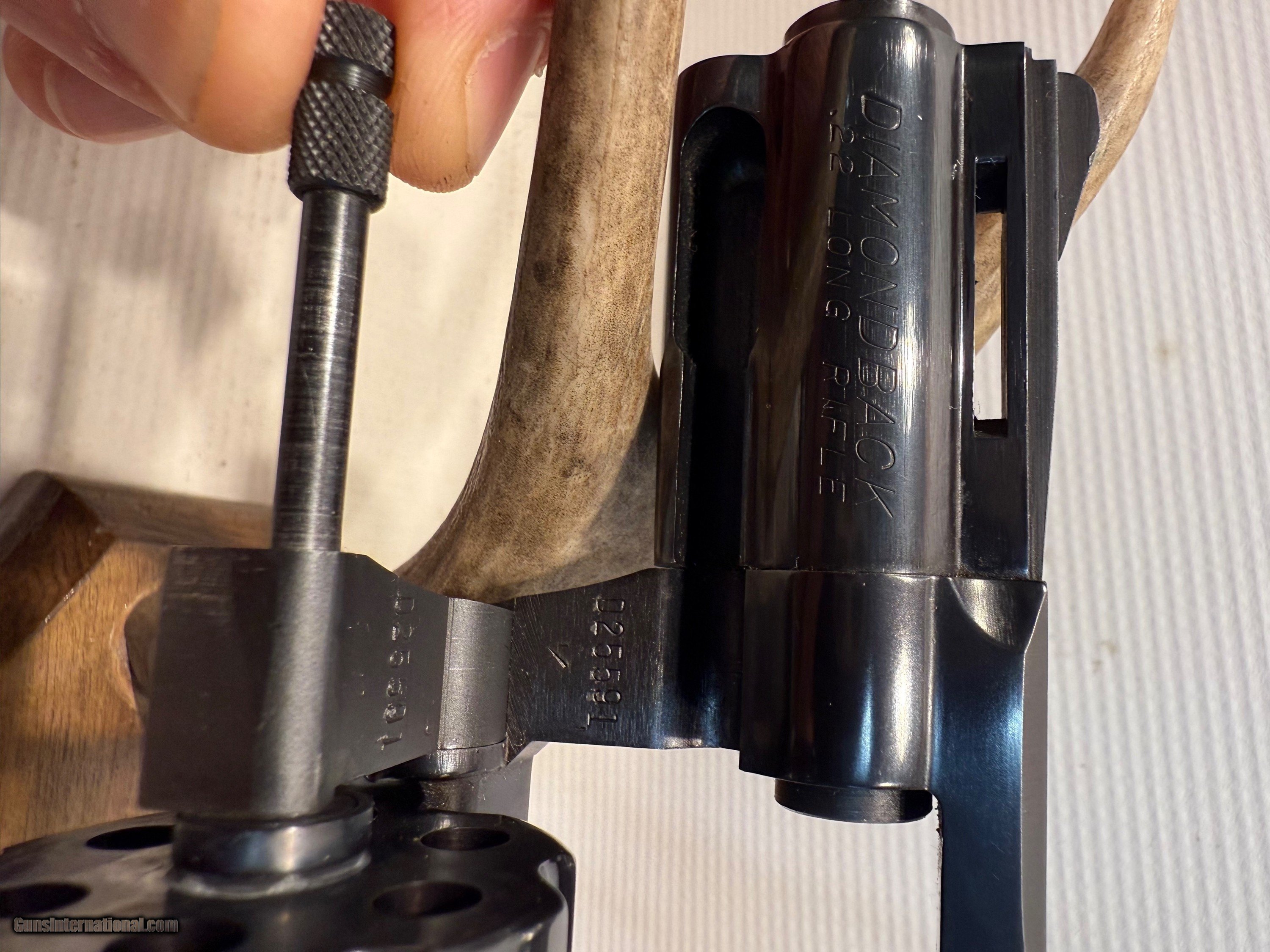 Description: Here we have a Colt Diamondback chambered in .22 Lr. This rare revolver features a 2 1/2" (scarce in .22 LR) VR barrel, blue finish, adj. sights, steel frame, checkered walnut grips and was Mfg. between 1966-1991. This revolver is in pristine condition! The grip has some light imperfections and is in 98% + condition. The bluing is in MINT condition and rated at 98% +. The bore is in perfect condition (95% +/-)! Overall, this revolver is in 98% +/- condition! Please contact us with any questions before making a purchase. This is a very rare revolver with being a 2.5" barrel! If you would like additional pictures, please call us and I can assist you. Thanks! SOLD Handgun Caliber: .22 Long Rifle Manufacturer: Colt Model: Diamondback Serial Number: D25591 Barrel Length: 2 1/2” Condition: 98% Metal Condition: 98% + Wood Condition: 98% + Bore Condition: 95% +/- Action: Double Action |