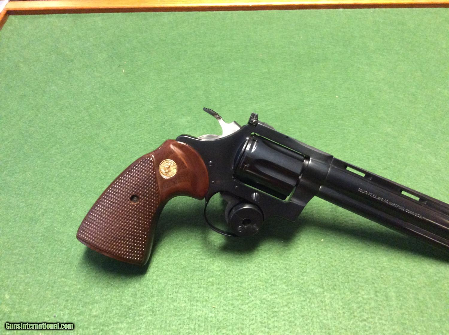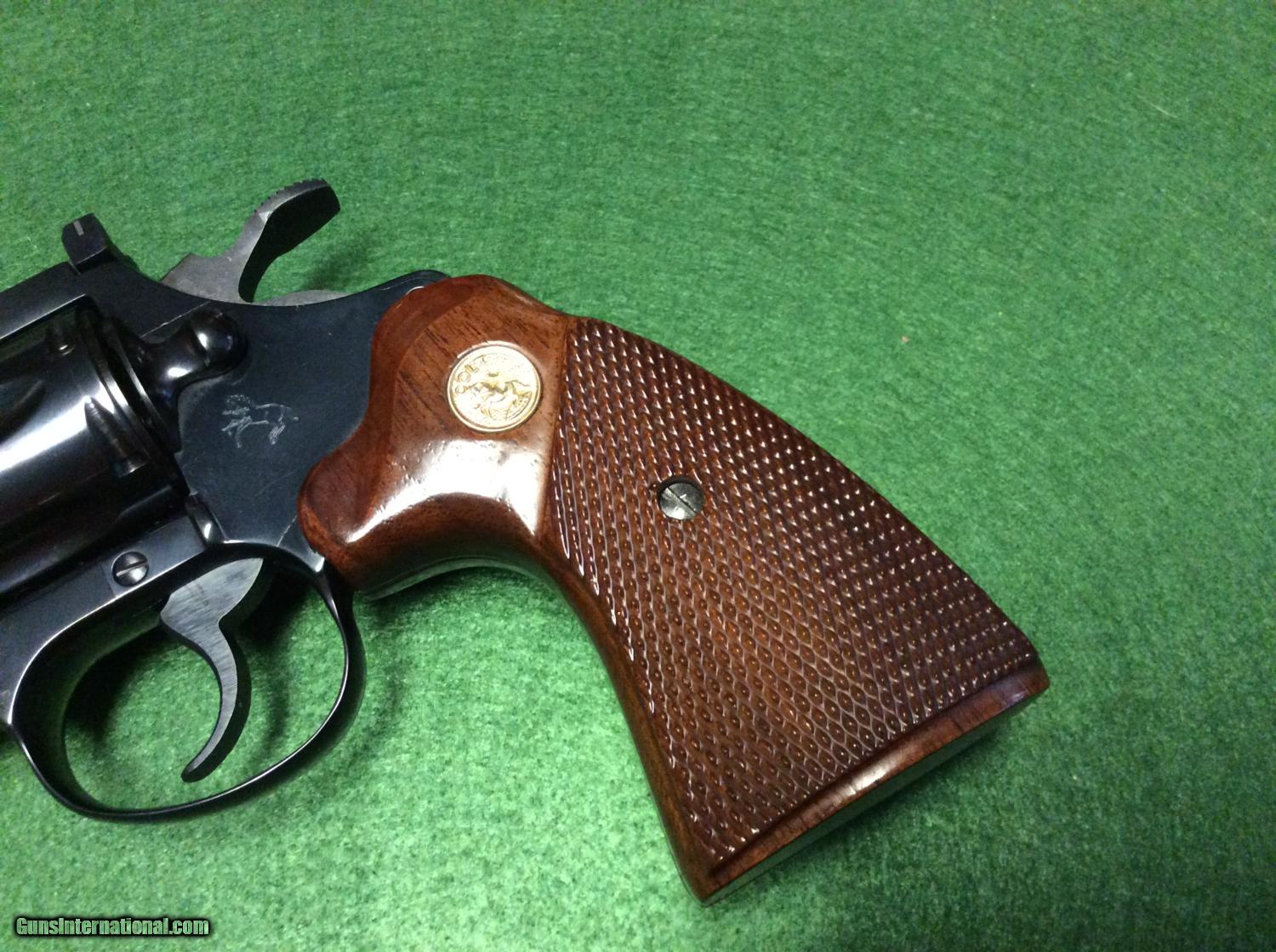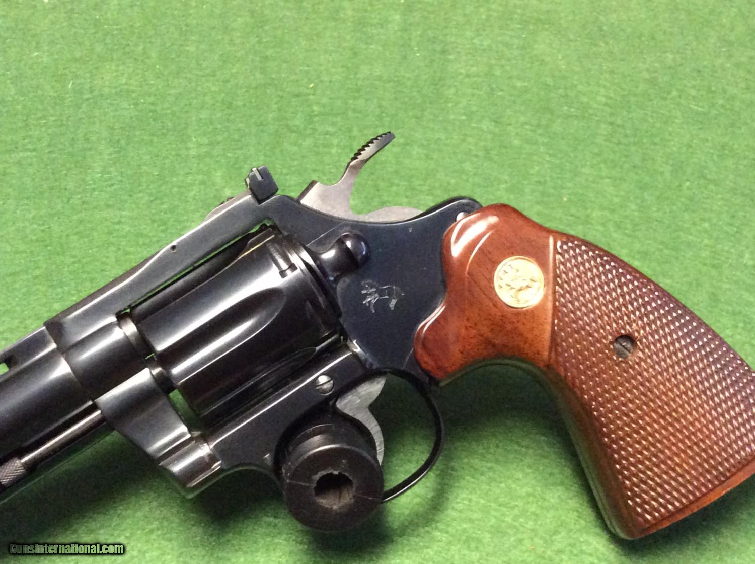 Description: Up for sale is this gorgeous Colt Diamondback chambered in .22 Long Rifle with blue finish. It comes with a 6” ventilated rib barrel, adjustable rear sight. This snake is 98+% overall condition and locks up tight with a very faint turn line and is extremely clean. The package is complete with some very nice factory grips original factory correct serialized box. The original Colt hand checkered walnut grips with gold Colt medallions set this this piece off nicely. This snake would nicely complement any serious Colt collection or take it out back and experience why Colt revolers are the best. I have several of these up to and including NIB available. Please know your state laws. This firearm will ship FFL to FFL only. Shipping is $40 insured. Payment is due within 5 business days. Money Orders, Postal preferred, certified bank checks or personal checks only. All payments will need to clear prior to shipping so allow ten business days once funds are received. SOLD Manufacturer: Colt Model: Diamondback Caliber Info: .22 LR Condition: VG-EX Metal Condition: VG Bore Condition: EX |