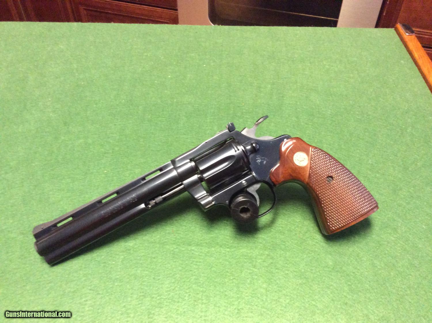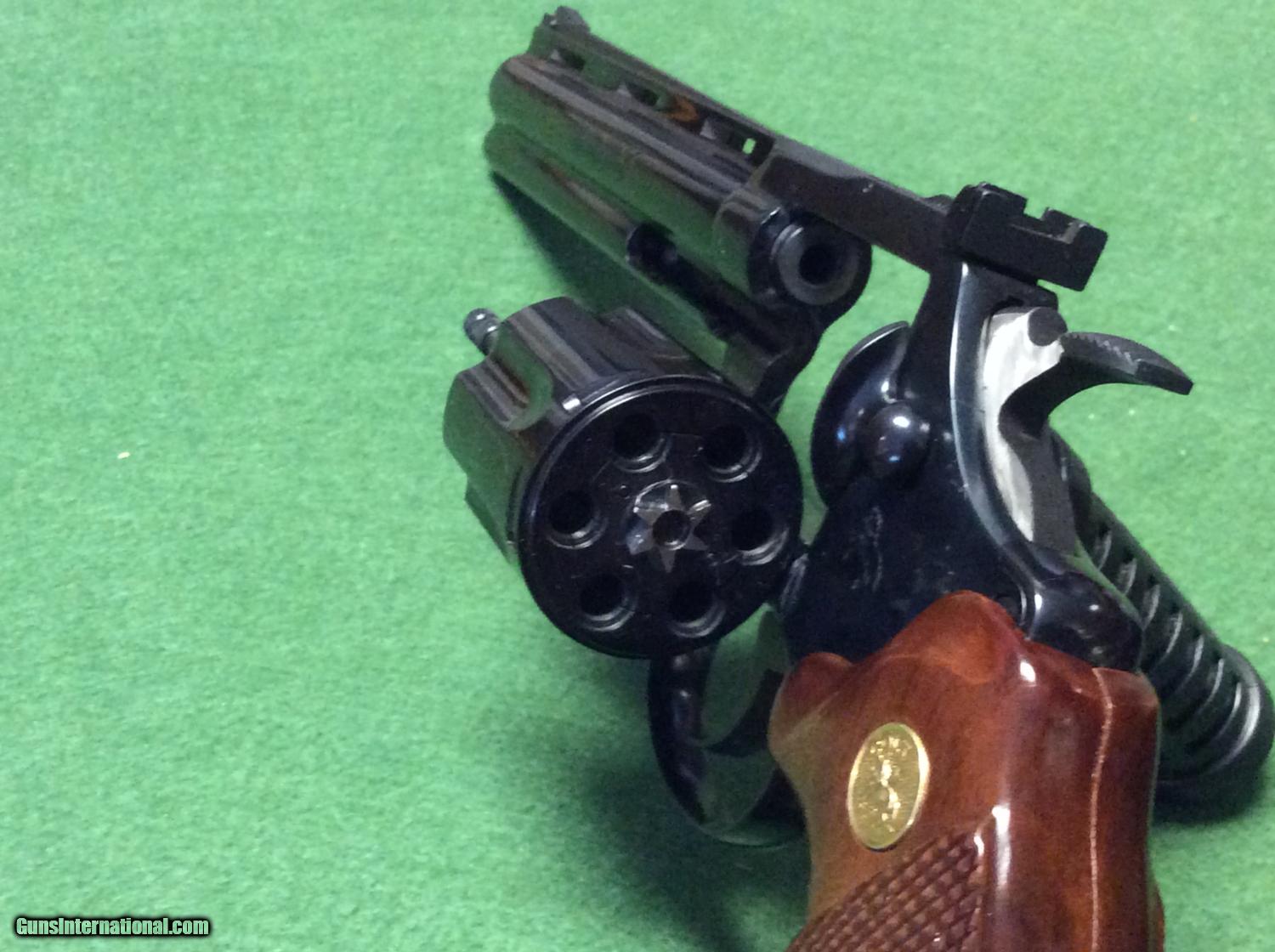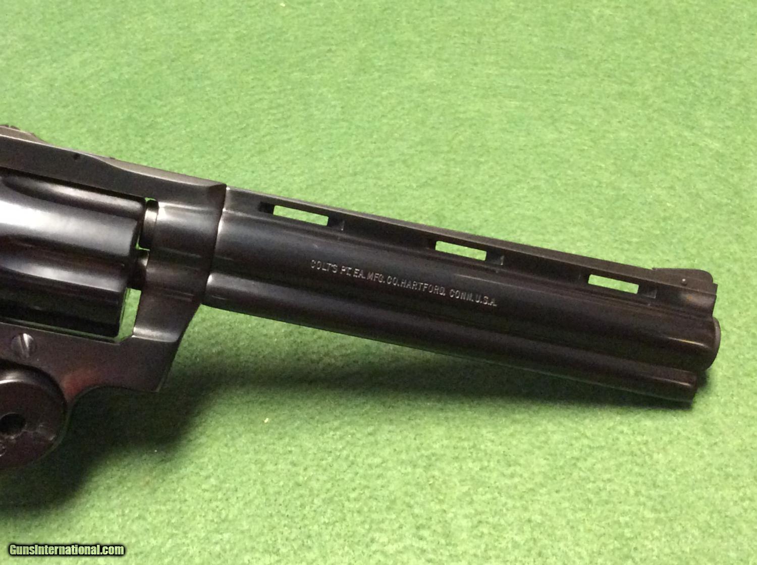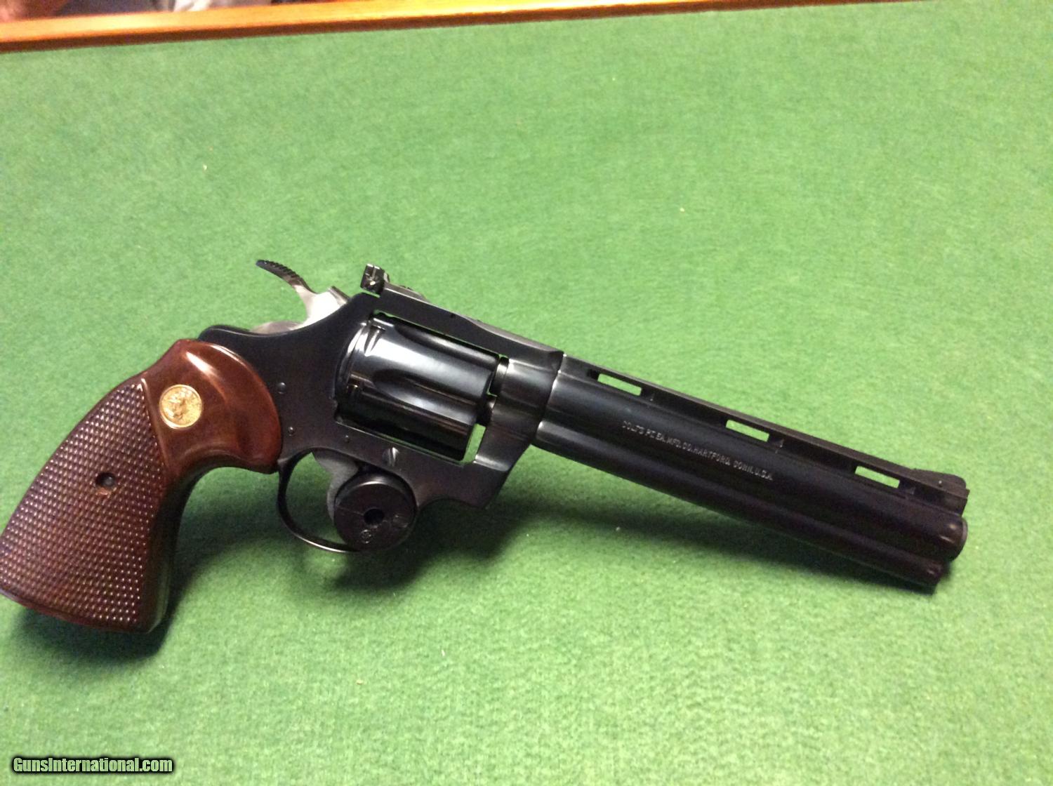 Description: Up for sale is this gorgeous Colt Diamondback chambered in .22 Long Rifle with blue finish. It comes with a 6” ventilated rib barrel, adjustable rear sight. This snake is 98+% overall condition and locks up tight with a very faint turn line and is extremely clean. The package is complete with some very nice factory grips original factory correct serialized box. The original Colt hand checkered walnut grips with gold Colt medallions set this this piece off nicely. This snake would nicely complement any serious Colt collection or take it out back and experience why Colt revolers are the best. I have several of these up to and including NIB available. Please know your state laws. This firearm will ship FFL to FFL only. Shipping is $40 insured. Payment is due within 5 business days. Money Orders, Postal preferred, certified bank checks or personal checks only. All payments will need to clear prior to shipping so allow ten business days once funds are received. SOLD Manufacturer: Colt Model: Diamondback Caliber Info: .22 LR Condition: VG-EX Metal Condition: VG Bore Condition: EX |