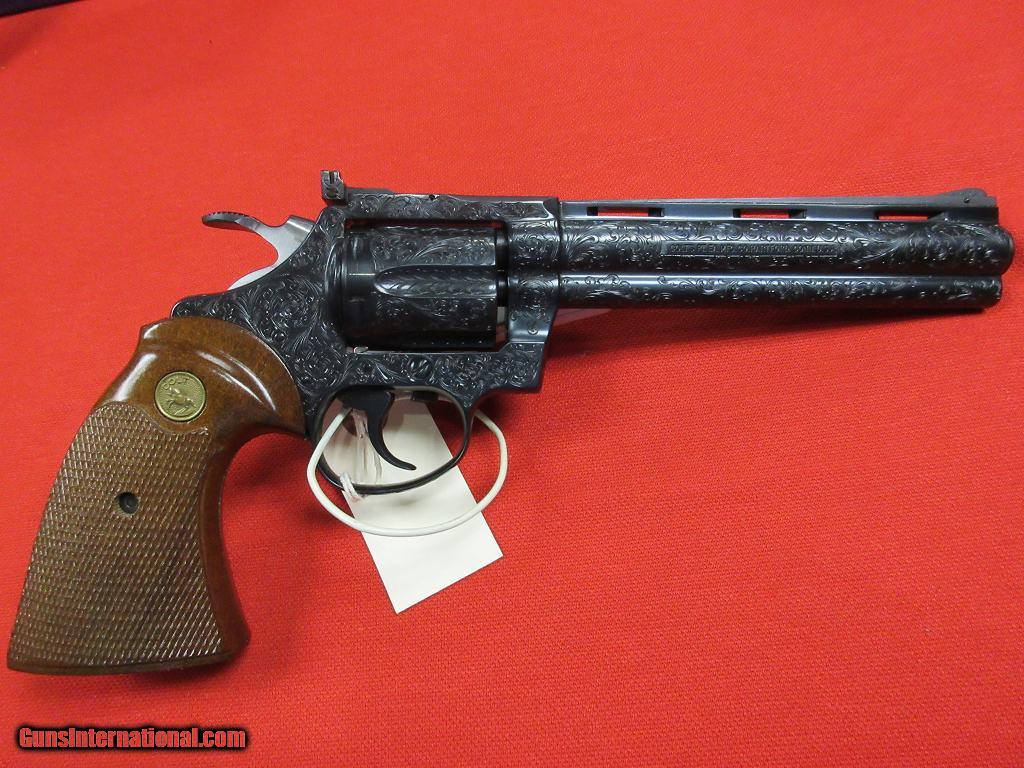 Description: Colt Diamondback 22LR Factory Engraved 6" Blued (LNIC)-- Factory original and in mint condition (appears unfired since leaving Colt). This gun includes the factory display case. The case shows some slight deterioration and light wear. The gun is mint. SOLD |