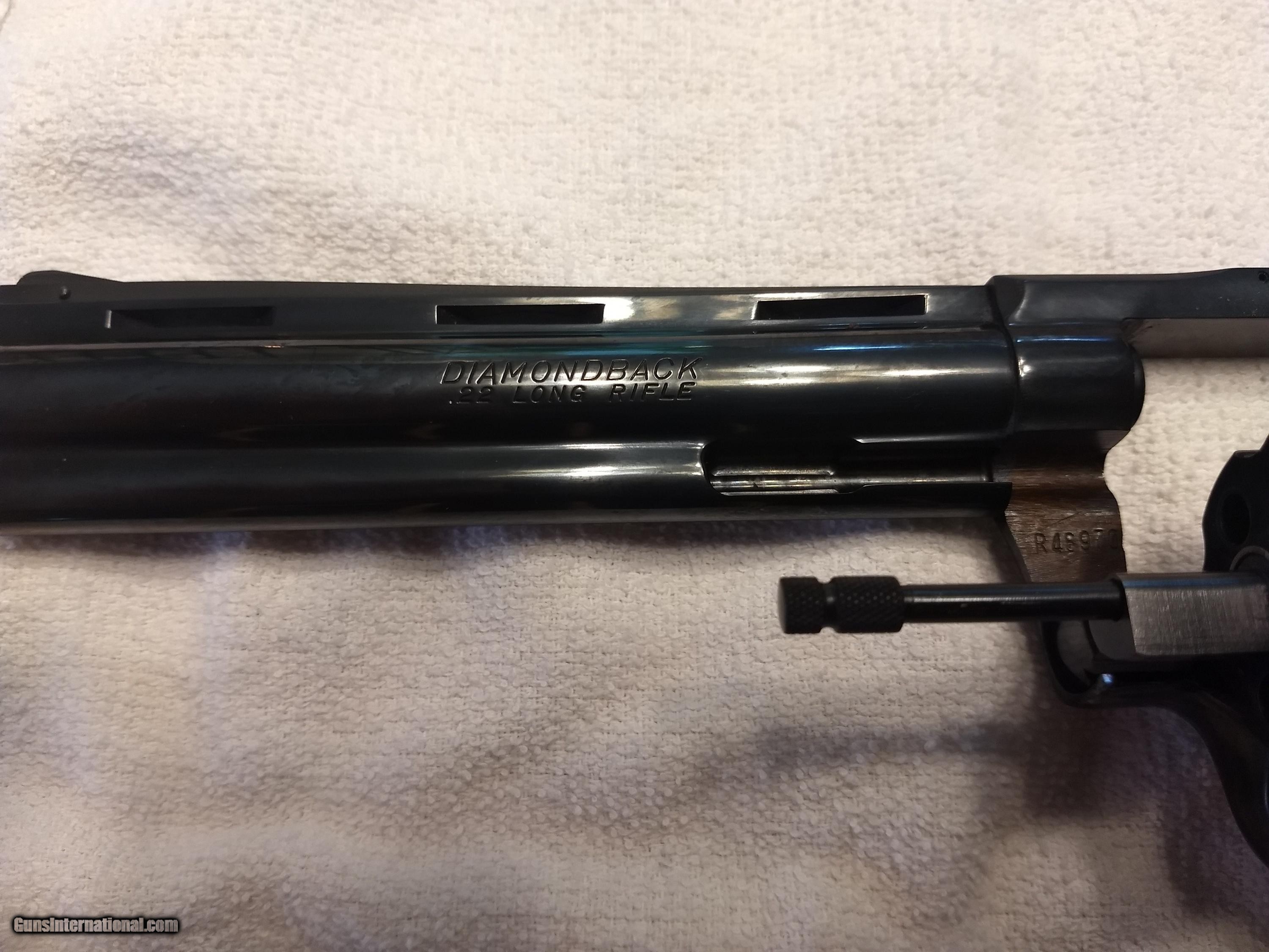 Description: Selling a Colt Diamondback .22LR with a 6" barrel. Gun is in excellent condition and includes box and paperwork although serial number on box does not match gun serial number. SOLD Manufacturer: Colt Model: Diamondback Serial Number: R48970 Barrel Length: 6 Caliber Info: 22LR Condition: Excellent Metal Condition: Excellent Wood Condition: Excellent Bore Condition: Excellent |