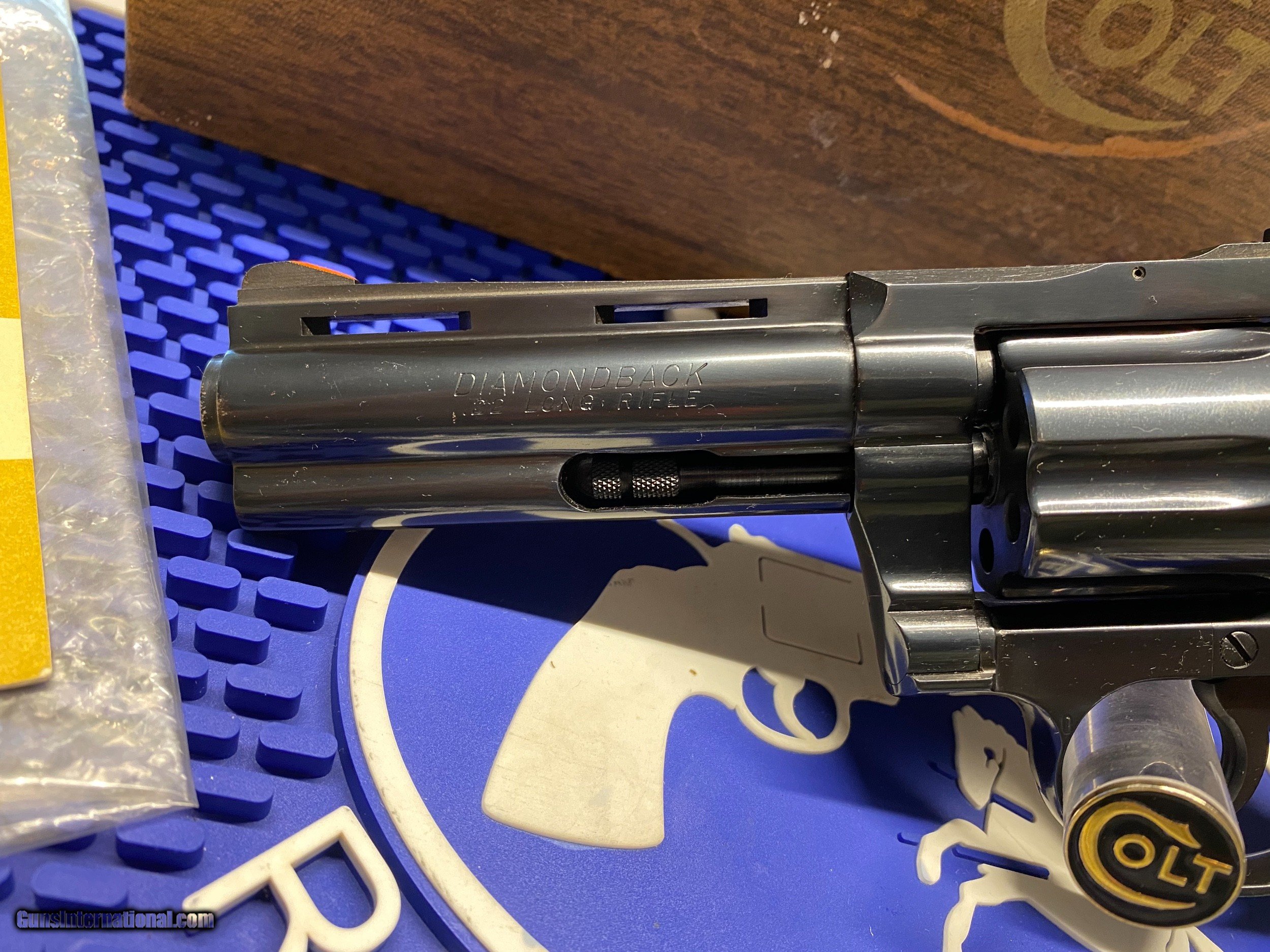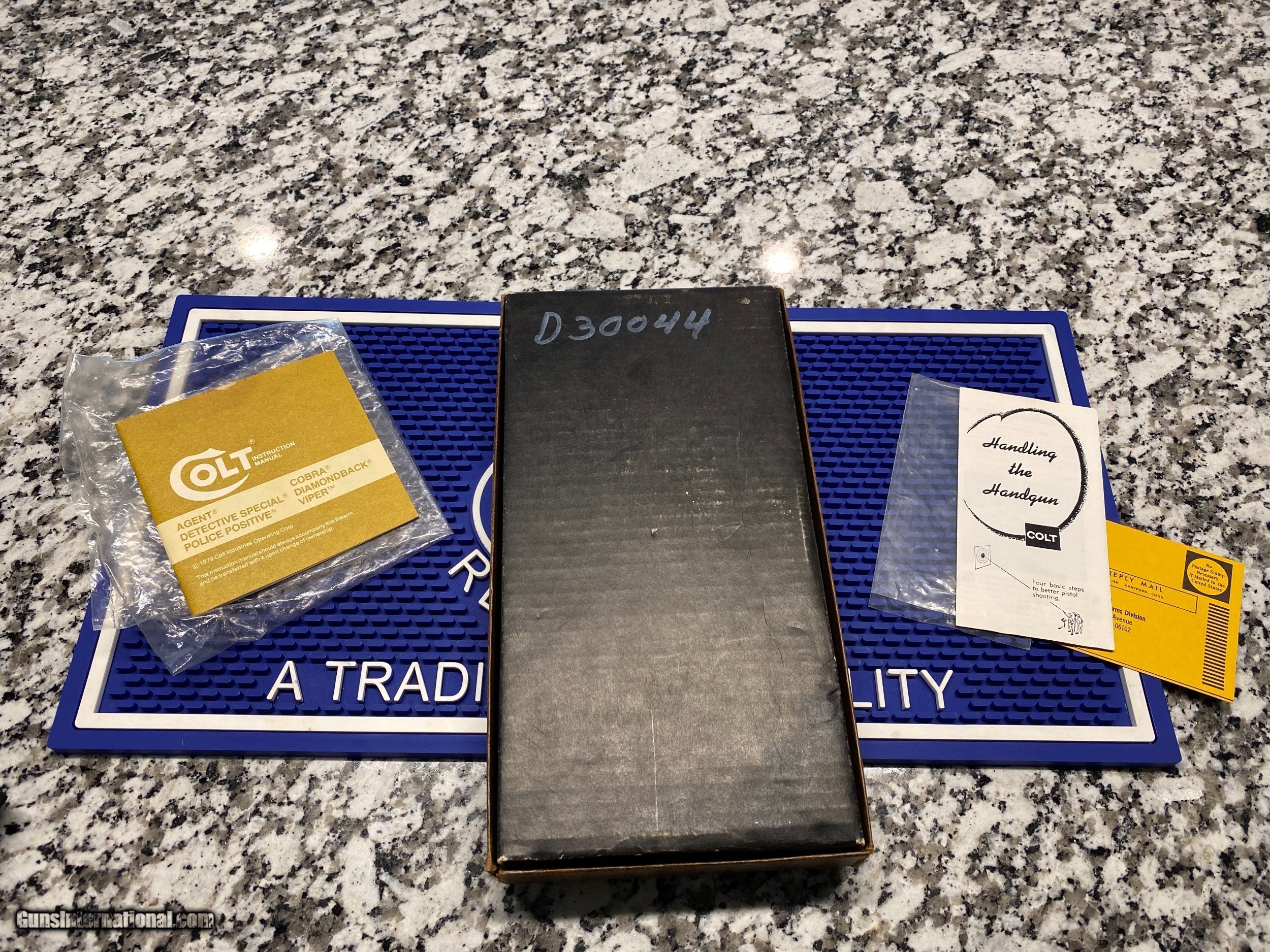 Description: EXCELLENT CONDITION COLT DIAMONDBACK, 4" BARREL IN 22LR. COMES WITH WHAT IS PICTURED. SHIPPING $40 SOLD |