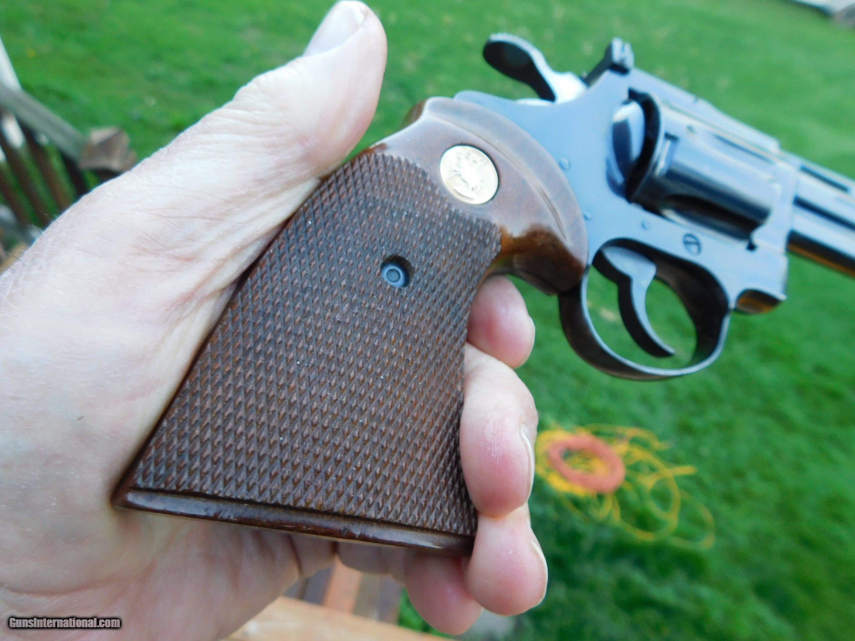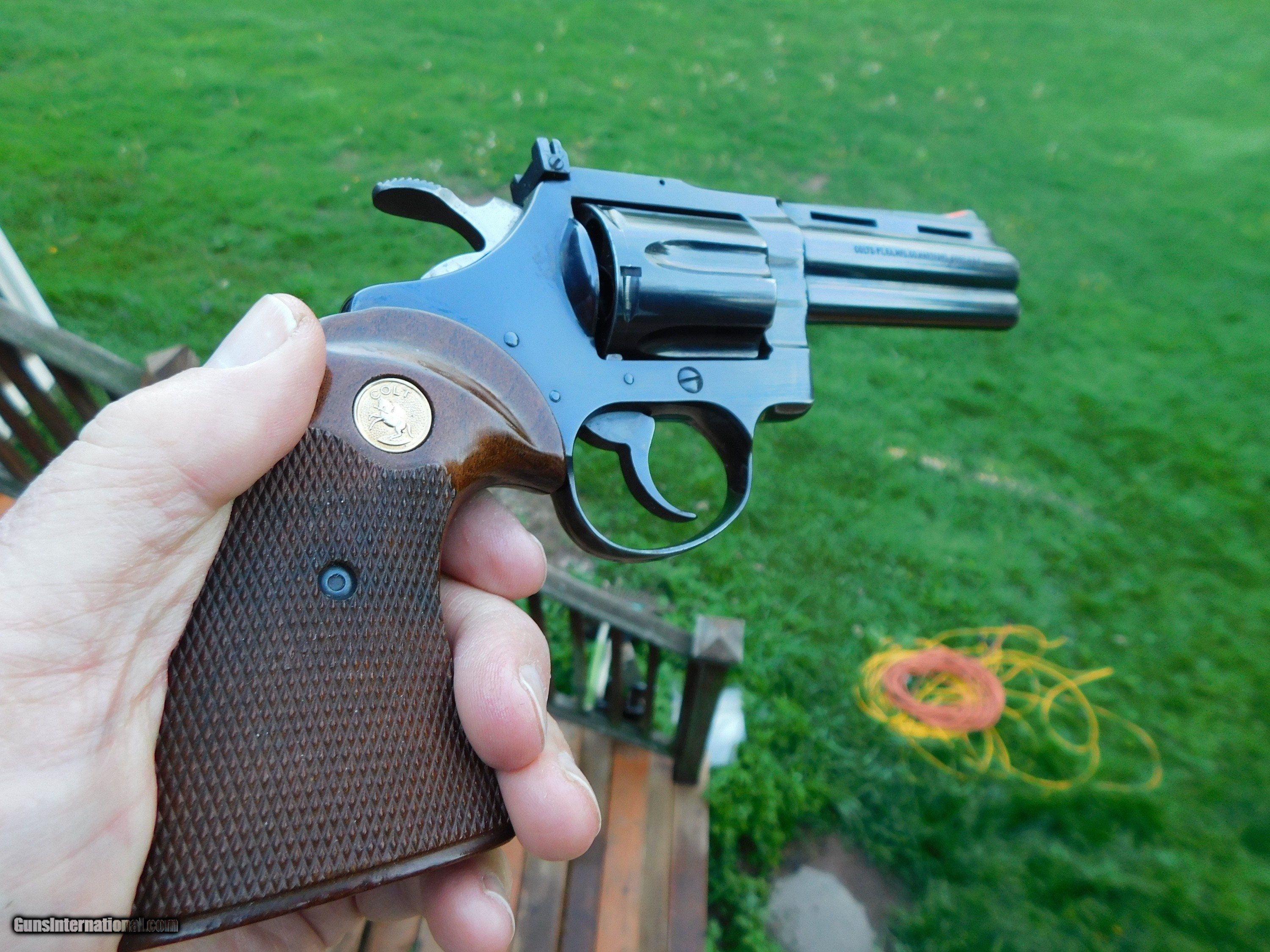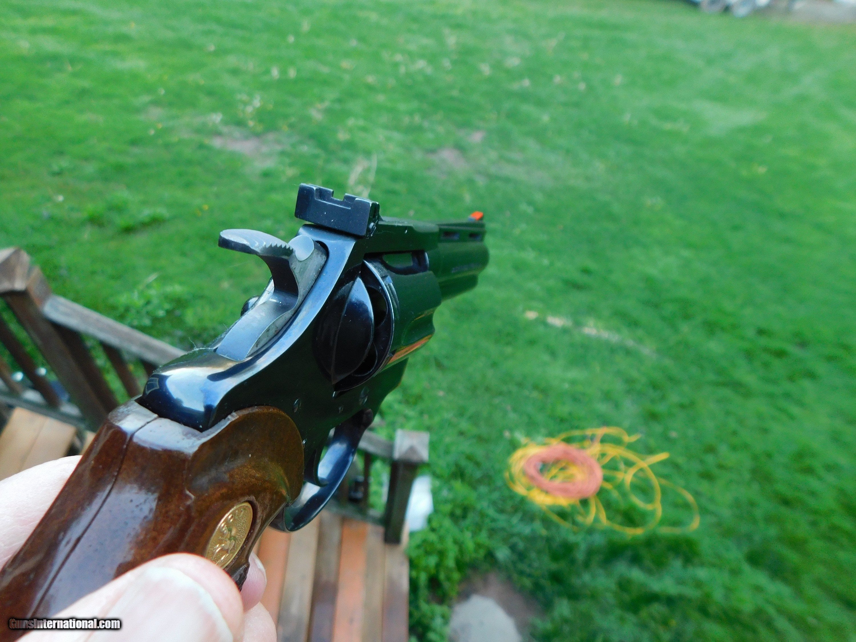 Description: SALE PENDING DAVE B 6/1/23 This little 4" gem has been used but well cared for . Nice original dark grips, exellent blue with signs of careful use and no abuse. These were made from the 1960 to the 1980's and are similar to the Pythons of the same period They are a joy to own and shoot. If shot with wadcutters not much more bark than shooting a 22 but can be loaded with Plus P's for hunting or defense. Little (possibly littel known facts): Diamondbacks while not the Hollywood Ican that Smith 29's were from the Dirty Harry movies but Diamondmacks were the gun Steve Mqueen used in Bullet and John Wayne carried one in the 1975 Movie Brannigan.....Laslty Sadam Hussain collected Diamondbacks in additon to other nice guns and some pretty crazy ones. Shipping is $ 45.00 with insurance IF IT DOES NOT SAY ."SALE PENDING, UNDER DEPOSIT or ON HOLD"...IT IS AVAILABLE. WE DO NOT REPLY TO INQUIRIES THAT SAY "INTERESTED IN THIS GUN" OR "IS IT AVAILABLE" IF YOU WOULD LIKE TO BUY THIS OR ANY OF OUR GUNS WE SUGGEST YOU PHONE US; WE ARE OFTEN AVAIALABLE LONG HOURS. IF YOU ARE INTERSTED IN A GUN THAT IS UNDER DEPOSIT AND WOULD LIKE TO BE NOTIFIED IF A SIMILAR GUN COMES IN DROP US A LINE AND WE WILL MAKE EFFORTS TO CONTACT YOU WHEN ONE DOES COME IN. WE HAVE OVER 2000 SALES ON ALL SITES WITH AN A+ RATING ON ALL WE ALSO KEEP AN INVENTORY OF OLDER PERIOD CORRECT SCOPES; CALL WITH NEEDS WE MOSTLY PICK VERY CLEAN AND LIGHLTY USED GUNS. WE ARE HAPPY TO TAKE CONSIGNMENT GUNS AND COLLECTIONS OR WILL BUY YOURS OUTRIGHT. WE SOMETIMES ARE EMPLOYED FOR ESTATE PURPOSES AND VALUATIONS. AT THIS TIME WE ARE ONLY ACCEPTING US POSTAL MONEY ORDERS OR BANK CHECKS FOR PAYMENT IT IS THE BUYERS RESPONSIBILITY TO GET US A COPY OF YOUR RECEIVING FFL'S LIC AND A COPY OF YOUR PHOTO ID BEFORE THE GUN SHIPS YOU MUST CALL OR CONTACT YOUR FFL.WE DO NOT CALL FOR YOU UNLESS THEY RQUIRE IT. LAYAWAY PURCHASES NOT COMPLETED ON ANY RETURNED ITEM UNLESS NOT AS DESCRIBED OR DAMAGED ARE SUBJECT TO A 10% RELISTING/RESTOCKING FEE AND MUST BE RETURNED WITH NO NEW MARKS OR SCRATCHES, SENT BACK INSURED, PRIORITY SIGNATURE REQUIRED. ALL INFORMATION CONTAINED HEREIN IS BELIEVED TO BE ACCURATE BUT IS NOT GUARANTEED. WITH ANY OLDER OR USED GUN IT SHOULD BE INSPECTED BY A GUNSMITH PRIOR TO SHOOTING. SOLD |