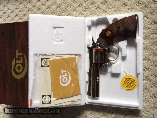 Description: Colt Diamondback in Factory Nickel, serial number has it as a 1976 manufacture, 4" barrel, model D5541. Overall excellent condition, box and papers. Shipping $35 which includes insurance. 3% additional Charge for Credit Cards and Paypal. Both Shipping and Credit Card/Paypal charges are not in negotiated prices. Patak-Phillips Fine Arms SOLD Manufacturer: Colt Model: Diamondback Serial Number: D8155 Caliber Info: .38 Finish: Nickel |