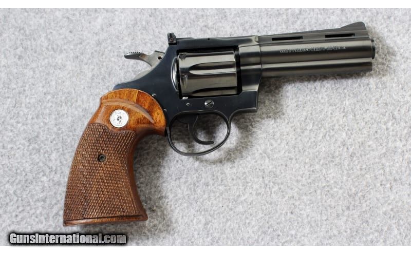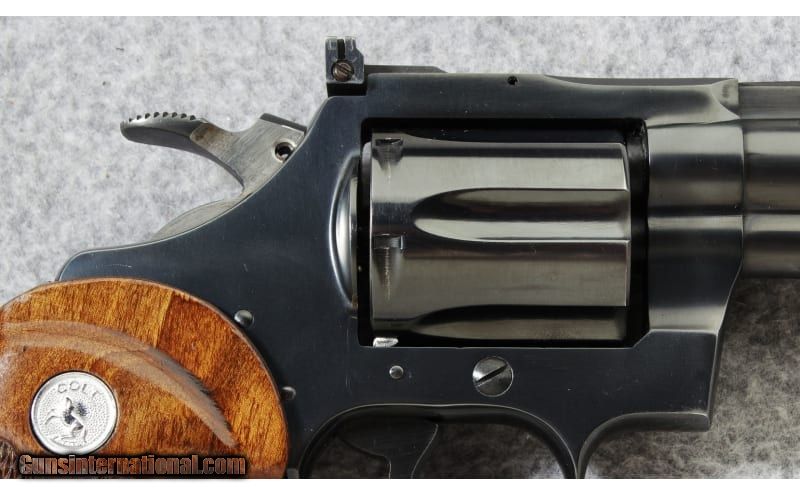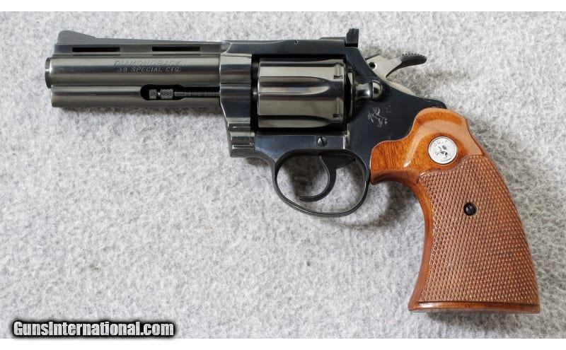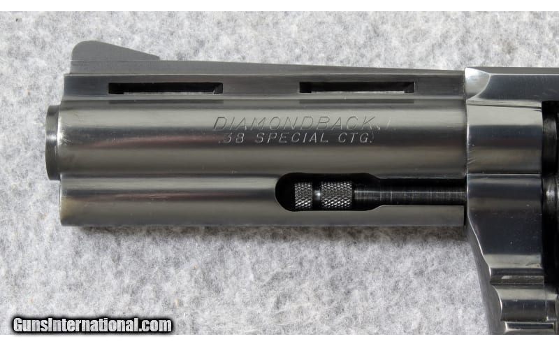 Description: The Colt Diamondback .38 S&W Special introduced in 1966 as smaller deluxe model to go along with the Python line. This Diamondback's action is well timed and there is no cylinder end shake on lockup. This revolver was manufactured in 1968. .38 S&W Special SOLD Metal Condition: Very good with wear on the sharp edges Wood Condition: Very good with some scratches Barrels: 4 inch full lug barrel Triggers: Adjustable rear sight with blade front Weight: 30 Oz. Sights: Adjustable rear sight with blade front Item Location: Lehi, UT |
