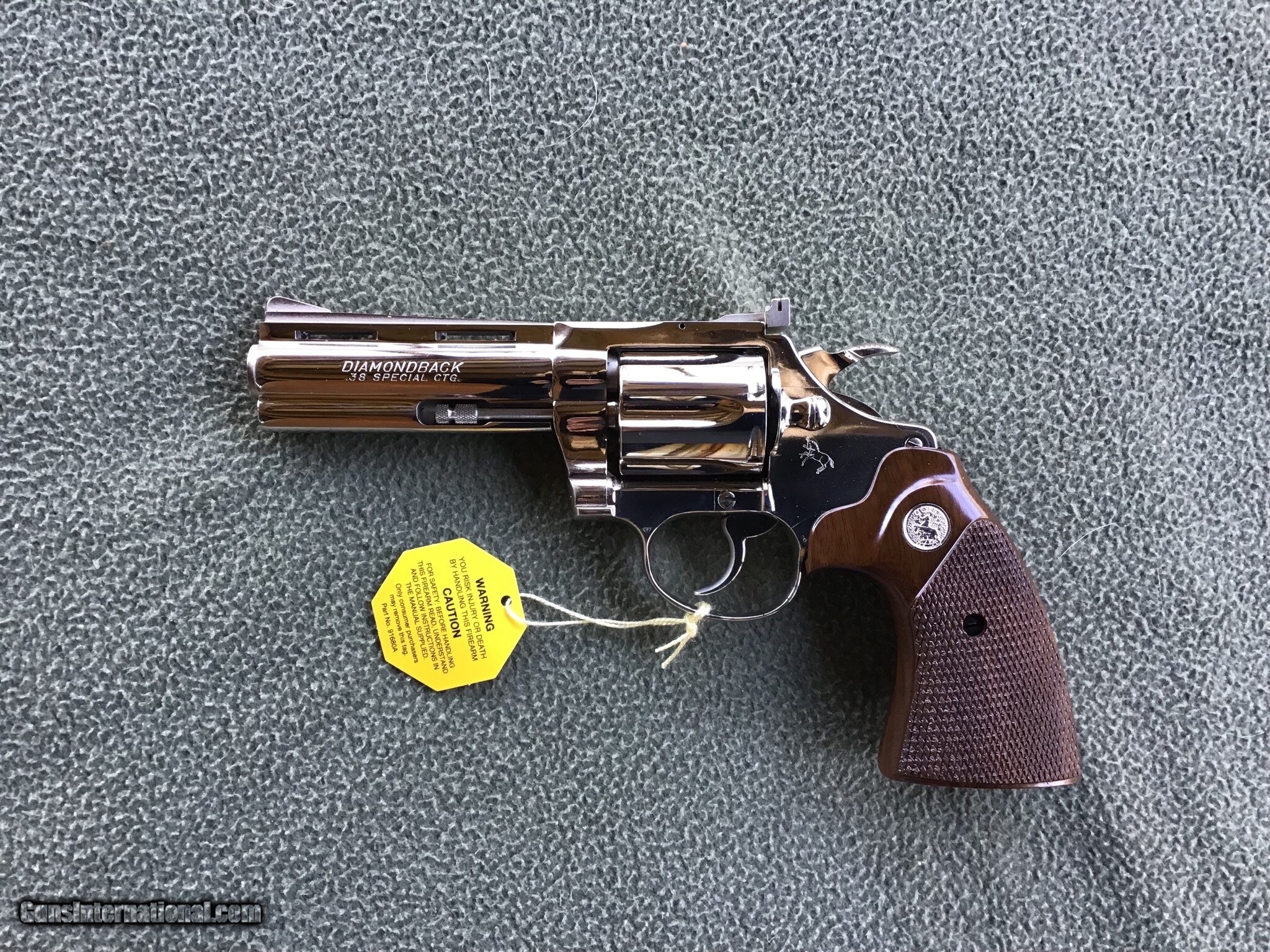 COLT DIAMONDBACK 38 SPC., 4” BRIGHT NICKEL, LIKE NEW IN THE BOX