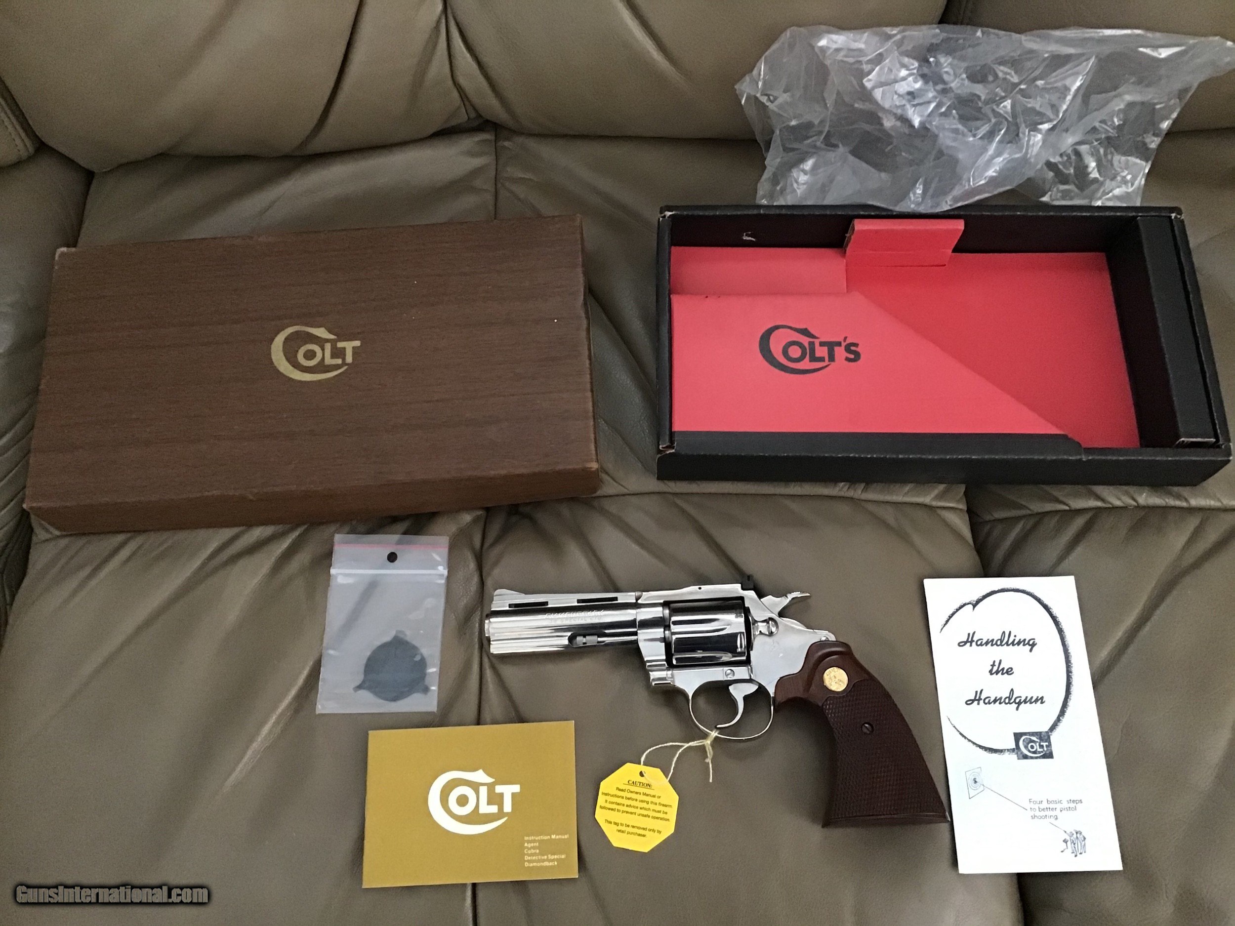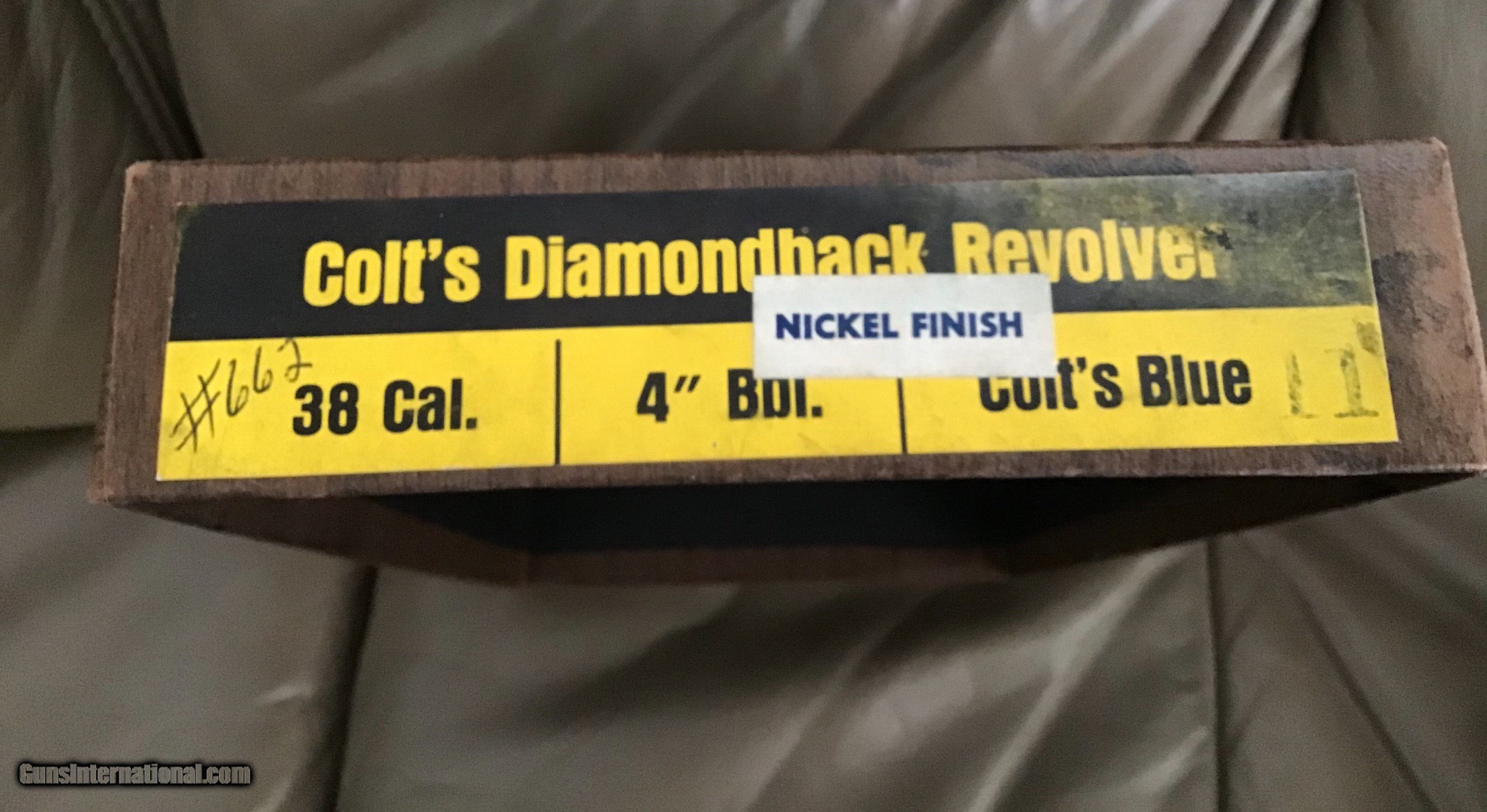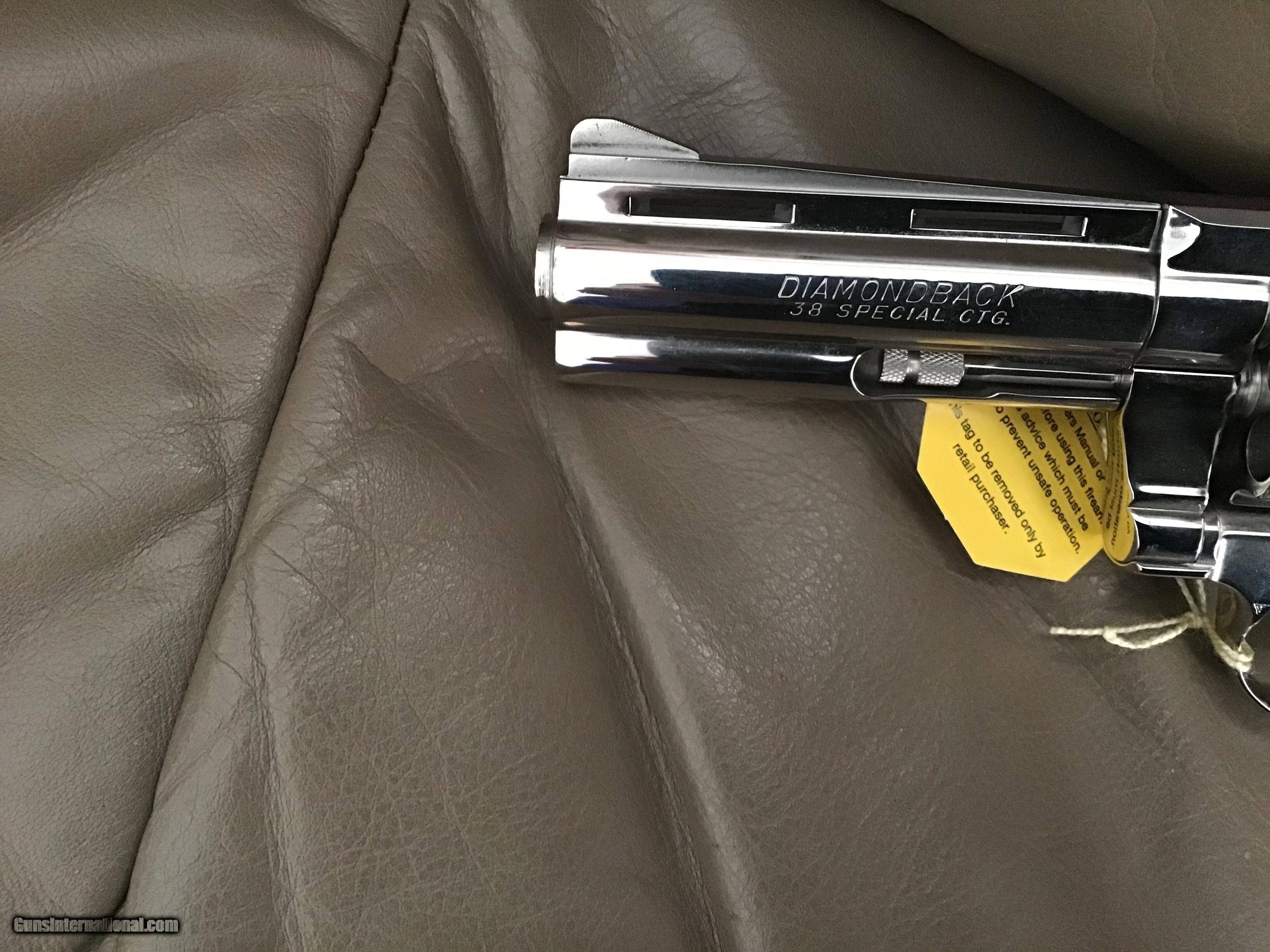 COLT DIAMONDBACK 38 SPC., 4” BRIGHT NICKEL, MFG. 1970, NEW 100% COND., NO TURN LINE, UNFIRED, IN THE BOX