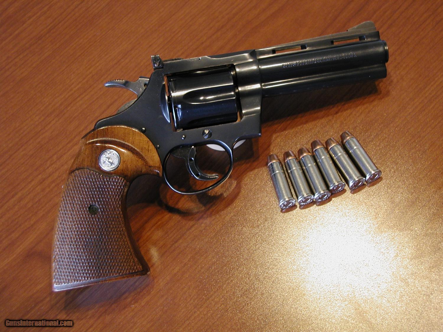 - The ammo reflects light to show the only flaw in the bluing (below the Colt logo).