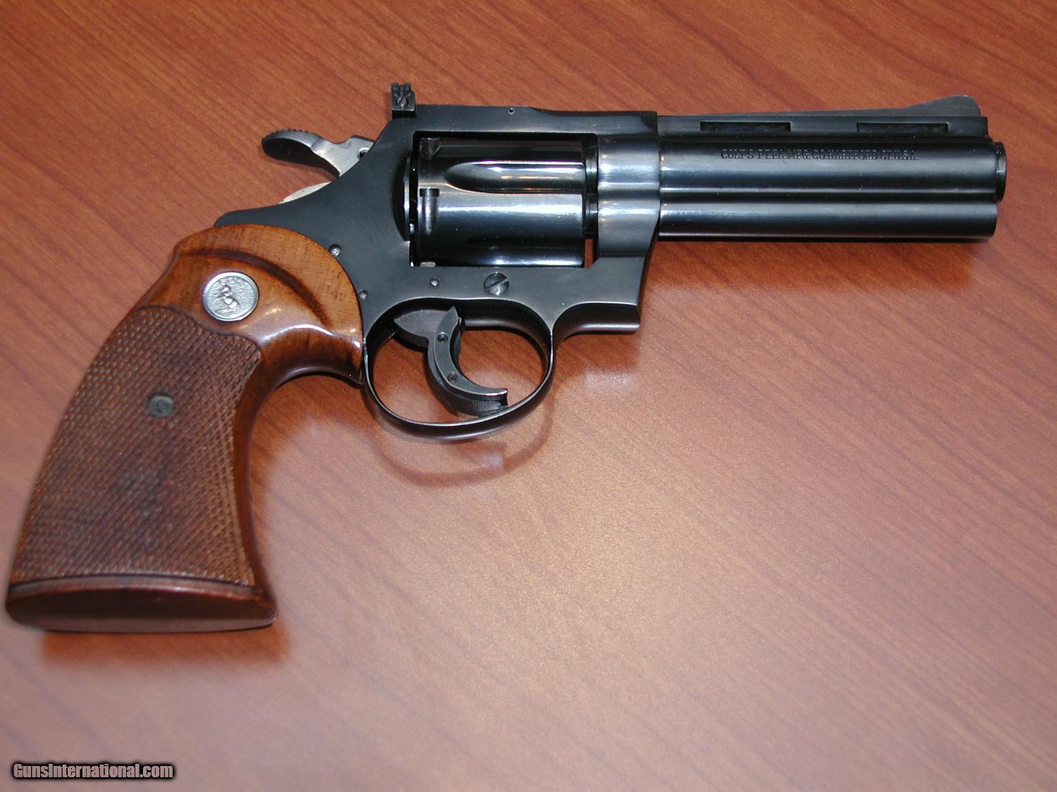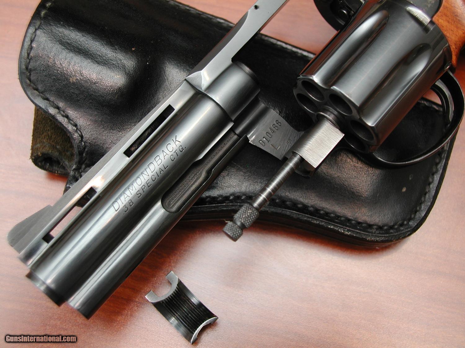 1967 Colt Diamondback .38 Special, blue, 4-inch ventilated rib, adjustable rear site, fixed front site, walnut grips. NO MODIFICATIONS.