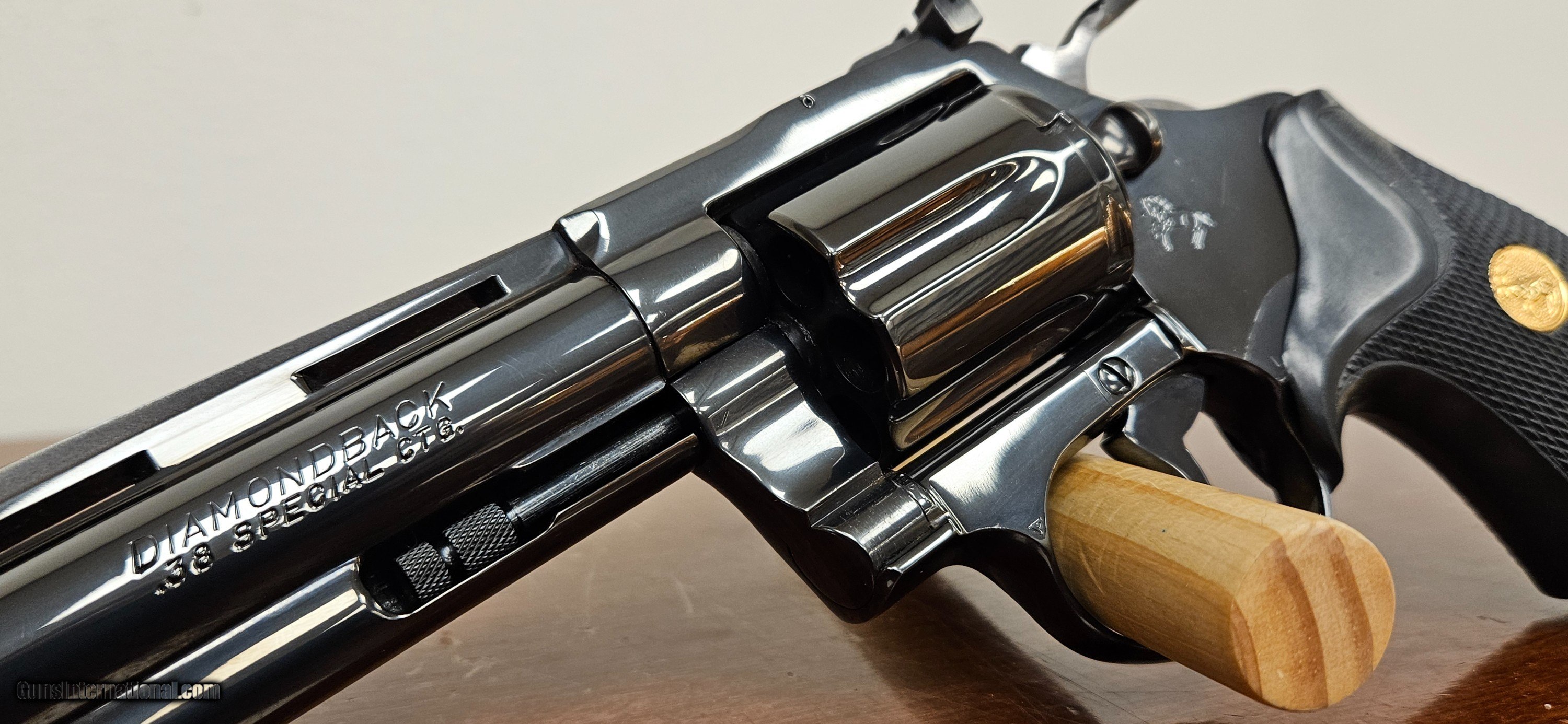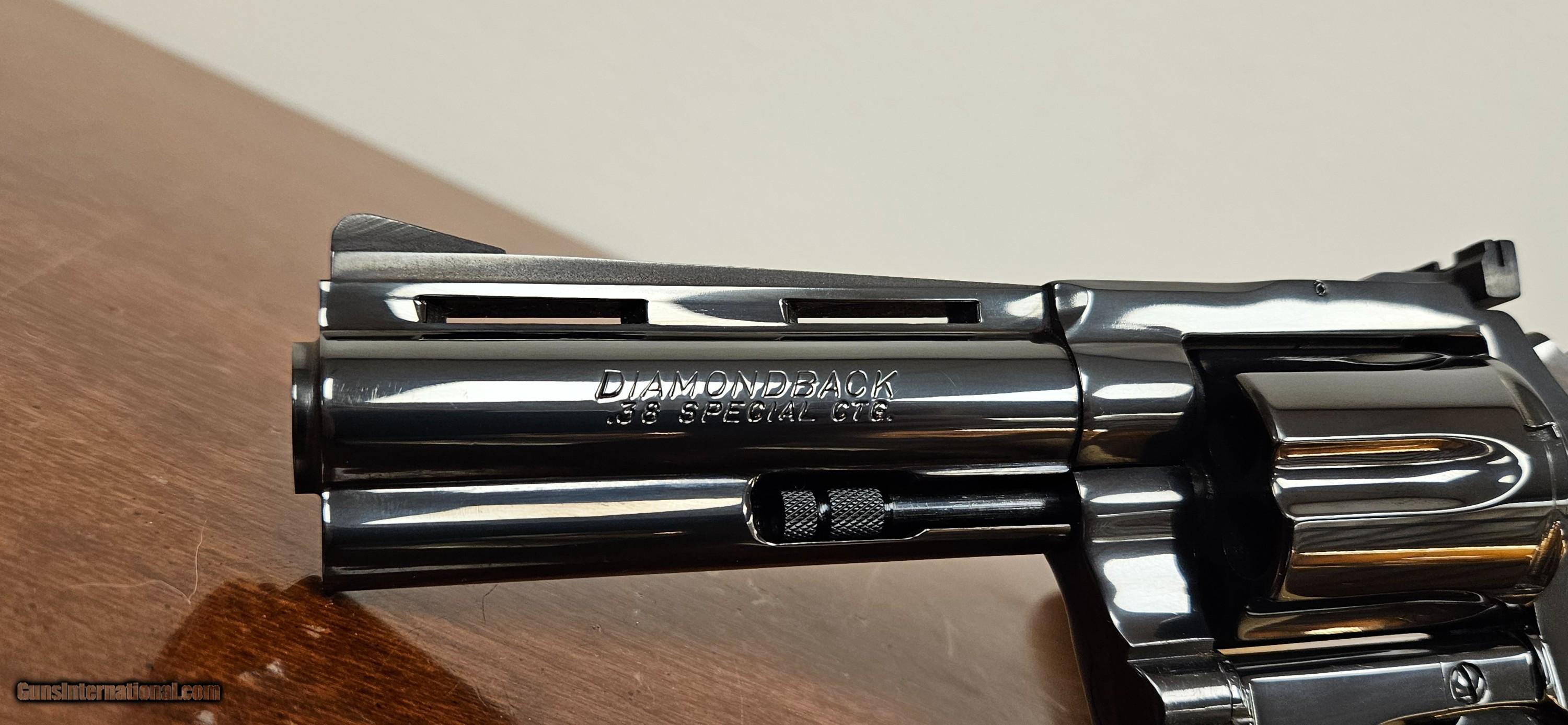 Description: Up for sale is a Colt Diamondback chambered for .38 Special. This revolver sports a blued finish and a 4" barrel. This revolver has a very good bore. No acessories are included with this revolver. SOLD Handgun Caliber: .38 Special Manufacturer: Colt Model: Diamondback Barrel Length: 4 Bore Condition: Very Good Item Location: Lakewood, CO |