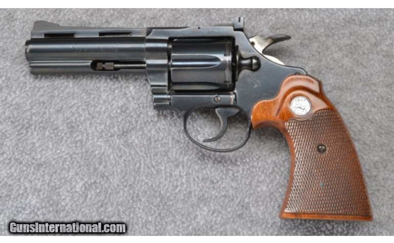 Description: Grips show a few light scuffs. Blue has a couple areas of faint edgewear. Bore and chambers are excellent. No box. SOLD Manufacturer: S/N D26XXX Caliber Info: .38 Special Metal Condition: Excellent Wood Condition: Very Good Bore Condition: Excellent Barrels: 4 Triggers: Original Stock: Checkered Walnut Grips with Colt Logo Weight: 32 OZ Sights: Ramp Front - Adjustable Notch Rear Item Location: Glendale, AZ |