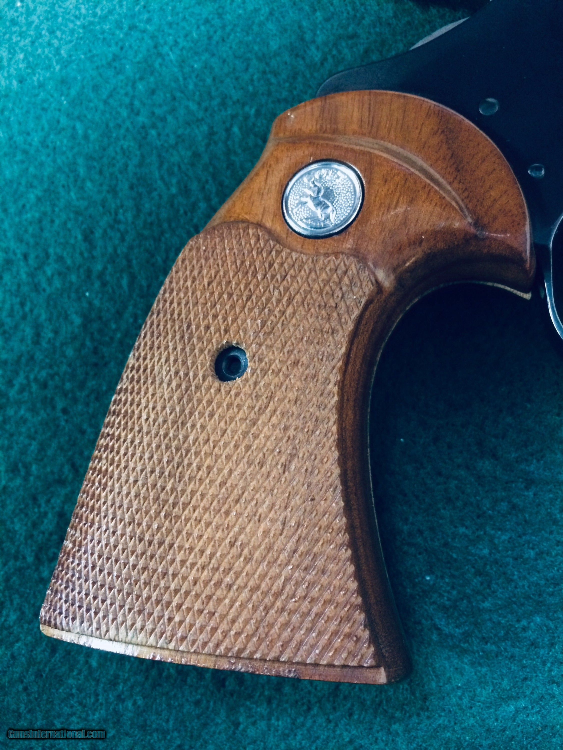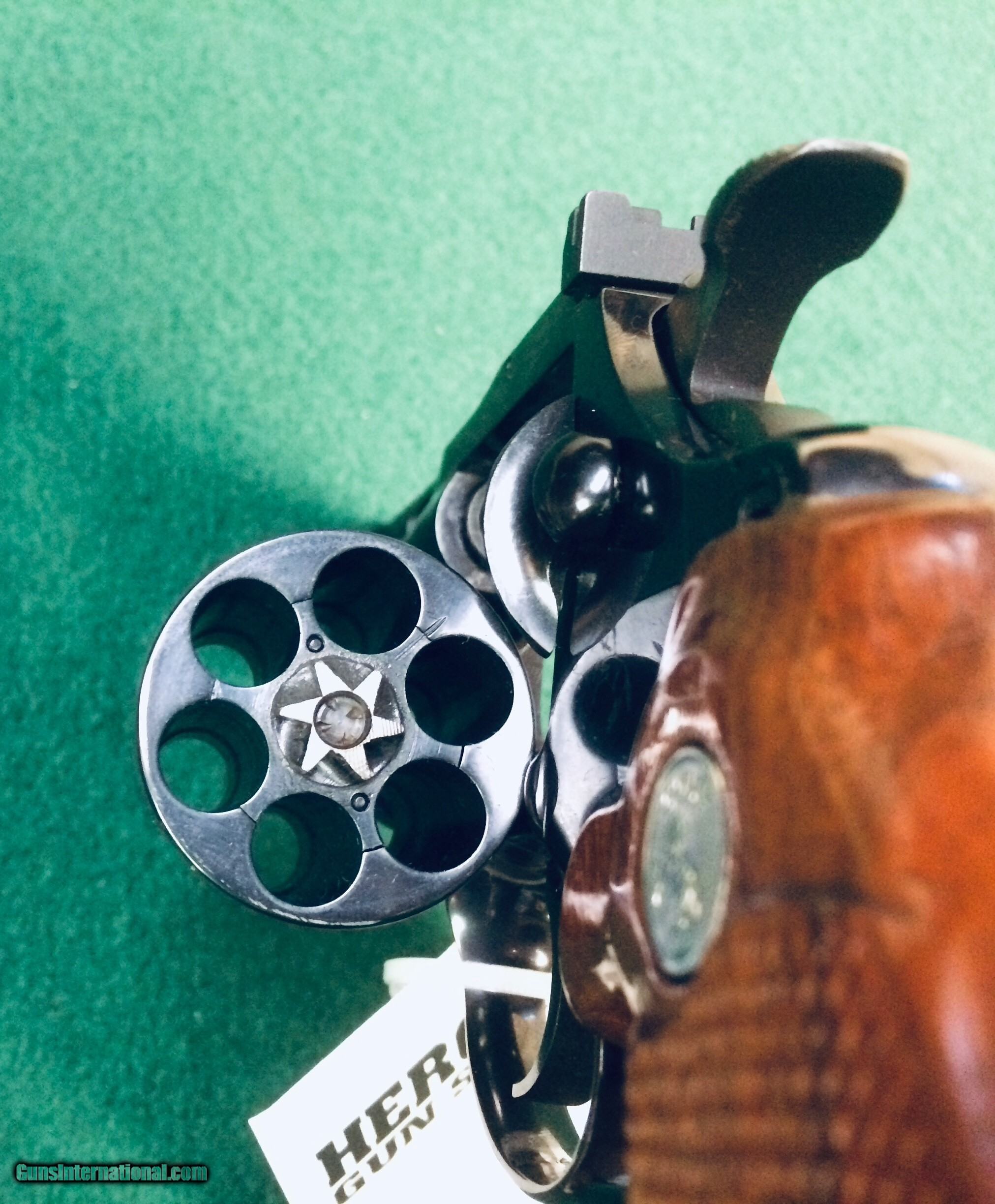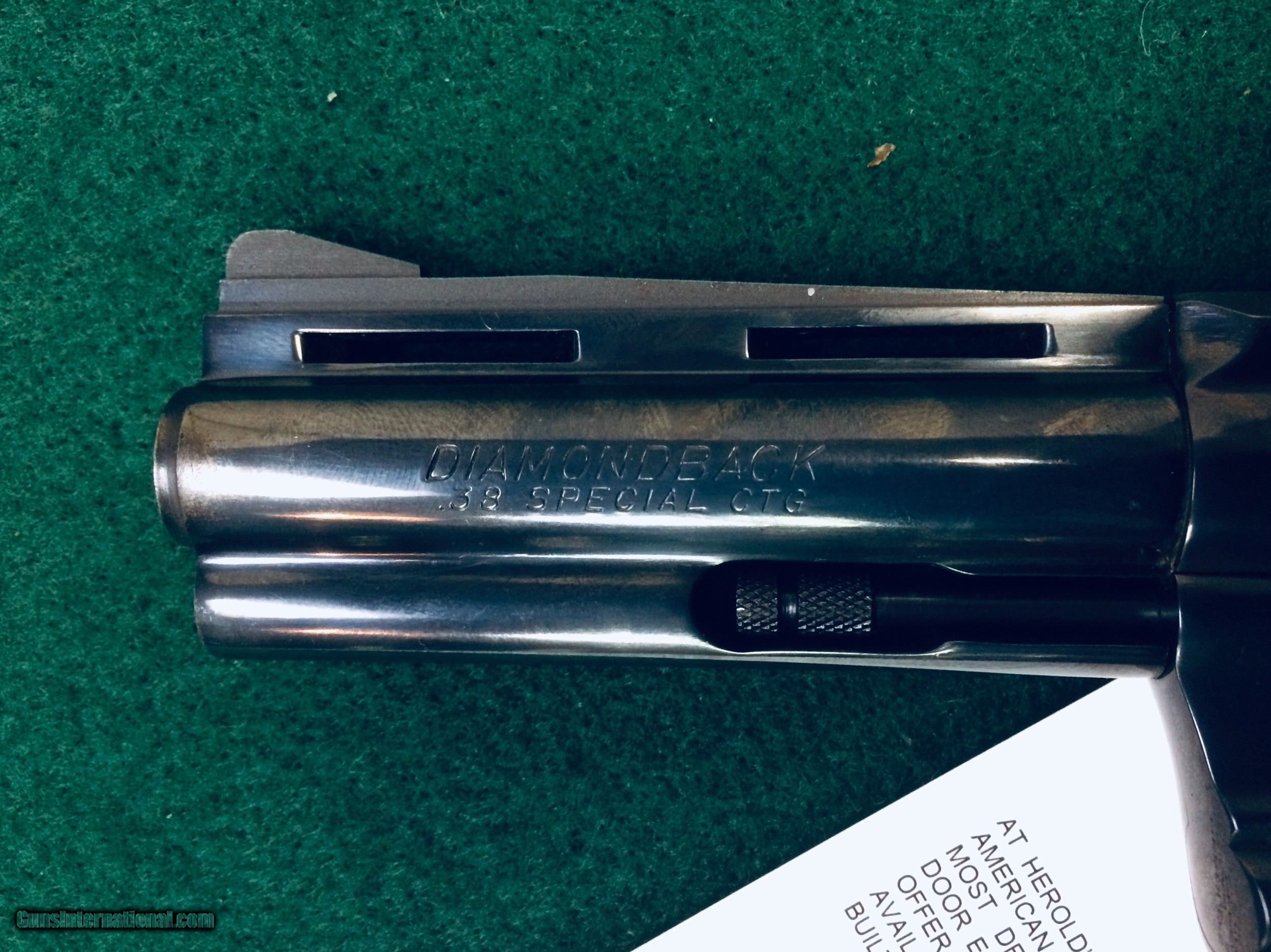 Description: We have some nice Colt revolvers in stock. Here is an example of one of them: a beautiful Colt Diamondback with a 4” barrel. I would rate this one as excellent with the only cosmetic flaw being a tiny bit of bluing gone on the left side of the muzzle. Does not appear to have been fired much. Please see pictures for more details. We reserve the right to sell this item at our retail location until an offer is placed on Guns International. We accept major credit cards, with a 4% surcharge. Please allow us up to three business days to respond to emails and phone messages. Occasionally we get quite busy with walk in traffic and/or paperwork. We appreciate your understanding and patience in this matter. We are open Tuesday through Saturday, 9 AM to 5 PM. Closed on Sundays and Mondays. Come visit us at Herold’s Gun Shoppe in Waynesboro, Pa. to see this item in person. We look forward to meeting you! SOLD Manufacturer: Colt Model: Diamondback Serial Number: D590xx Caliber Info: .38 spl Condition: Excellent |