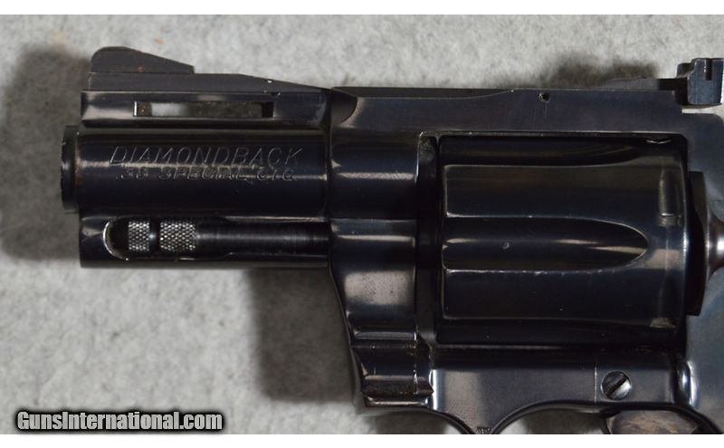 Description: Colt Diamondback revolver chambered in .38 special. Inspired by the Python, the Diamondback was introduced in 1966 as a scaled down version of Colt's Python model. The serial number (U36699) dates this firearm to approximately 1981. .38 Special SOLD Metal Condition: Good with Minor Handling Marks Wood Condition: Good with Minor Wear Bore Condition: Clear with Good Rifling Barrels: 2.5 inch Triggers: Single action/double action Butt Pad: Checkered wooden grip Weight: 1 LB 9 OZ Sights: Standard adjustable rear notch and ramp blade front Item Location: Fort Worth, TX |