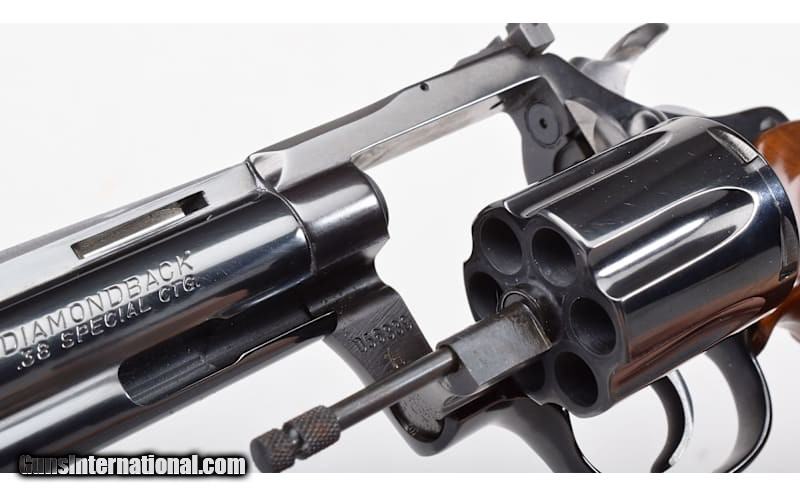 Description: Exceptional pre-owned Colt Diamondback chambered in .38 Special. Mechanism is crisp with good timing. Bore presents excellent; bright with sharp rifling. Finish is well-preserved with a few scattered marks and abrasions from honest use; commensurate with age and handling. No accessories. .38 Special SOLD Metal Condition: High Polish Blue Wood Condition: Checkered Walnut Medallion Bore Condition: Bright and Sharp Barrels: 4.0 Triggers: DA / SA Weight: 28 oz Sights: Front Ramp / Rear Adjustable Square Notch Item Location: Buda, TX |