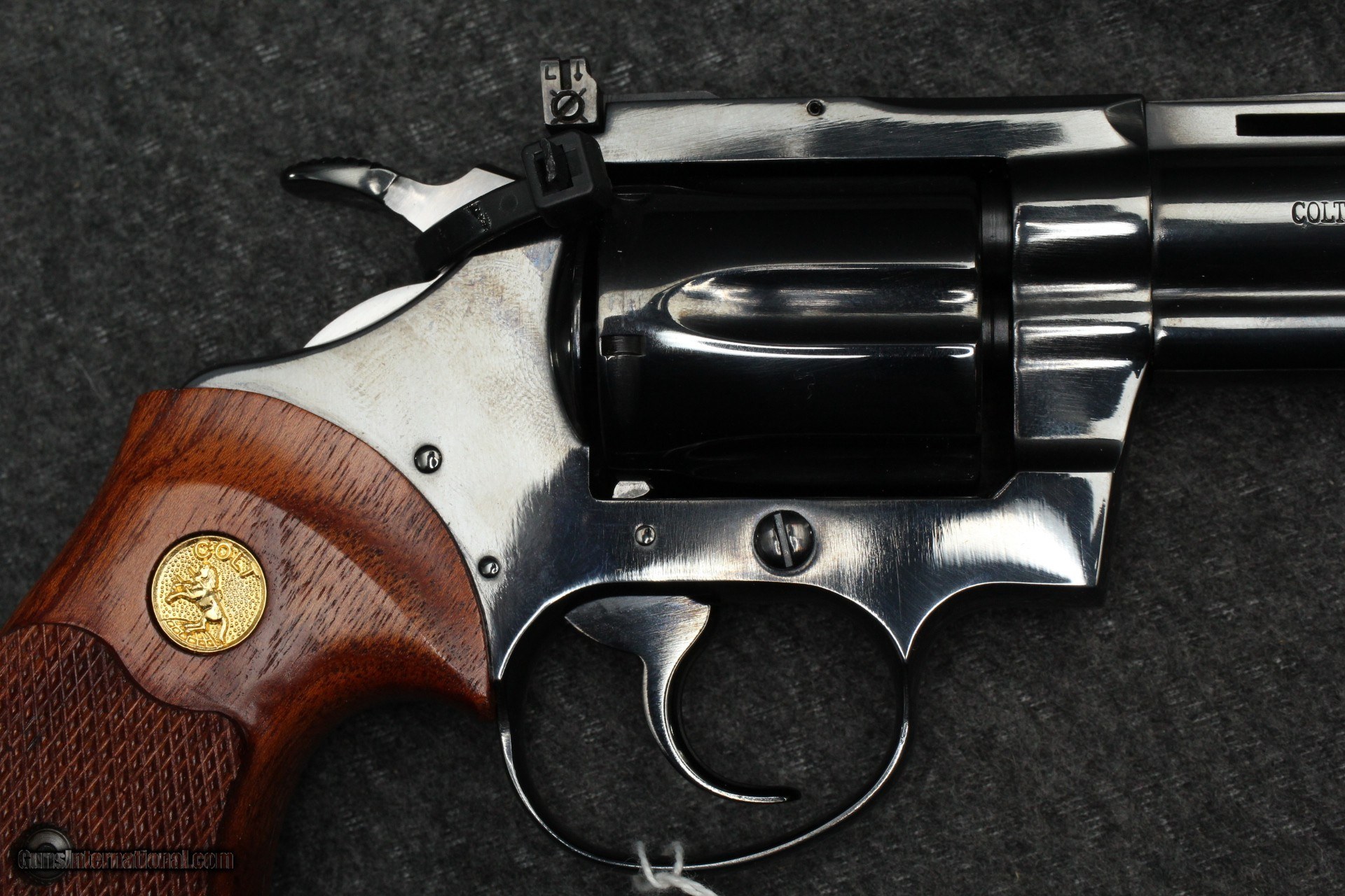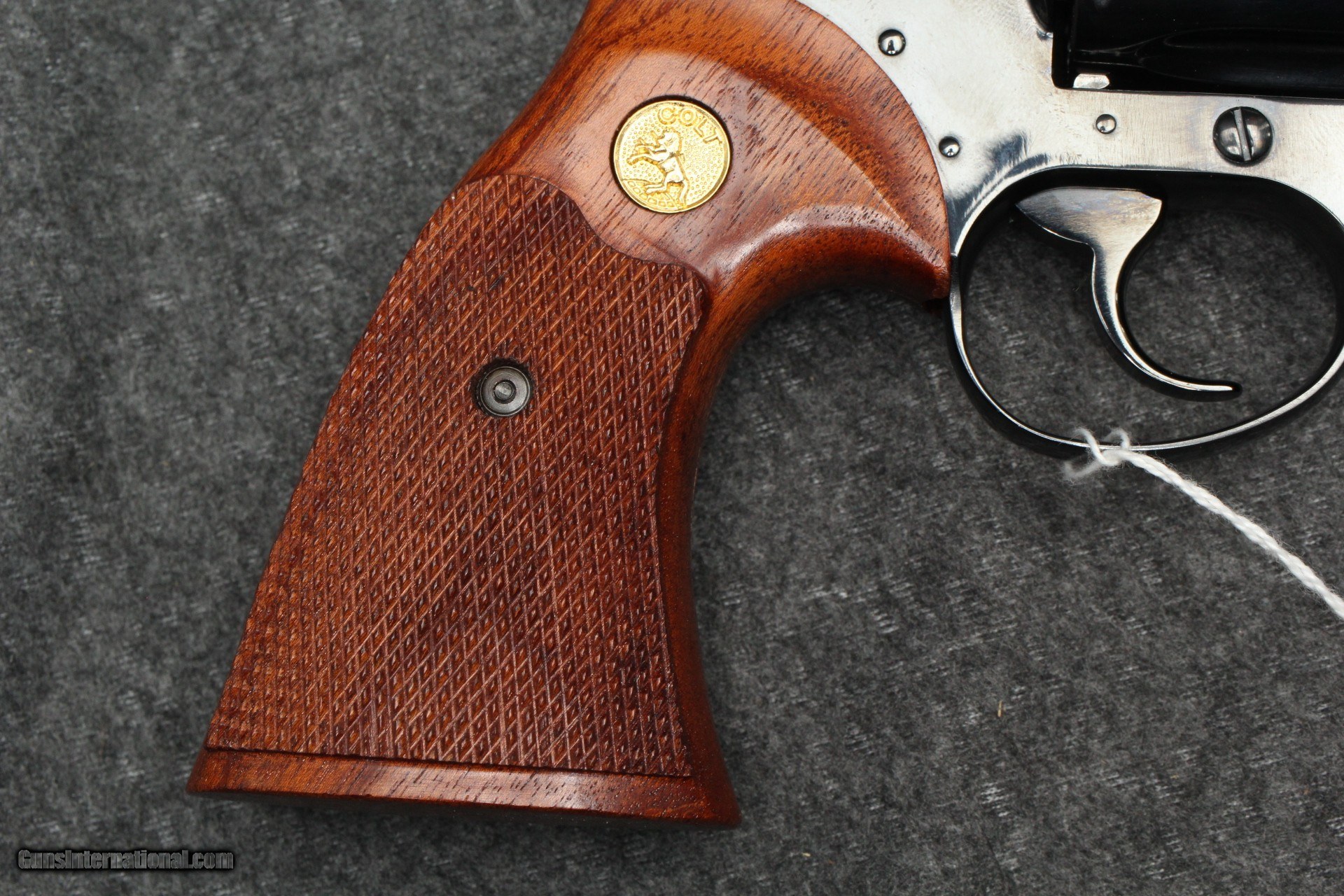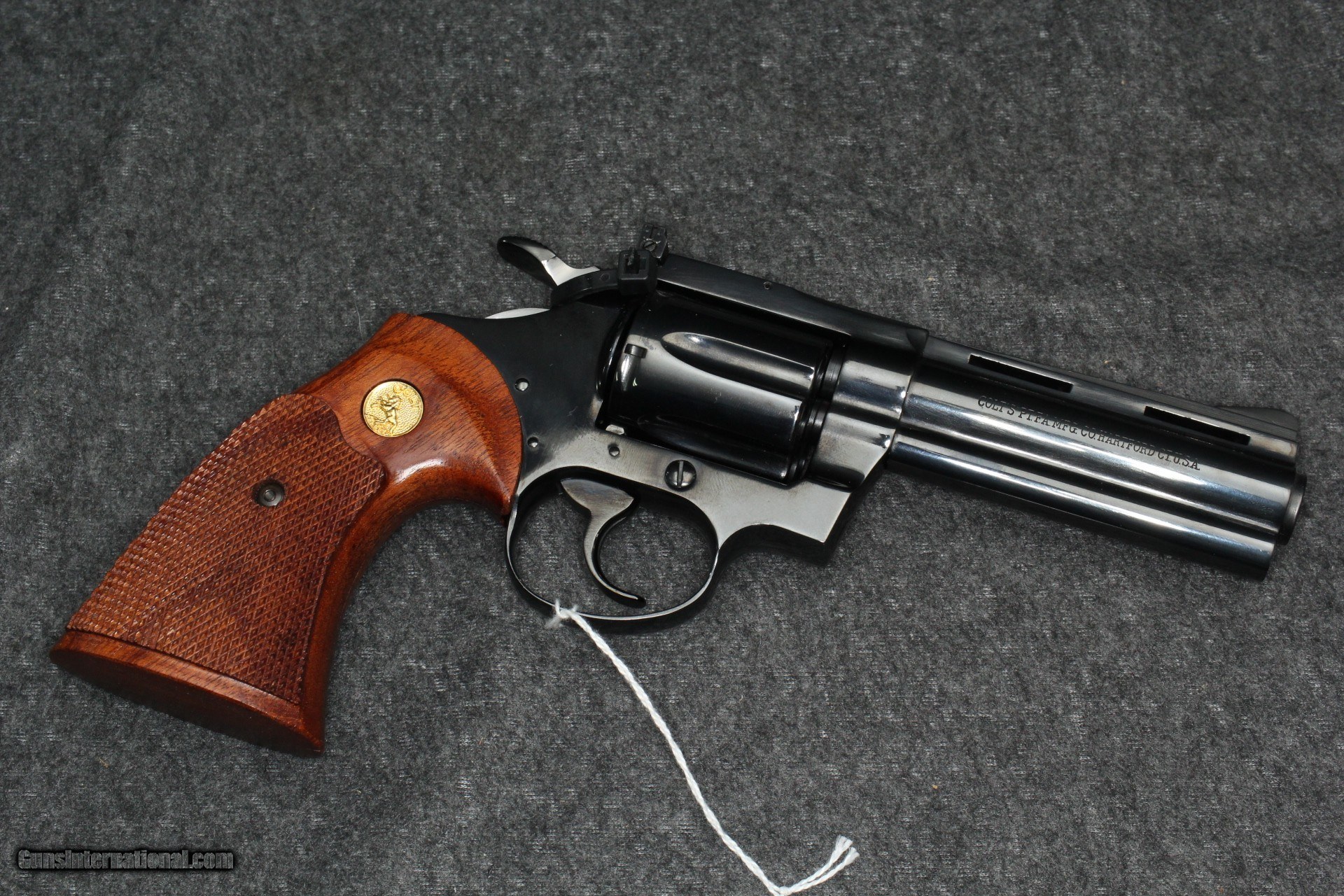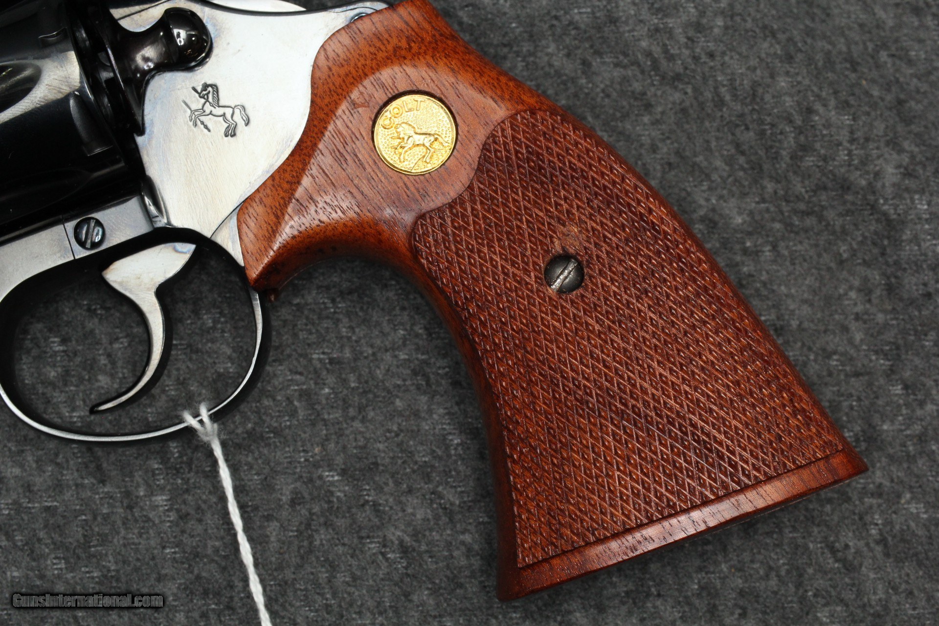 Description: 38 Spl, serial number D95XX, mfg 1968. 4" barrel, blue. Overall in excellent condition, possibly unfired. Very, very faint cylinder ring. Bore is excellent. Factory wood grips, excellent condition. Comes with correct, numbered box. More photos on request. Please add $55.00 for shipping and insurance. Will ship to C&R. SOLD Curio/Relic: Yes Handgun Caliber: .38 Special |