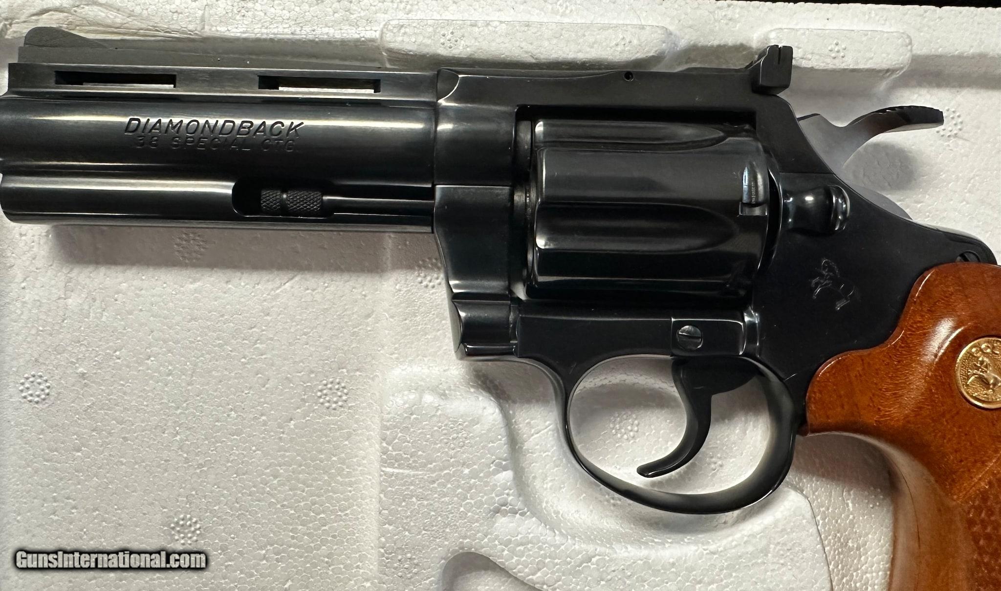 Description: Guns Listing ID: 1069949 Brand New condition! Factory box, factory insert, factory paper! Excellent shape no scratches. SOLD Manufacturer: COLT Model: DIAMONDBACK Caliber Info: .38 SPL Condition: Used - Non-Certified Barrels: 4 BARREL Finish: BLUED |
