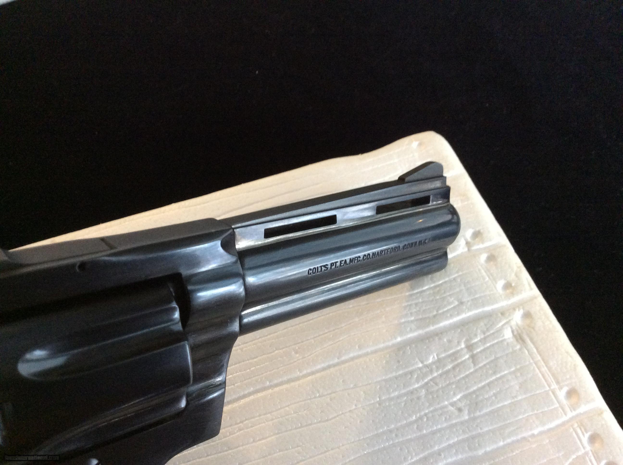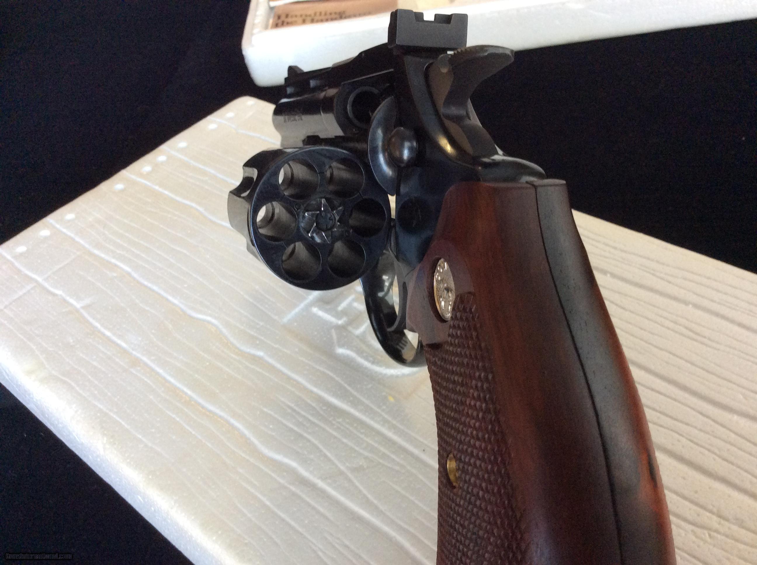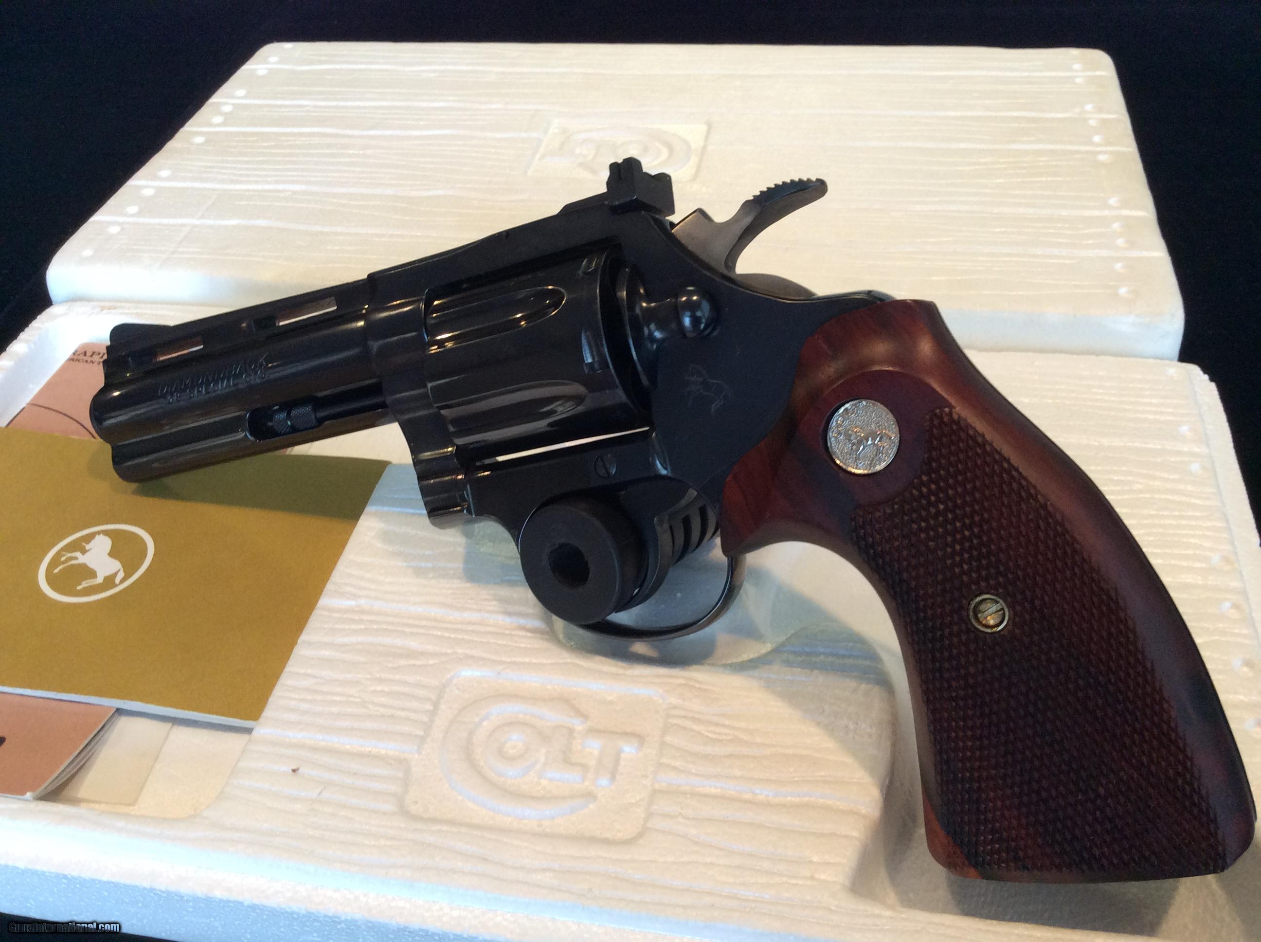 Description: 4 Inch Blue Diamondback .38 This piece is a beautiful 4 inch Diamondback chambered in for .38 Special. I would grade the bluing at 99% as I can find no issues with it. It locks up tight, timing perfect as the day it left the factory and has been fired very little. The turn ring is extremely fine and the forcing cone shows little evidence of having been fired much. It comes in the original serialized box which has the information label torn off but it is original box and label. The grips are aftermarket but just fantastic and add to the overall looks. Priced right. Ships FFL to FFL. Know your state laws before buying. Any check will do however certified funds ship quicker. Shipping is $25. SOLD Manufacturer: Colt Model: Diamondback Caliber Info: .38 Special Condition: EX Metal Condition: EX Wood Condition: EX Bore Condition: EX |