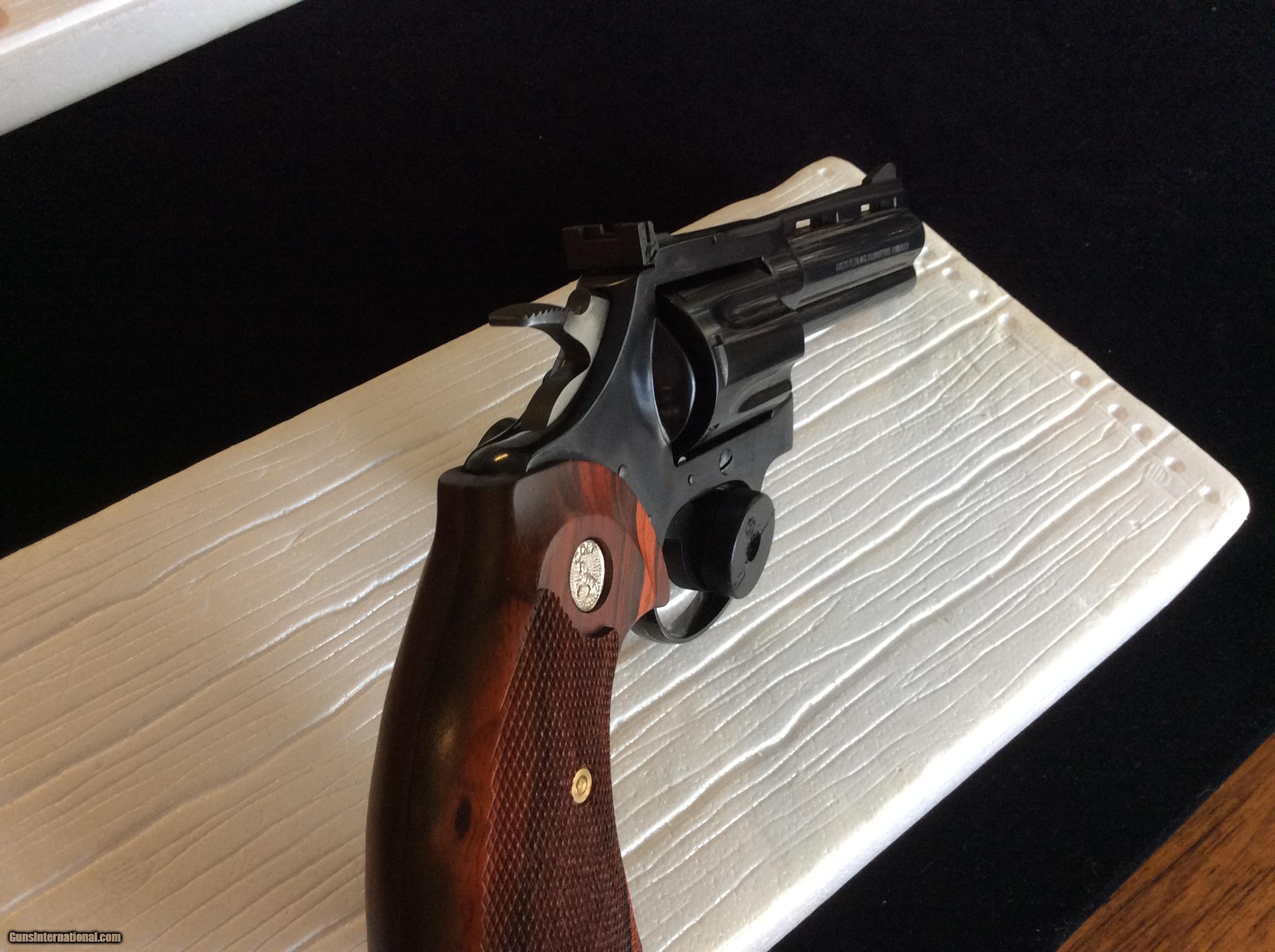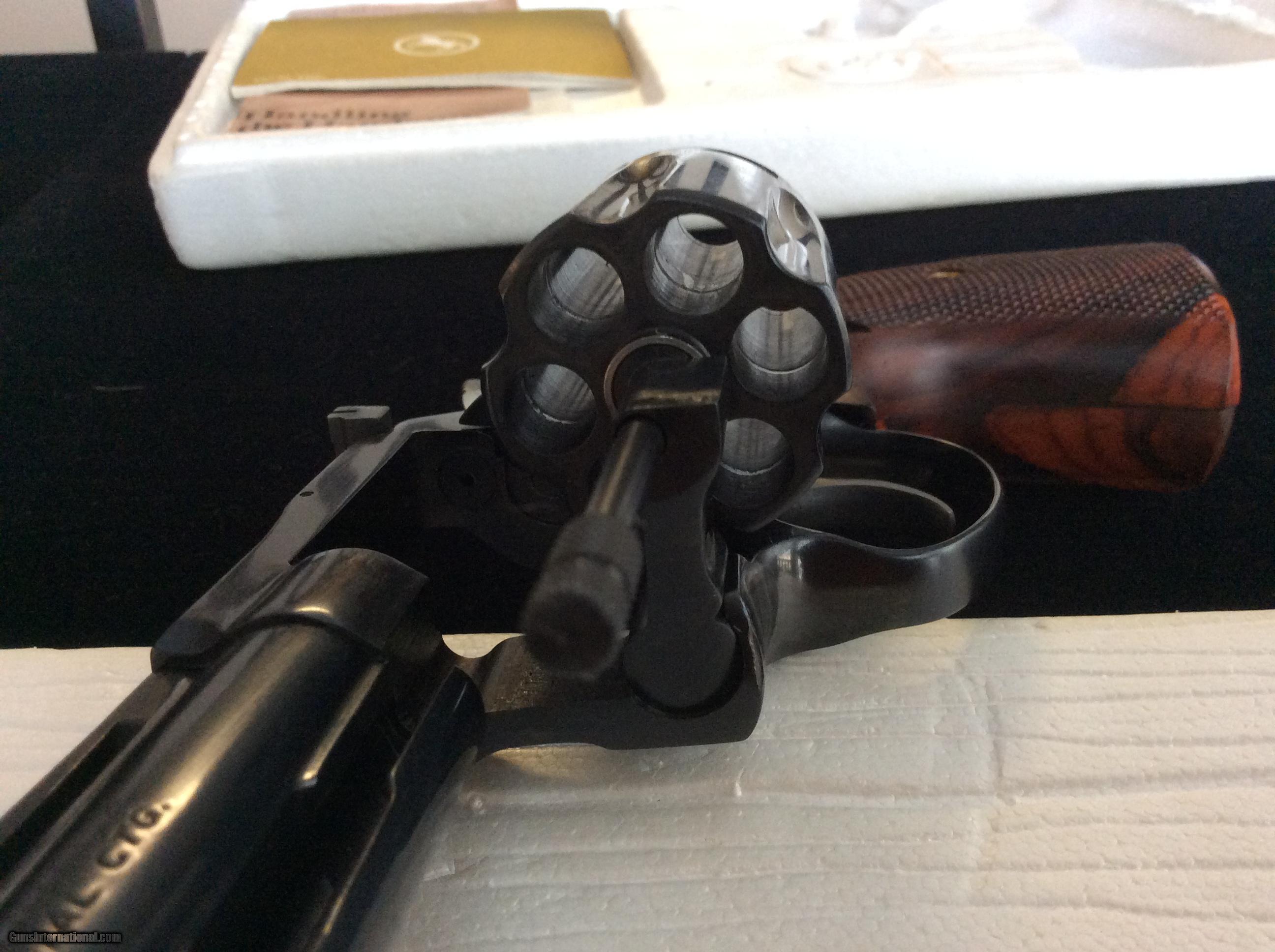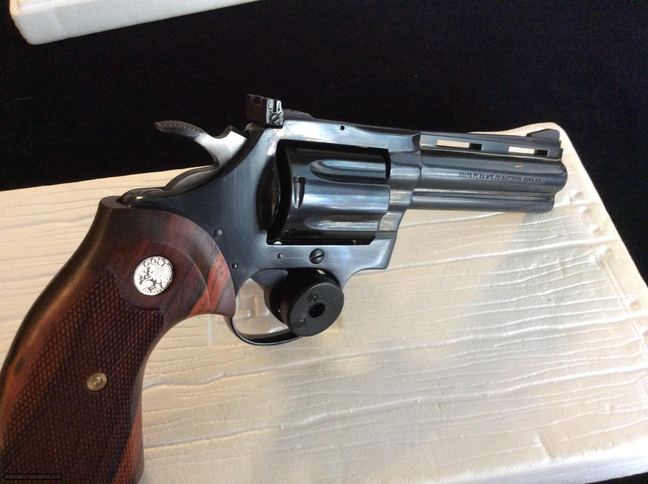 Description: 4 Inch Blue Diamondback .38 This piece is a beautiful 4 inch Diamondback chambered in for .38 Special. I would grade the bluing at 99% as I can find no issues with it. It locks up tight, timing perfect as the day it left the factory and has been fired very little. The turn ring is extremely fine and the forcing cone shows little evidence of having been fired much. It comes in the original serialized box which has the information label torn off but it is original box and label. The grips are aftermarket but just fantastic and add to the overall looks. Priced right. Ships FFL to FFL. Know your state laws before buying. Any check will do however certified funds ship quicker. Shipping is $25. SOLD Manufacturer: Colt Model: Diamondback Caliber Info: .38 Special Condition: EX Metal Condition: EX Wood Condition: EX Bore Condition: EX |