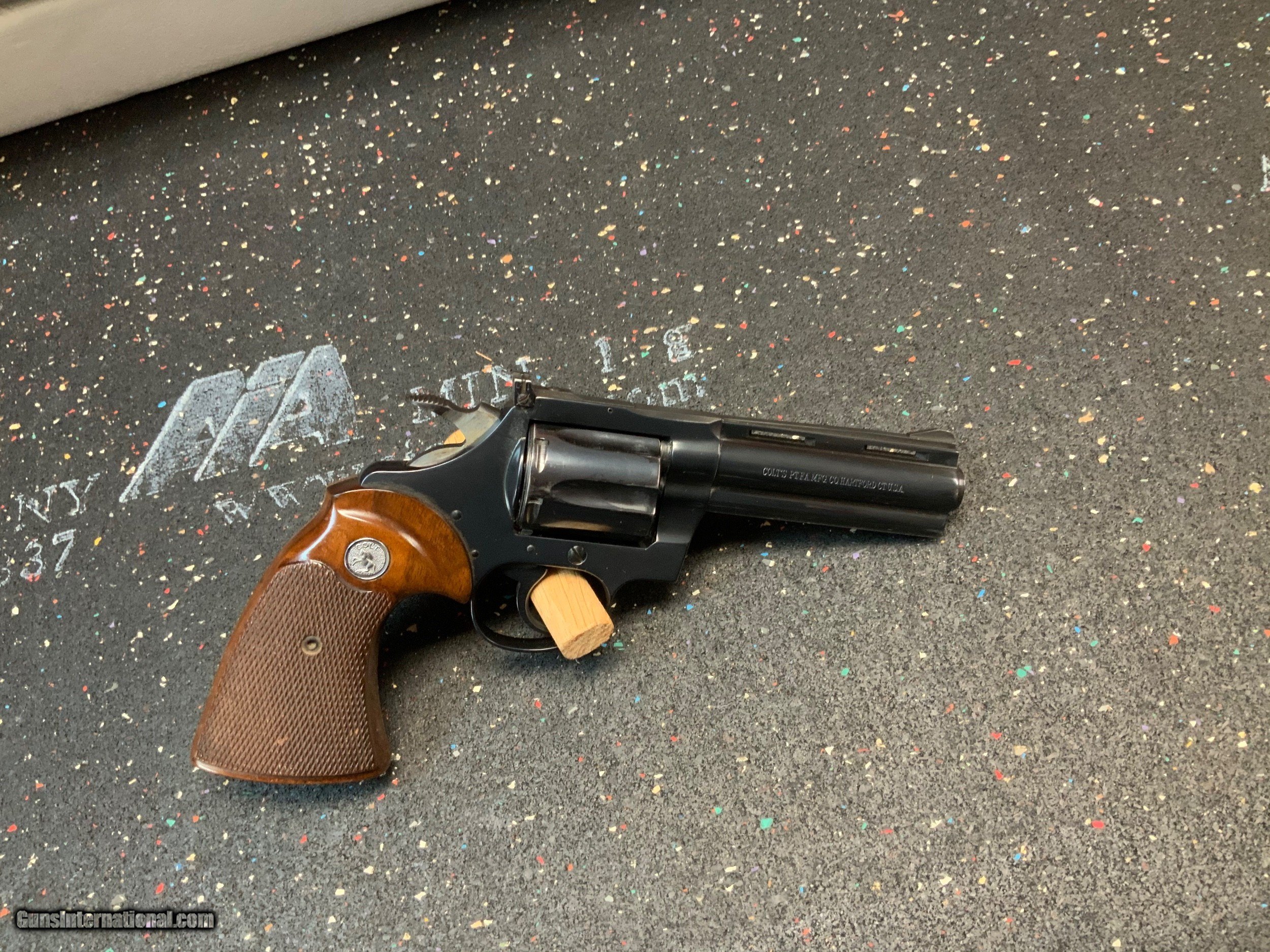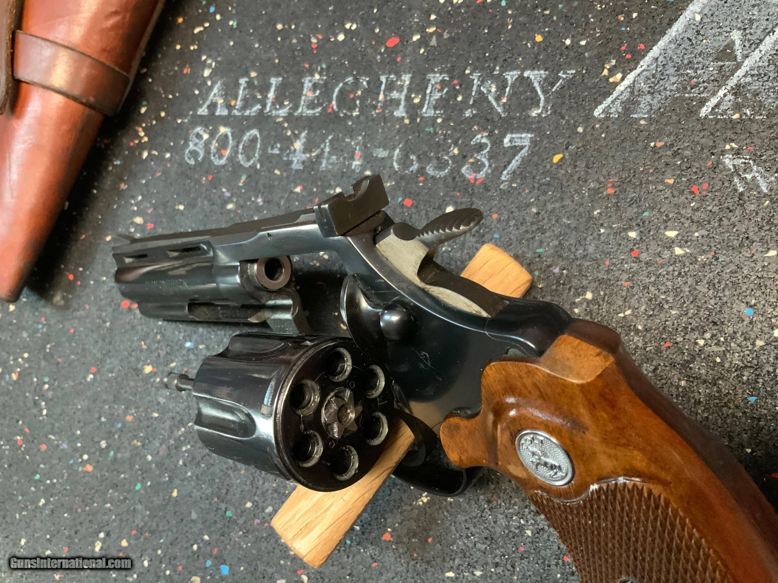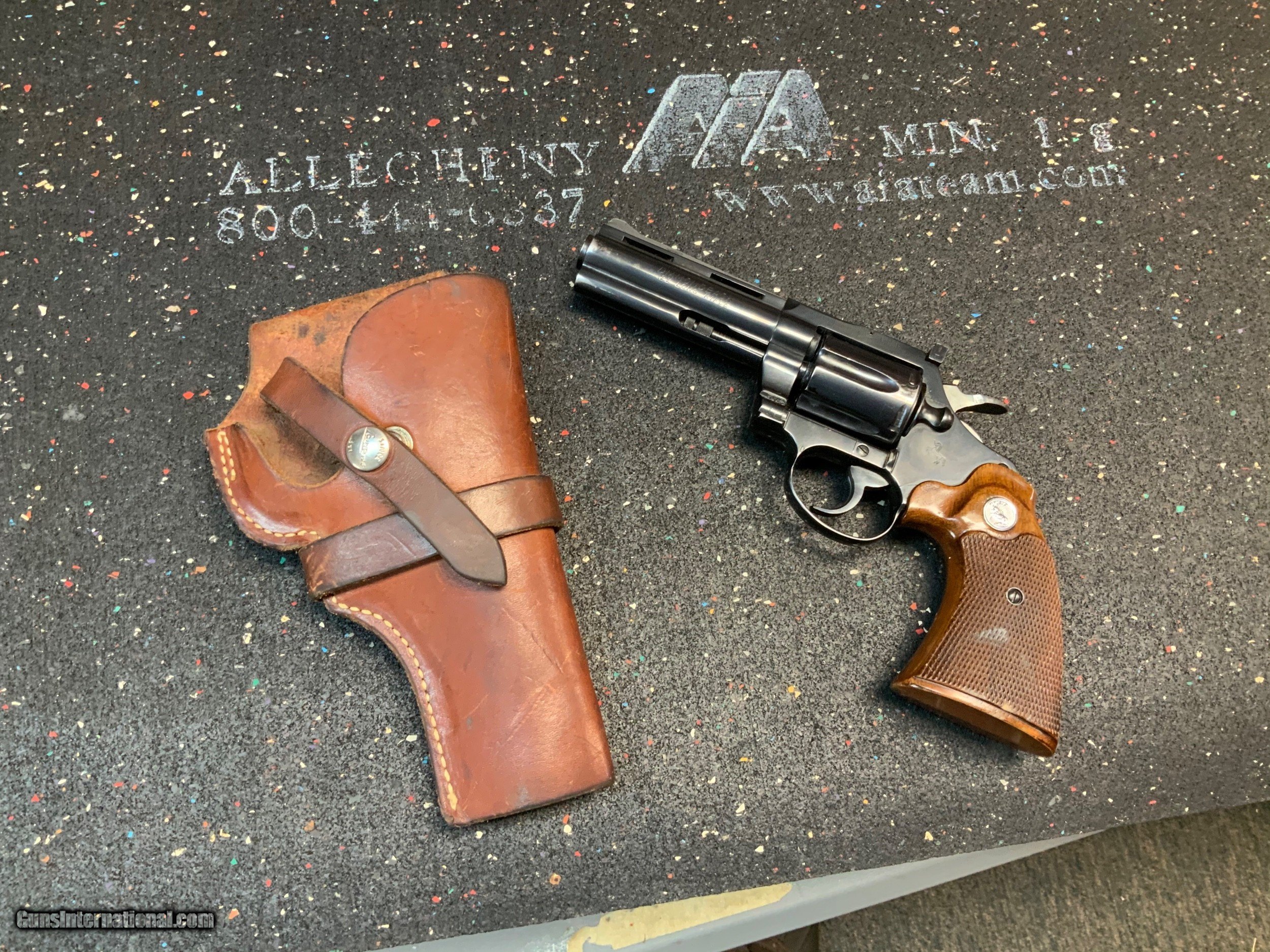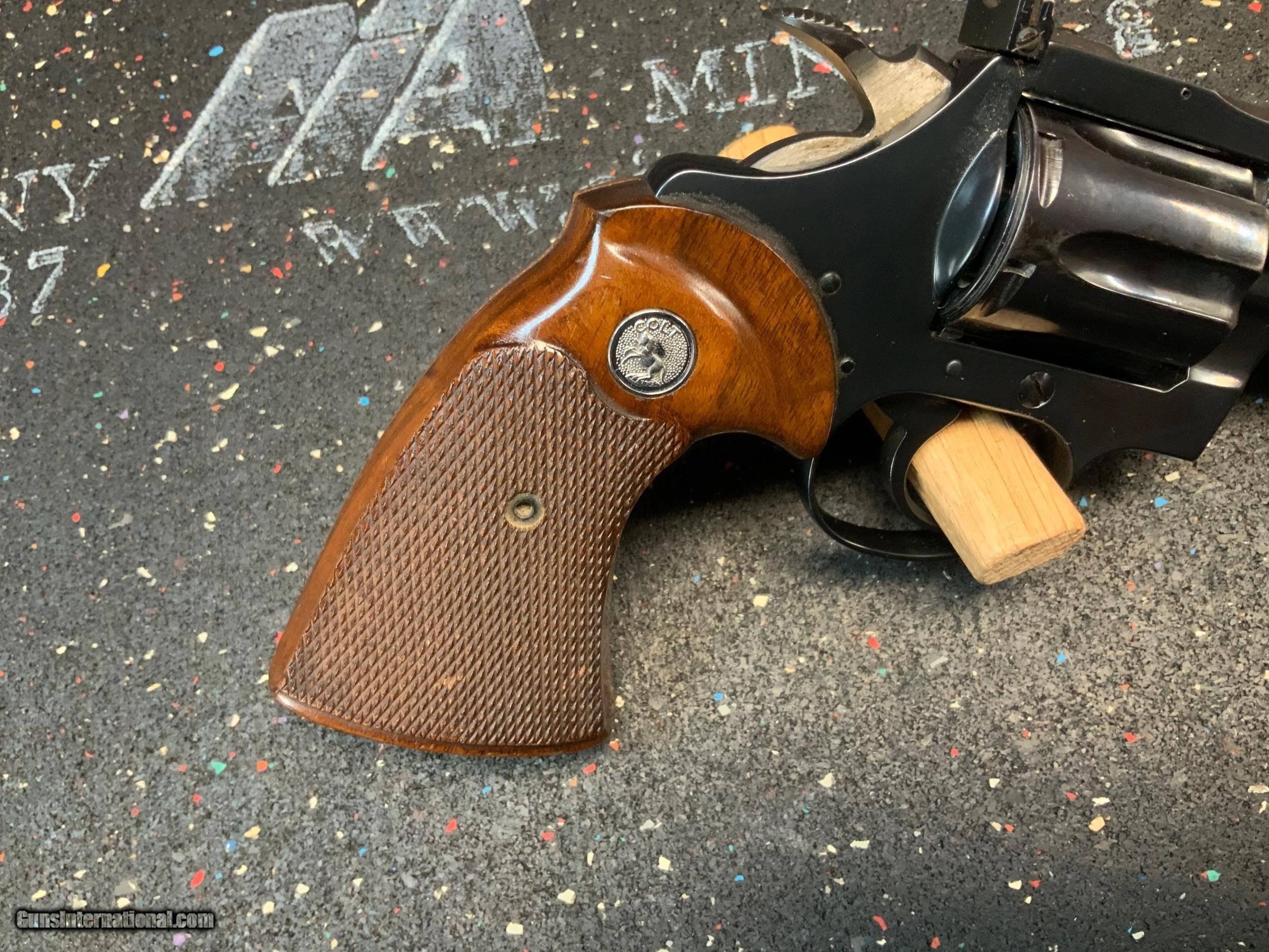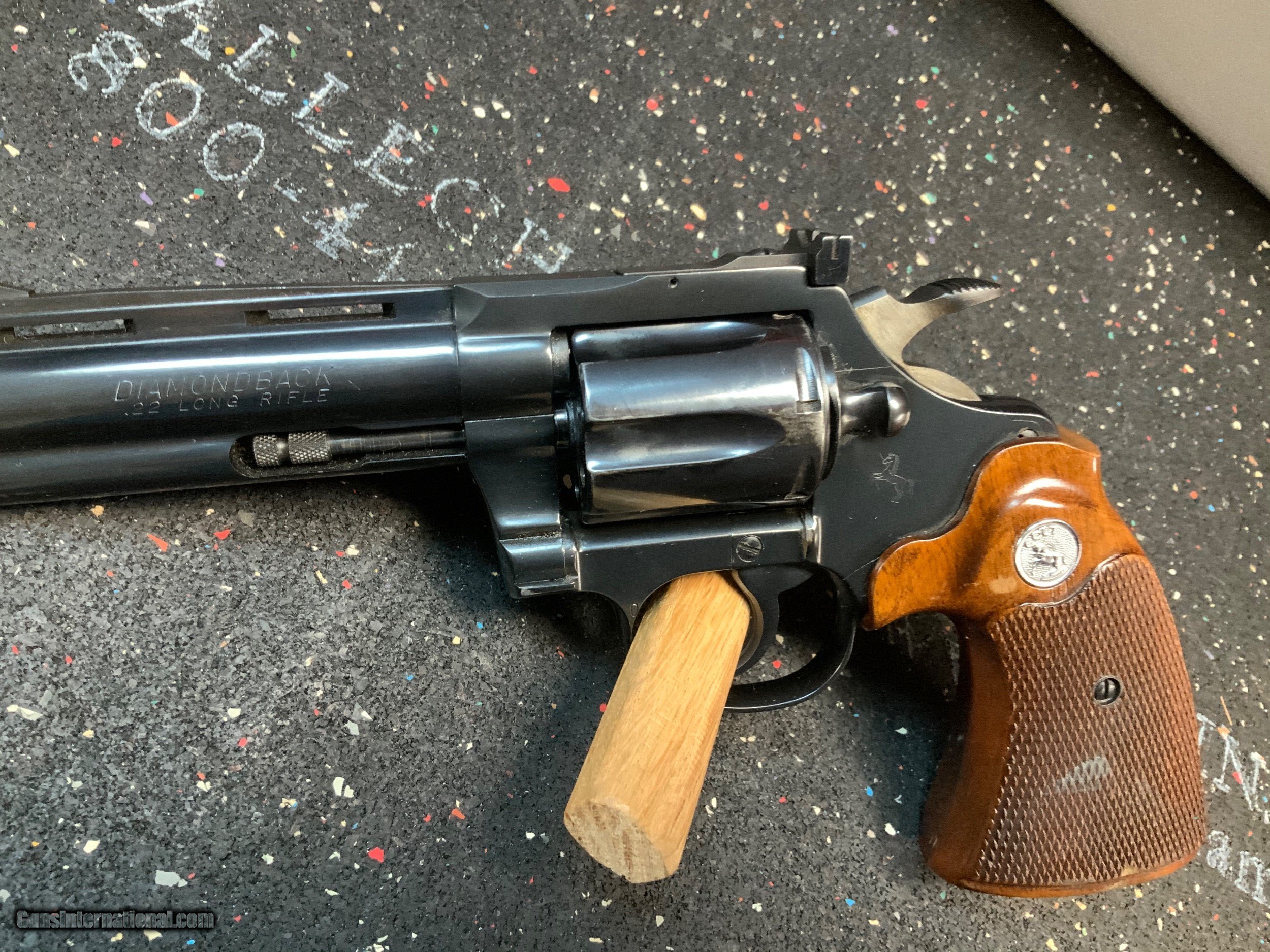 Description: (Sale Pending)Colt Diamondback double action revolver in 22 long rifle caliber. This is the 4 inch barreled version and was made in 1968. All original and in great mechanical condition. Looks to have been fired very little but has some cosmetic issues. No rust or pitting just bluing rubs. Appears to have lived most of its life rattling around in a safe in a holster. Pictured is the worst spot on the cylinder. It will make a fantastic shooter and companion and come with its lifetime partner holster made by Lawrence in Portland, Oregon. Over all great gun with the Colt known butter smooth action. Please add $35 shipping and insurance to your FFL. SOLD Manufacturer: Colt Model: Diamondback Caliber Info: 22 LR Condition: Good Metal Condition: Good Wood Condition: Good Bore Condition: Excellent Barrels: 4 Inch Action: Double |