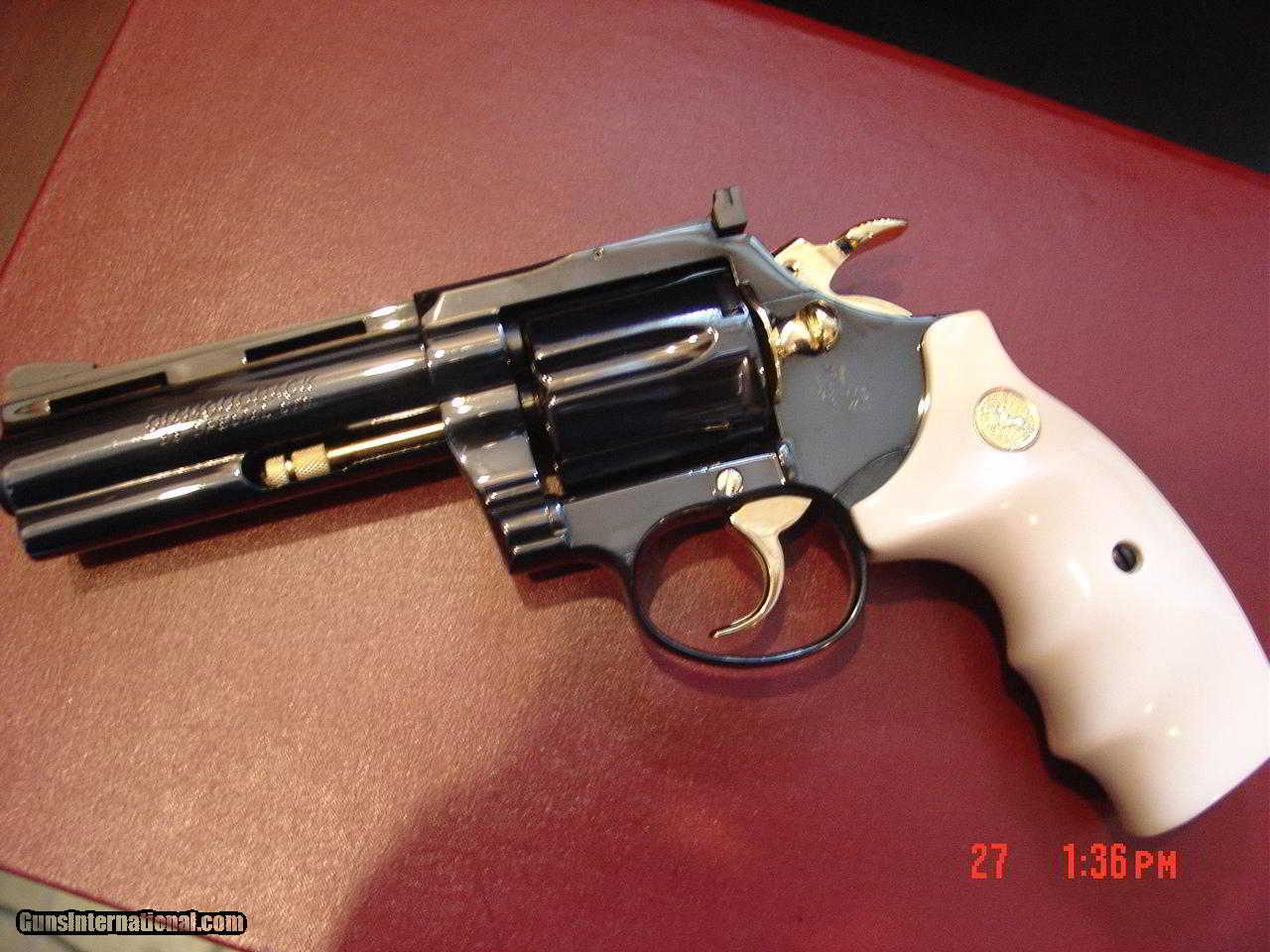 Description: SALE PENDING AWAITING FUNDS .Here is a totally refinished Colt Diamondback,in the bright presentation grade high gloss blue with 24K Gold accents,& just done in Sept 2016, made in 1968 so its now 48 years old & now looks better than it did brand new. has a custom set of bonded ivory grips with finger grooves & gold Colt medallions, & its a 6 shot,double or single action with a 4" barrel,in 38 Special caliber,& has a nice triangle shape padded hard case,& has an adjustable rear site, & a super smooth action,with a heavy vented rib barrel,so its a baby Python. serial #D15943 & has not been shot since it was refinished. this is a great match for my nickel & gold Diamondback listed also. a lot of gun for only $2595. firm + $35. shipping to your FFL dealer only. I am an FFL dealer,located in the Clearwater,Florida area. I accept bank wire transfers,direct deposits to Wells Fargo bank,cashiers checks,postal & bank money orders,or personal & business checks,but those take time to clear. no credit cards or PayPal-sorry. I now offer 60 day layaways with 1/3rd down & 1/3rd per month.be sure to check out all my other unique listings. SOLD |