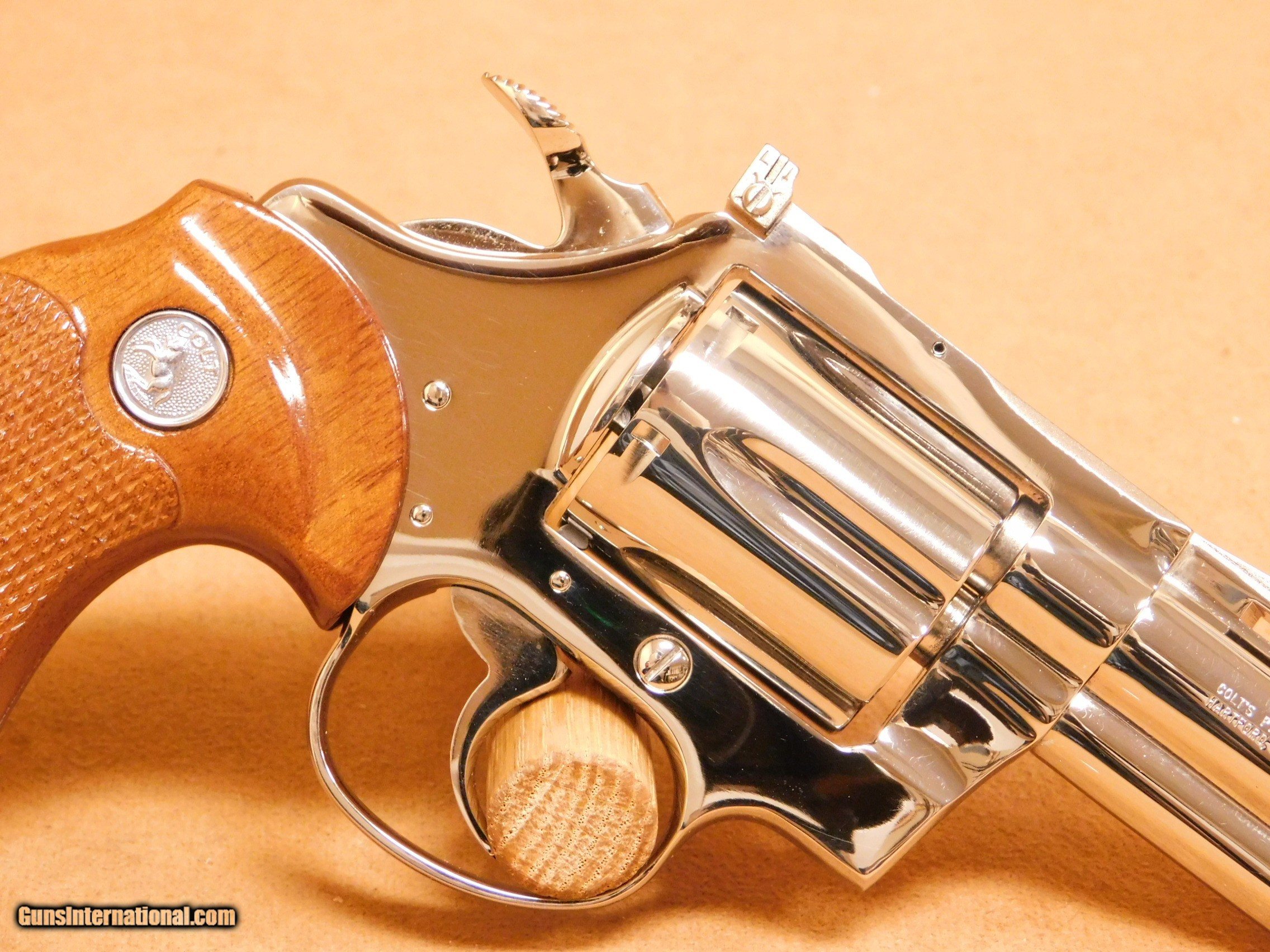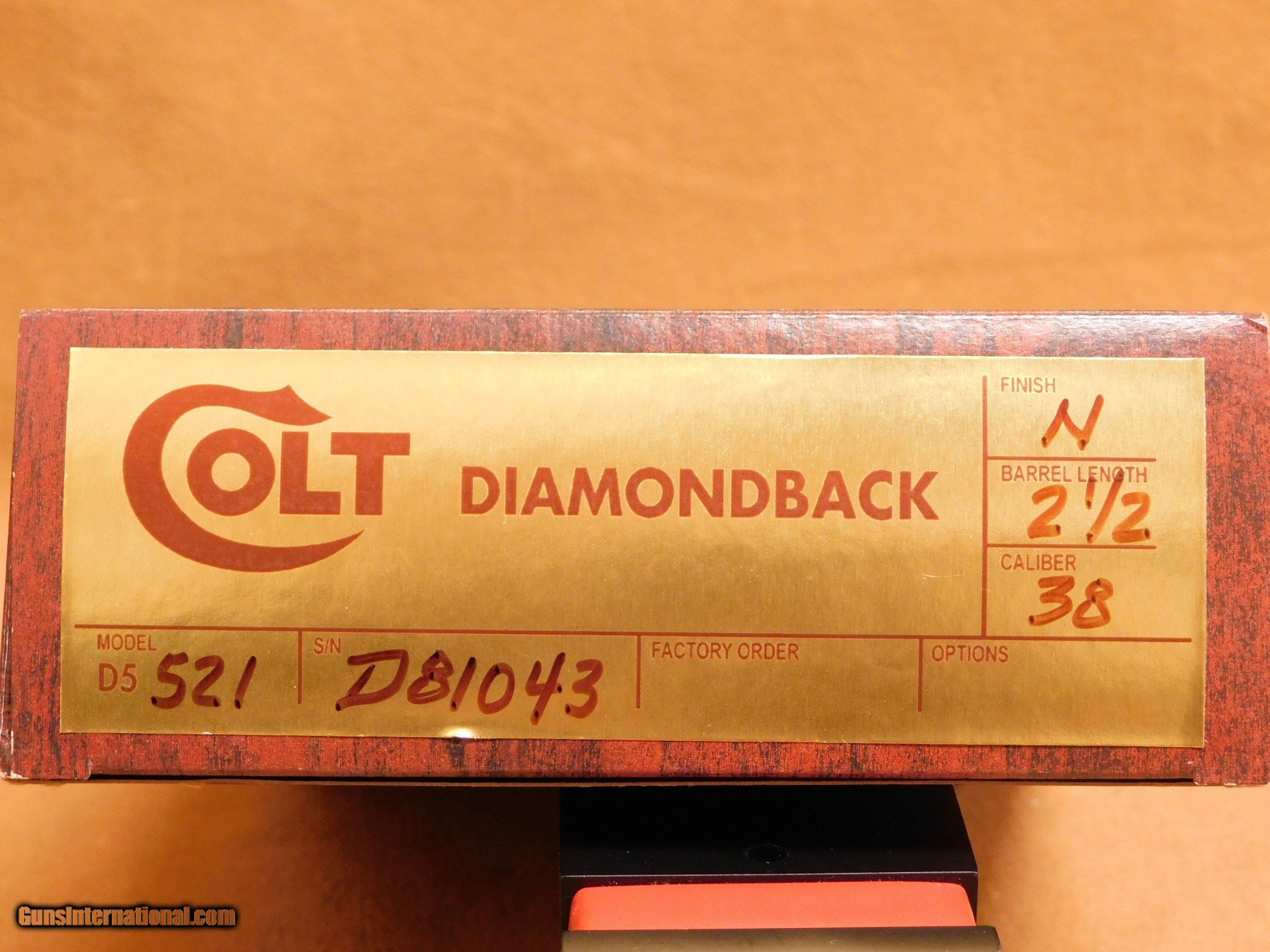 Description: This is a nice, mid-era Colt Diamondback in .38 Special with a 2-1/2"-inch barrel. The nickel is starting to frost very slightly on the hammer. The gun is equipped with very nice checkered walnut grips. We suspect the box is not the original, but a replacement. Either that or it's been preserved remarkably well. All items are also available for sale in our brick & mortar store and are subject to prior sale. Think long, think wrong. We are always buying unique and collectible single firearms and collections. Please give us a call at 859-278-8370 to discuss what you have available. We also offer free appraisals and guarantee TOP DOLLAR PAID for your unique and collectible firearms. Payment On firearms, we typically only accept credit cards or money orders/cashier's checks.