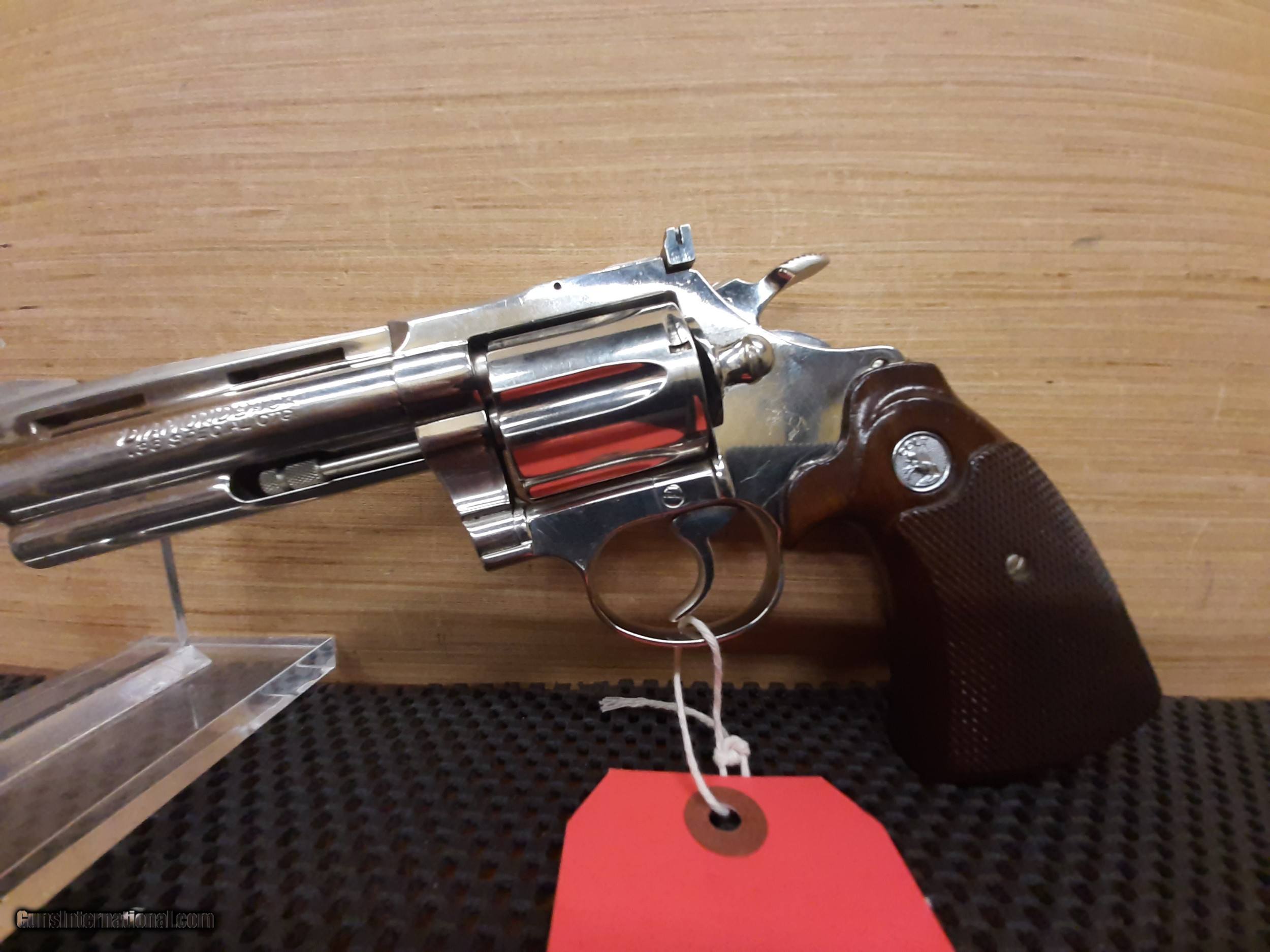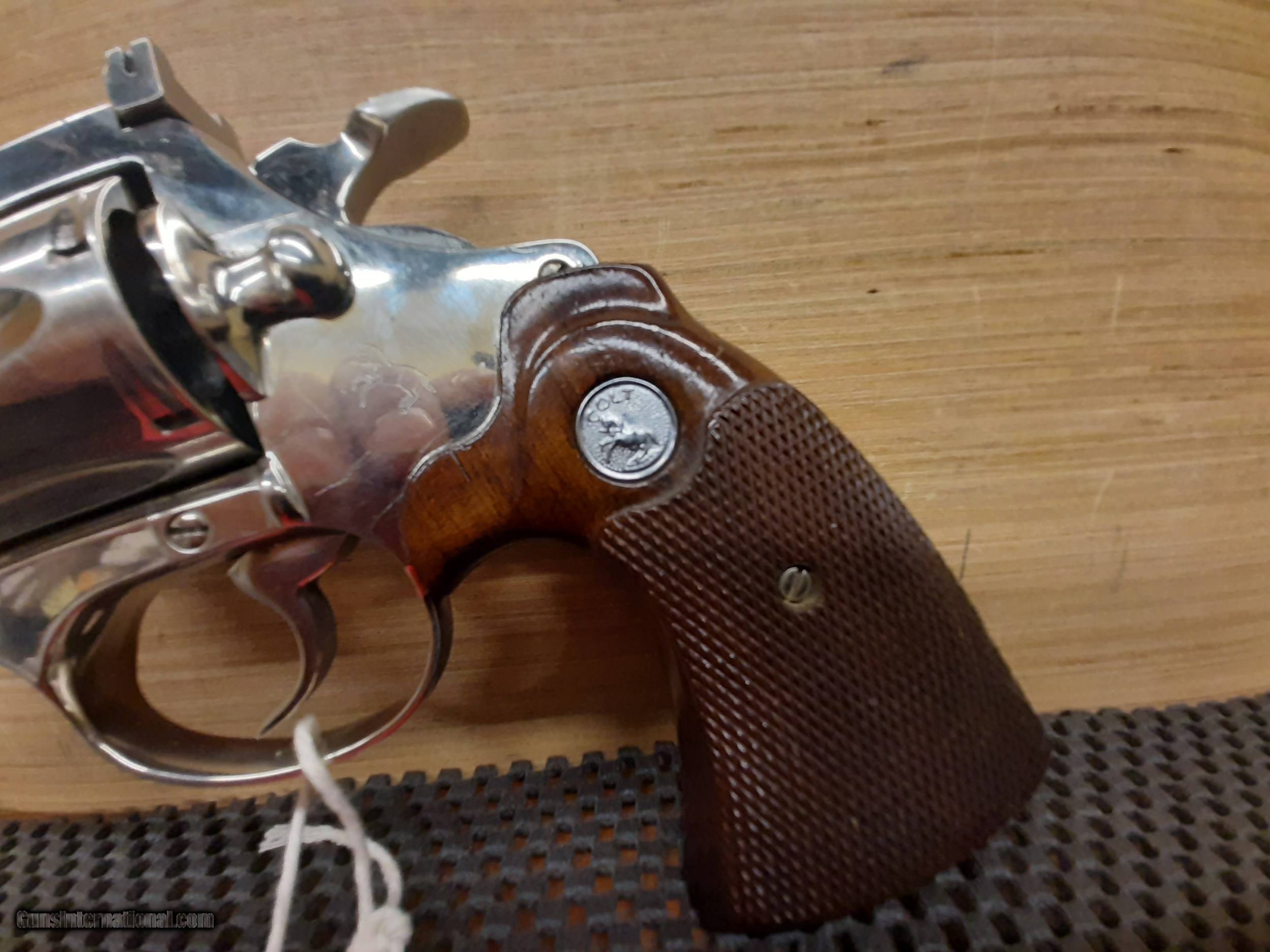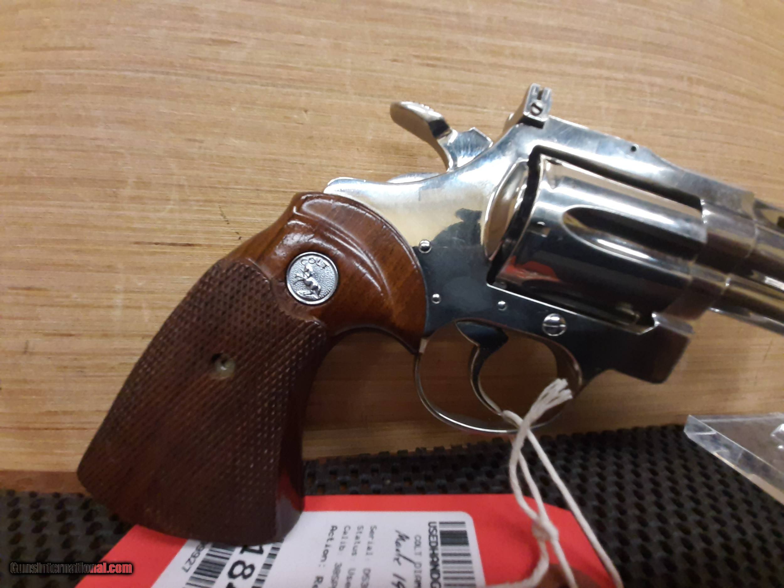 Description: USED GOOD CONDITION COLT DIAMONDBACK NICKEL .38 SPL -- 4" BARREL -- WOOD COLT GRIPS -- 6 RNDS -- TARGET TRIGGER & HAMMER SOME LIGHT SCRATCHES ON IT THAT DO NOT FEEL FOR APPEAR TO GO THRU PLATING & CYLINDER RING MADE IN 1972 ****PLEASE CALL IN THE WITH THE SELLER’S INVENTORY NUMBER IF INQUIRING ABOUT A FIREARM****** WE DO NOT SHIP FIREARMS AND/OR FIREARMS’ PARTS OUT OF THE 50 UNITED STATES, SO DON’T ASK—YOU NEED TO KNOW IF FIREARM IS LEGAL FOR YOUR STATE PRICE REFLECTS PAYMENT BY MONEY ORDER / CASHIERS CHECK. A 3% PREMIUM IS ADDED FOR CREDIT CARDS. WE DO ACCEPT PERSONAL OR BUSINESS CHECKS, BUT THERE IS A GRACE PERIOD OF 10 BUSINESSS DAYS ON THEM. Shipping is $40 for handgun and $30 for long gun. Shipping to Alaska and Hawaii will be more based on weight of firearm. WE DO OFFER LAYAWAY PLANS FOR 30,60, OR 90 DAYS. THERE IS A $5.00 CHARGE FOR EVERY 30 DAYS ITEM IS ON LAYAWAY. WE ALSO REQUIRE A 20% DOWN PAYMENT ON TOTAL OF LAYAWAY SALE. LAYAWAYS ARE NON- REFUNDABLE. HERE IS HOW THIS PROCESS WORKS. YOU WOULD CALL US AT 540-337-9218 WITH LISTER # TO PURCHASE THE GUN. THEN ONCE I HAVE RECEIVED PAYMENT AND AN FFL (FEDERAL FIREARMS LICENSE) FROM A LICENSED DEALER IN YOUR AREA OF YOUR CHOICE. WE WILL THEN SHIP THE GUN TO THEM. YOU WOULD THEN PICK UP THE GUN AT YOUR LOCAL DEALER AND DO PAPER WORK THERE. Please have your FFL Dealers contact information when you call. DOMINION OUTDOORS 15 ANGELA COURT FISHERSVILLE, VA 22939 540-337-9218 540-337-2422 fax M – F 9 to 6 ETZ Sat 9 – 4 ETZ ****PLEASE CALL IN THE WITH THE SELLER’S INVENTORY NUMBER**** ***PLANO HARD CASES AVAIABLE FOR PURCHASE $19.99 WITH THE PURCHASE OF A FIREARM** *** Online prices compared to in store prices will vary. *** SOLD |