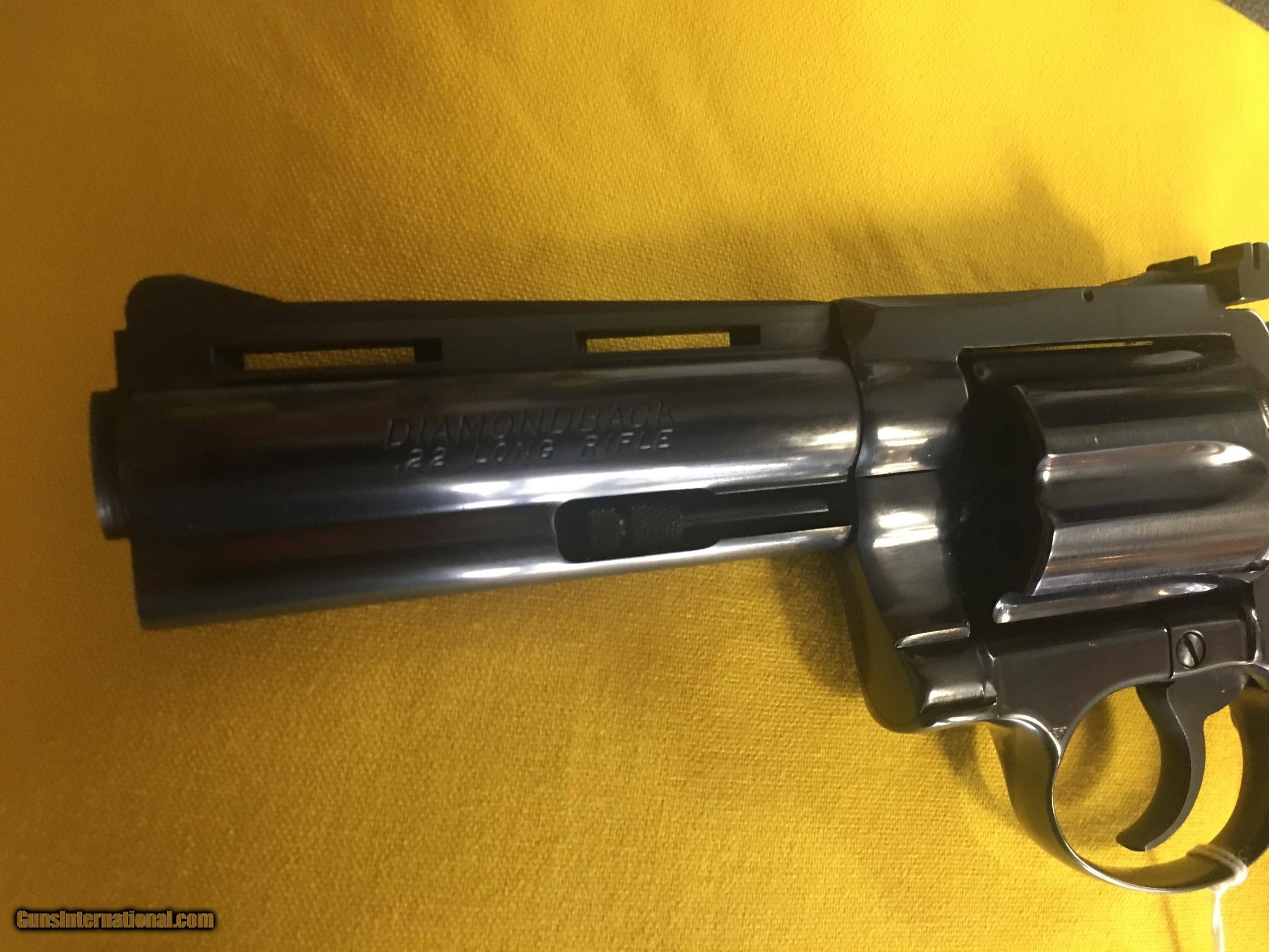 Description: As new ( no Box ) Colt Diamondback 22 lr. 4" Blue maybe unfired, but has a very very slight turn mark on the cylinder $2,150.00 + $35.00 shipped to your FFL SORRY NO CREDIT OR DEBIT CARDS, POSTAL MONEY ORDER WILL SHIP SAME DAY Personal checks require 11 business days to clear, SOLD |