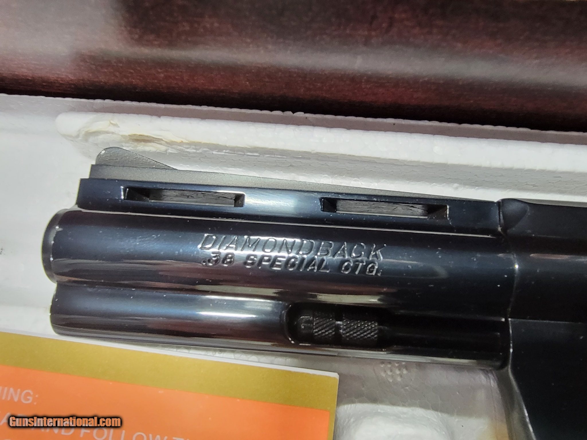 Description: Guns Listing ID: 796734 # 4210 Mint Diamondback with ORIGINAL BOX Book SEE PICTURES I have never seen one this nice Year is 1981 SOLD Manufacturer: COLT Model: DIAMONDBACK Caliber Info: 38 SPECIAL Condition: Used - Non-Certified Barrels: 4 BARREL Finish: BLUE |