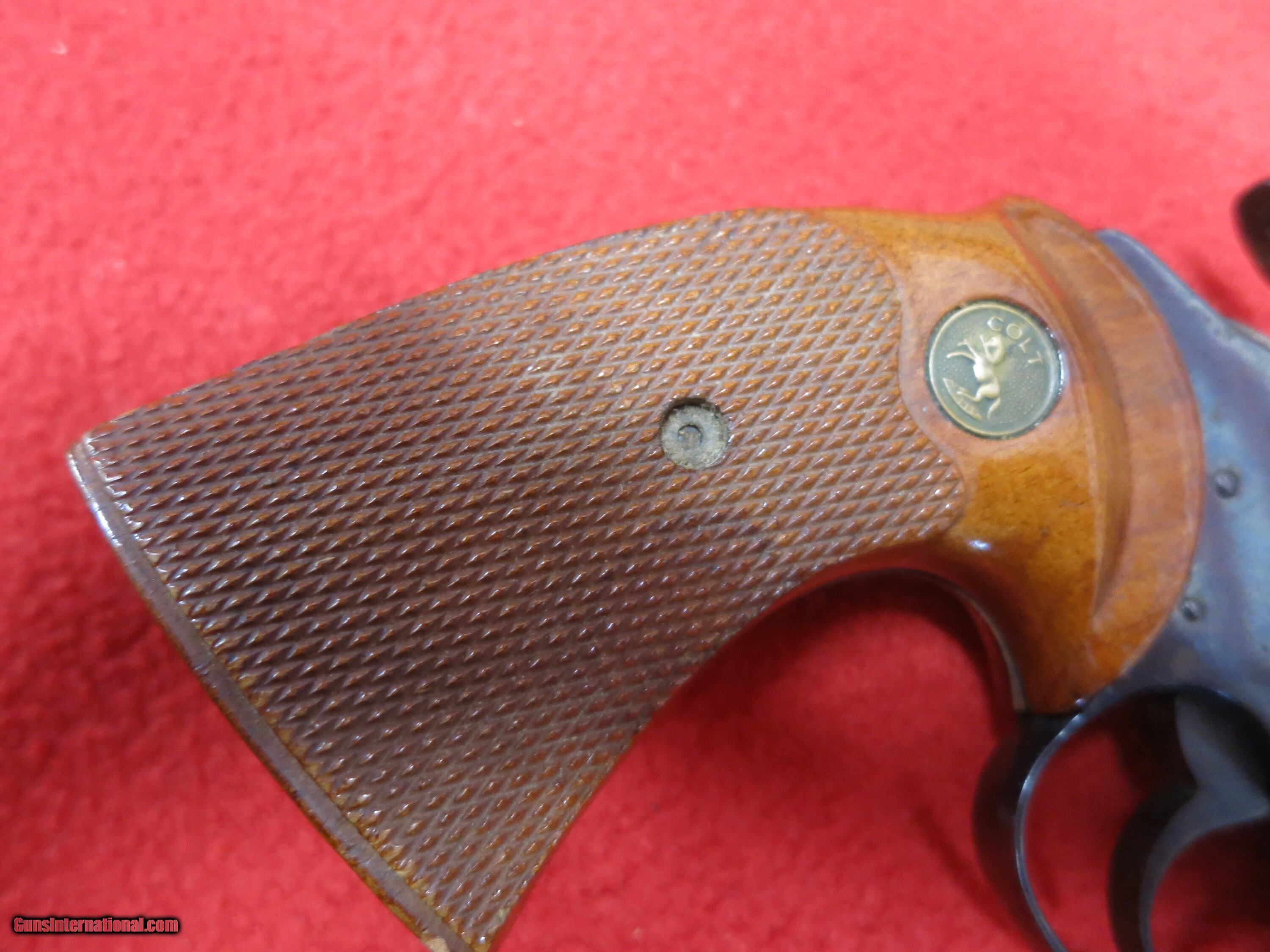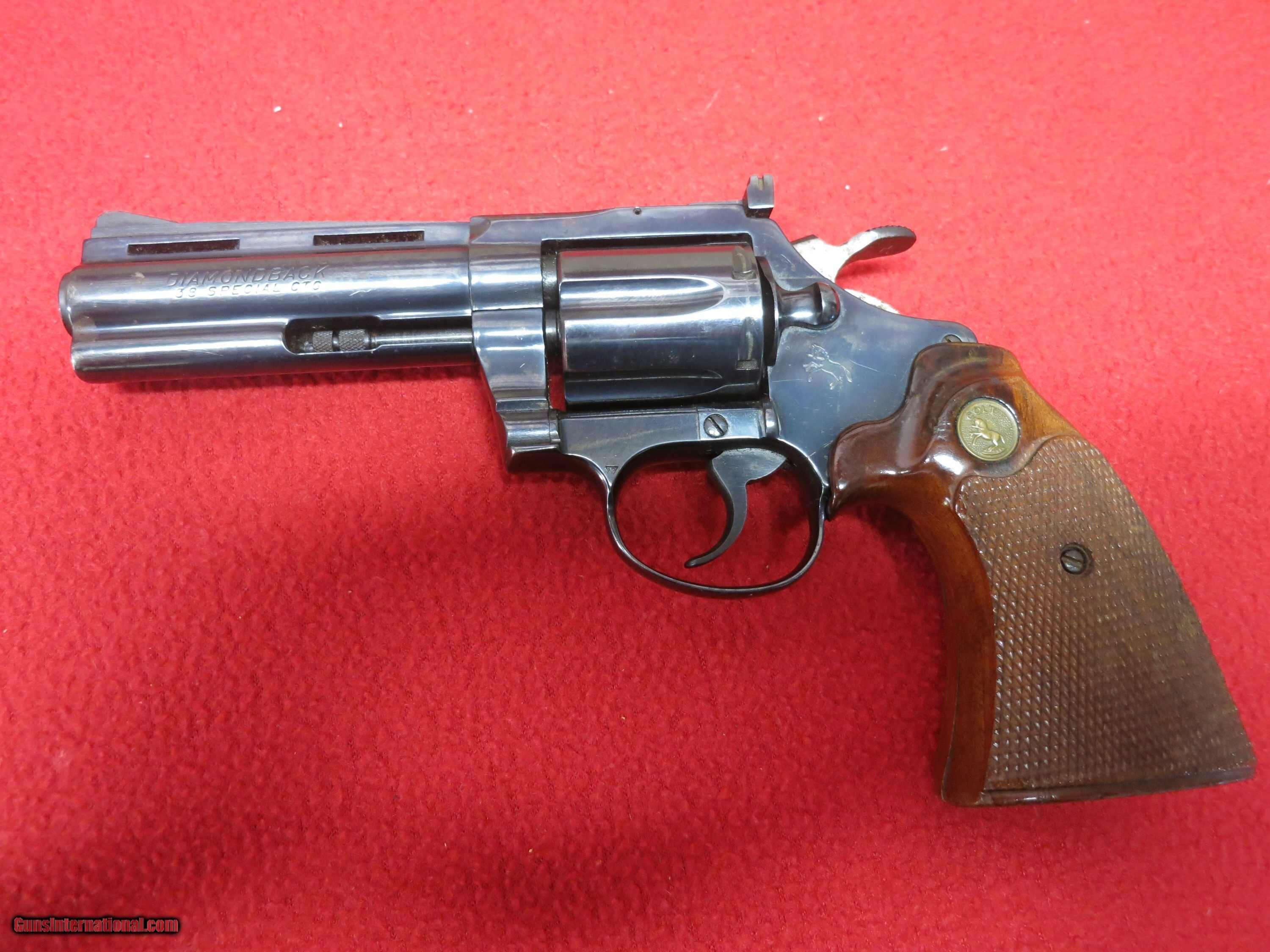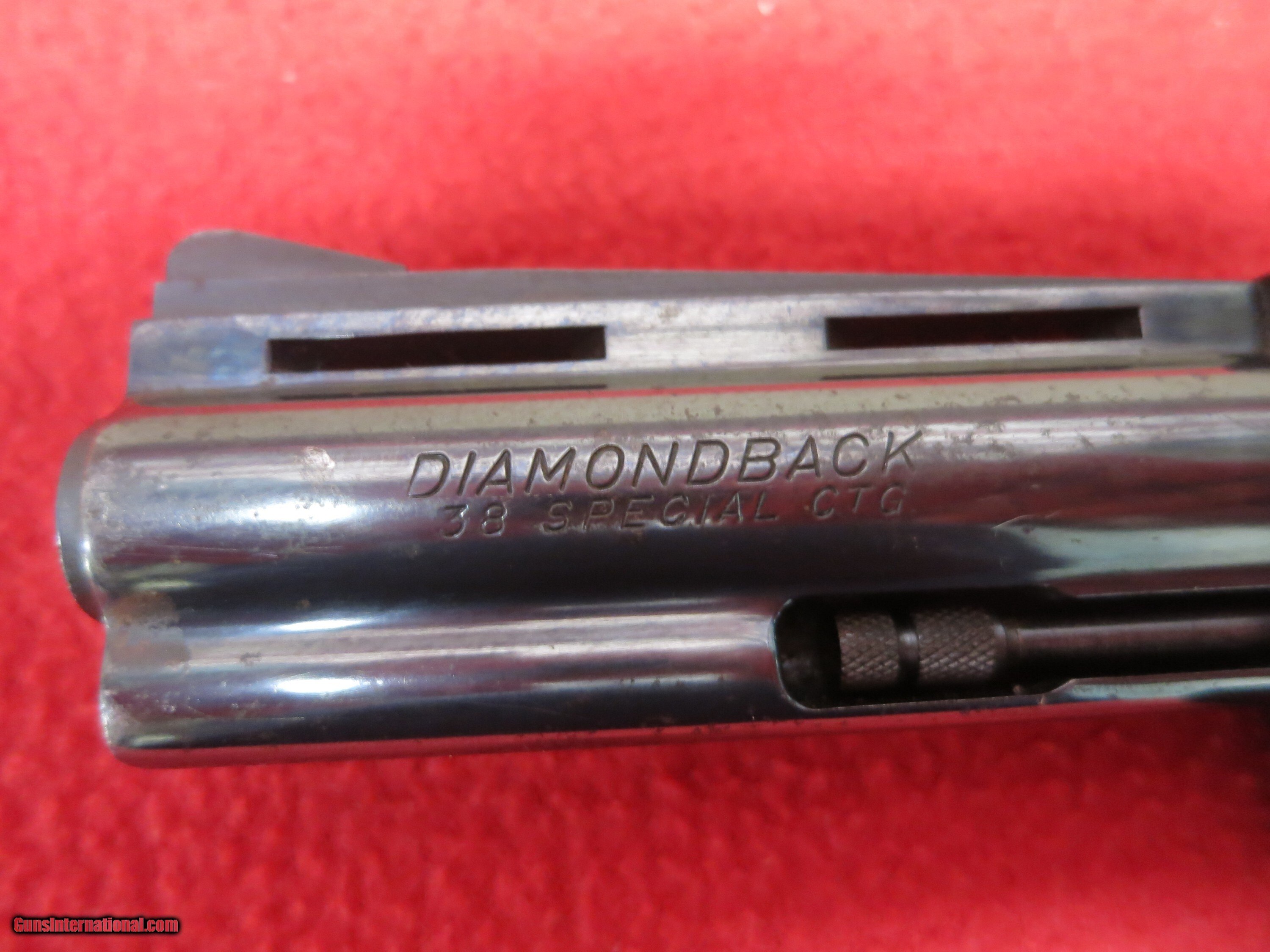 Description: COLT DIAMONDBACK .38 sp. 4" BARREL WITH A VERY GOOD BORE. BLUEING IS 97% WITH JUST THE NORMAL WEAR. MOST IS AROUND THE MUZZEL FROM FIREING. COLT CHECKERED GRIPS ARE VERY GOOD WITH JUST A COUPLE OF LIGHT IMPRESSIONS. SN R23913. mfg. 1978. CALL OR E-MAIL WITH QUESTIONS; Price: $1,800.00 Contact Seller |