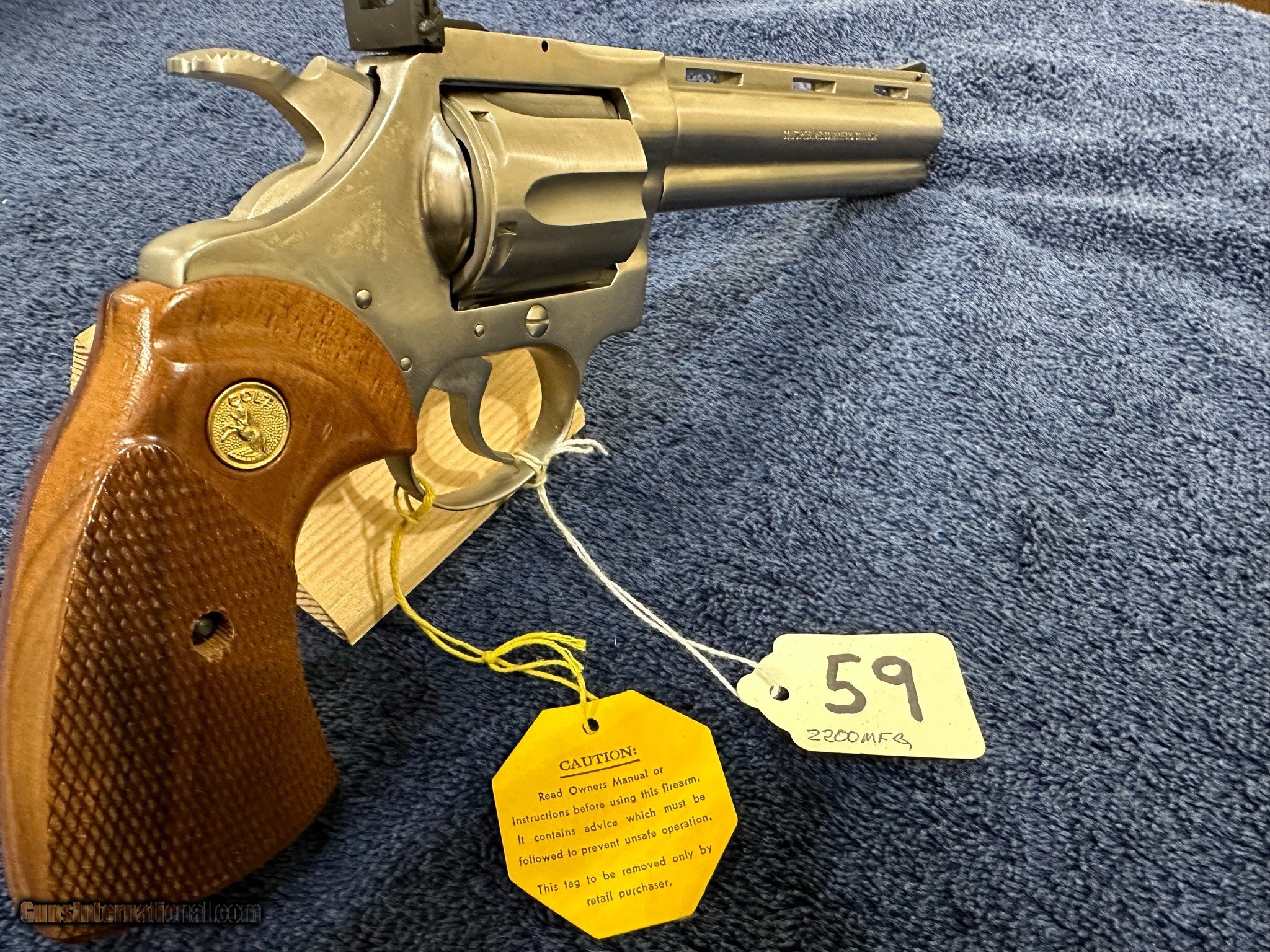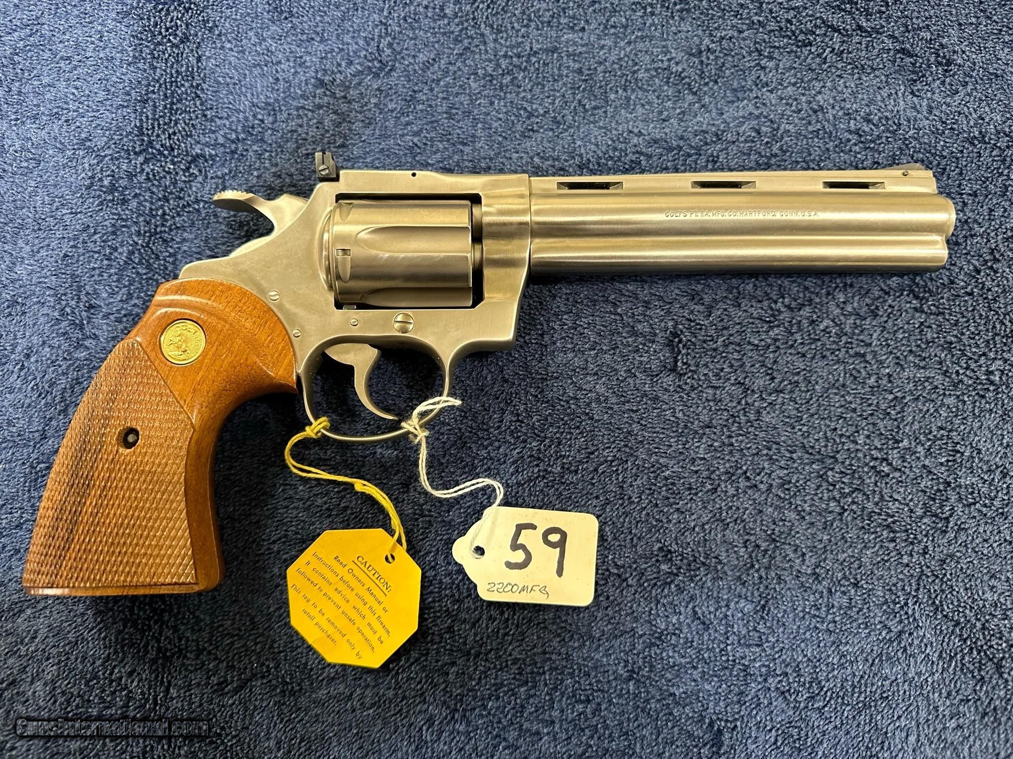 Description: ABSOLUTELY PERFECT EXAMPLE OF RARE (only 2200 made) 6" nickle finish in .22LR. THIS IS 100% NIB WITH DOC;S AND HANG TAG. $4,500.00 PLUS S&H (Make offer) SOLD Handgun Caliber: .22 Long Rifle Manufacturer: COLT'S Model: DIAMONDBACK Serial Number: S71209 Condition: 100% Manufacture Date: 1981 |