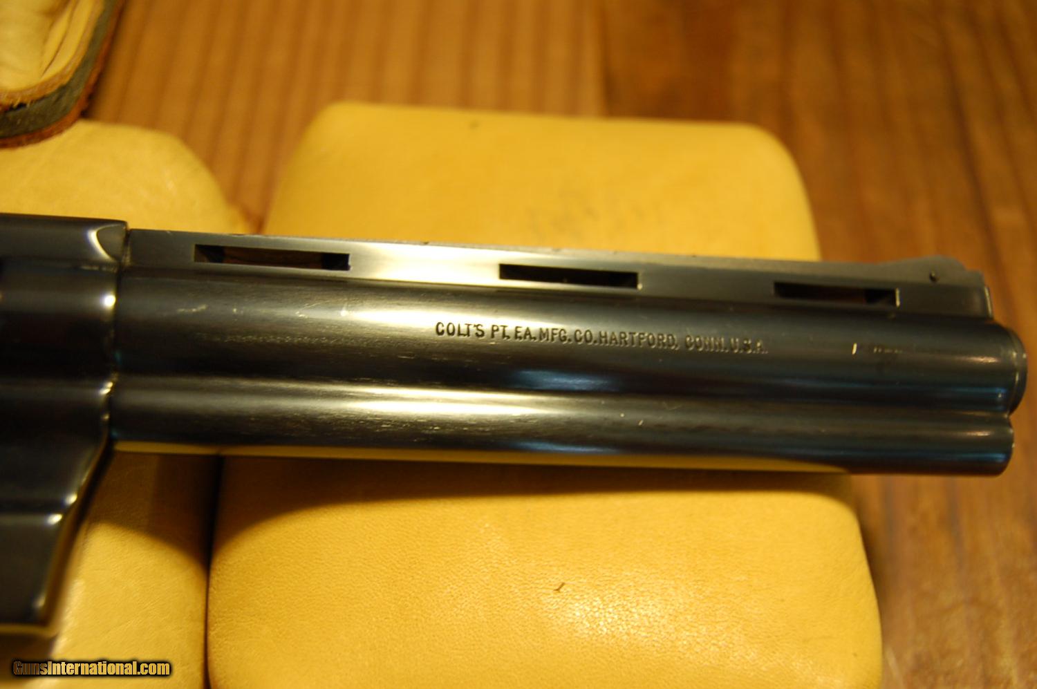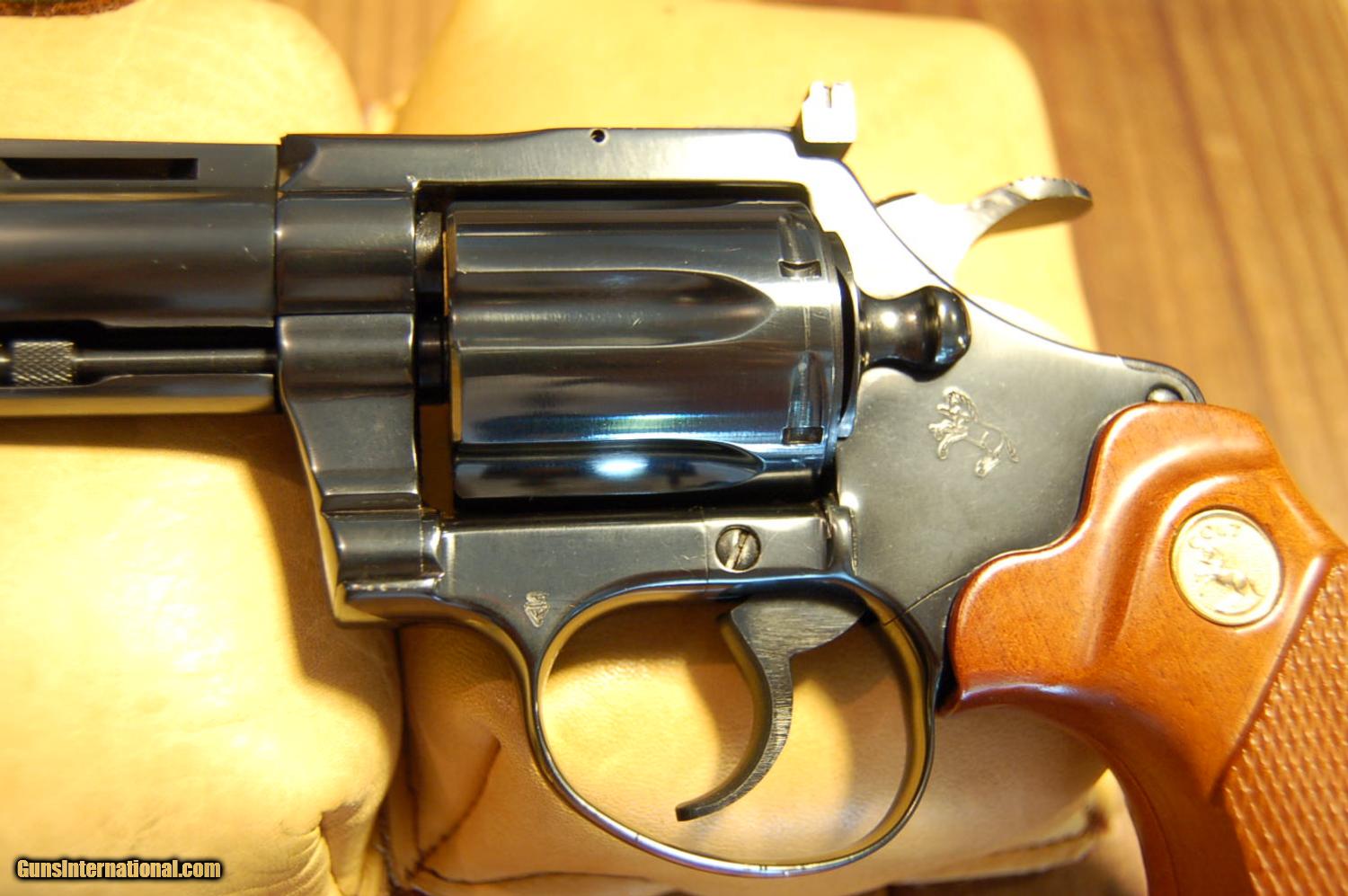 Description: This Colt Diamondback is brought to you by it's original owner - Purchased NEW at the Galyans store in Plainfield Indiana in 1978. This Snake has a 6 Inch barrel in 22LR caliber. It has an adjustable rear sight and a serrated blade front sight. It has a smooth hammer and flat bottomed checkerd wood grips. This revolver is in 90% condition overall. The original box and paperwork have been lost. There are a few dings along the top rib, the trigger guard, and the underside of the barrel (Please see attached photos for greater detail). Any other marks you may see are reflections! Specifications: Action:Double Action Barrel Length:6 Brand:Colt Caliber:22 Long Rifle Capacity:6 Category:Handguns Color:Blue Condition:Excellent Finish:Blue Firearm Type:Handgun Grips:Wood Gun Type:Pistol Manufacturer:COLT Model:22LR Safety:None Sights:Blade Front/Adjustable Rear Type:Pistol Type of Barrel:Vent Rib SOLD Manufacturer: Colt Model: Diamondback Caliber Info: 22LR Condition: 90% Metal Condition: 90% Wood Condition: 95%-98% Action: Double Finish: Blue Manufacture Date: 1978 |
