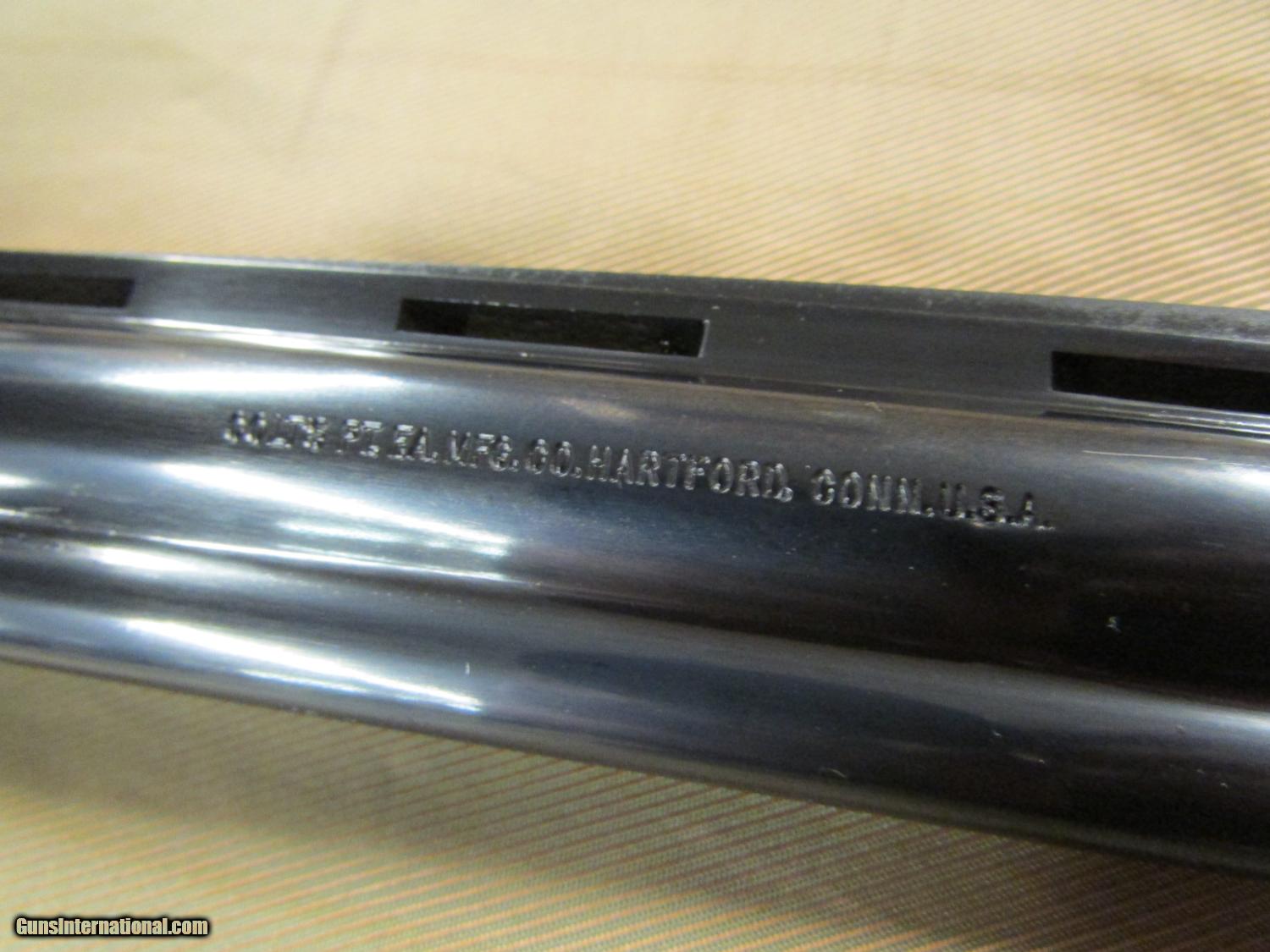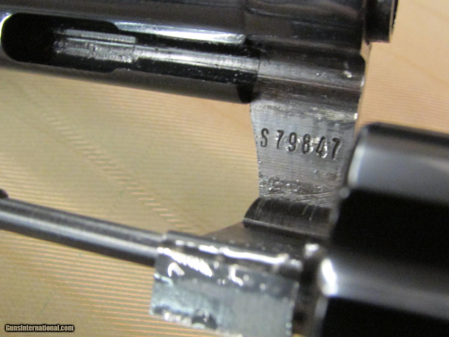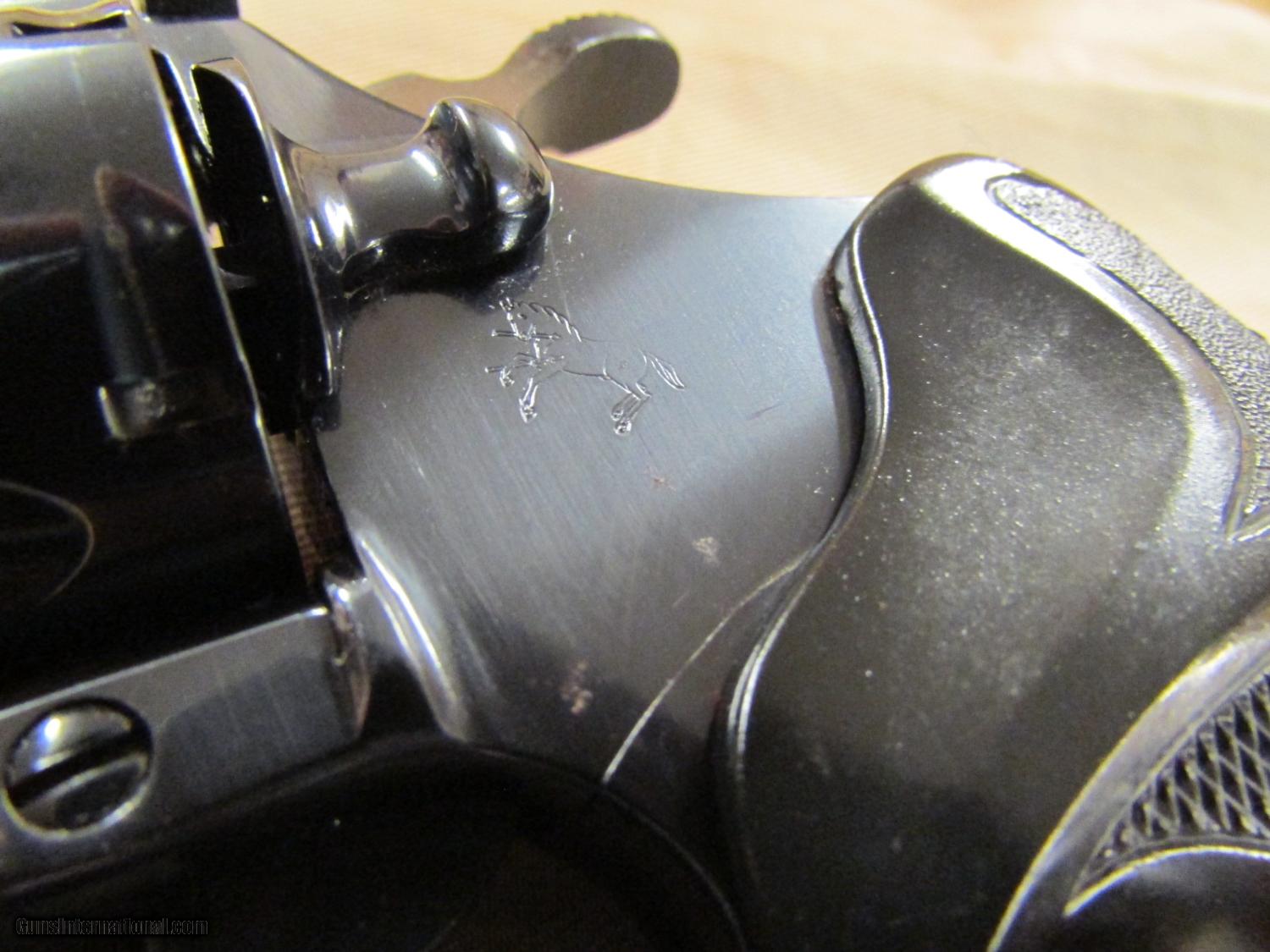 Description: Firearm is in 97%+ condition and is very lightly used and does not appeared to have ever been carried. Action is super smooth and tight, firearm locks up like a vault and appears to have had a few boxes of shells fired throughout it's life. There is the slightest about of blue wear on the very edges of the muzzle on either side as well as a couple light marks on the frame and cylinder. Only other condition issue is a couple of specs of rust on the left side of the frame directly below the Rampant Colt (shown in pictures). Pictures are of exactly what you will receive and are the best representation of the firearms condition! The Colt Diamondback is a revolver that was manufactured by Colt's Manufacturing Company of Hartford, Connecticut from 1. This particular model features a 6" Barrel, Colt Royal Blue finish and is chambered for the .38 Special Cartridge. Based on the serial number of S79847 the year of manufacture is mid-late 1979. The design of the Colt Diamondback was inspired by the highly successful Colt Python .357 Magnum. Being built on a slightly smaller frame the Diamondback was available in barrel lengths of 2½, 4, and 6 inches. Factory chambering options of this firearm included .22 Long Rifle, .22 Magnum or .38 Special. Colt introduced the double-action Diamondback as a deluxe model, built with the same precision and quality as it's bigger brother the Colt Python. Standard features of the Diamondback included a wide serrated target hammer, ventilated rib, fully adjustable target quality sights, and full-length barrel underlug. Please feel free to contact with any questions or interest and ask for Aaron. Shipping to lower 48 only, Shipping $30.00 KNOW YOUR LOCAL AND STATE LAWS!! The above prices on this item reflect a 2.5% cash, money order, or certified check discount. This discount is not valid for credit card purchases. Add 2.5% to the total cost for credit card purchases. SOLD |