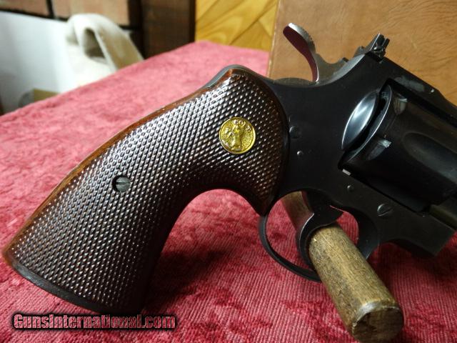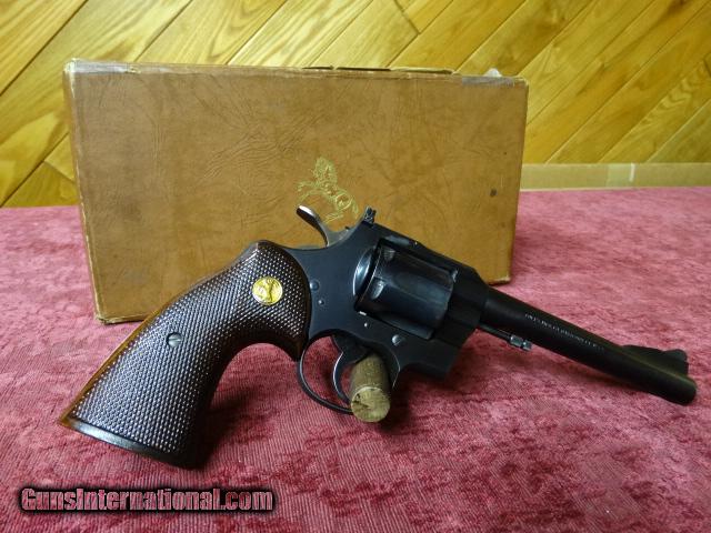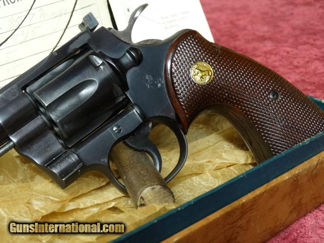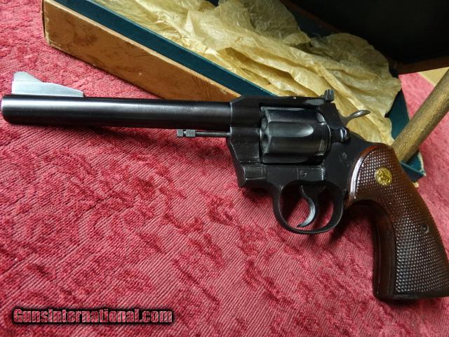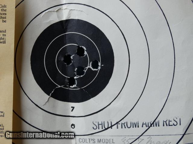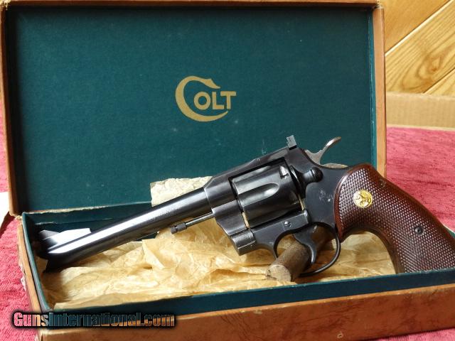 Description: "COLT .357 REVOLVER" / Mfg'd. in 1955 according to serial # research, with 6 inch barrel / target style hammer and trigger / adjustable " ACCRO REAR SIGHT " / non wooden style "ORIGINAL GRIPS" with COLT MEDALLIONS. This 60 year old "CLASSIC REVOLVER" often referred to as the "PRE-PYTHON" appears to have not ever been used and comes in original COLT brown box with test target as well as asst'd. papers from era. This fine revolver belongs in a serious COLT collection as revolvers from 1955 in this condition are few and far between. This piece is priced to sell at $1650.00 total including shipping / handling / and insurance to F.F.L. or C&L WITHIN THE CONTINENTAL U.S.A. SOLD Curio/Relic: Yes Manufacturer: COLT Model: .357 REVOLVER / PRE-PYTHON Caliber Info: .357 MAGNUM Condition: EXCELLENT Barrel Type: 6 INCH Action: DOUBLE Manufacture Date: 1955 |