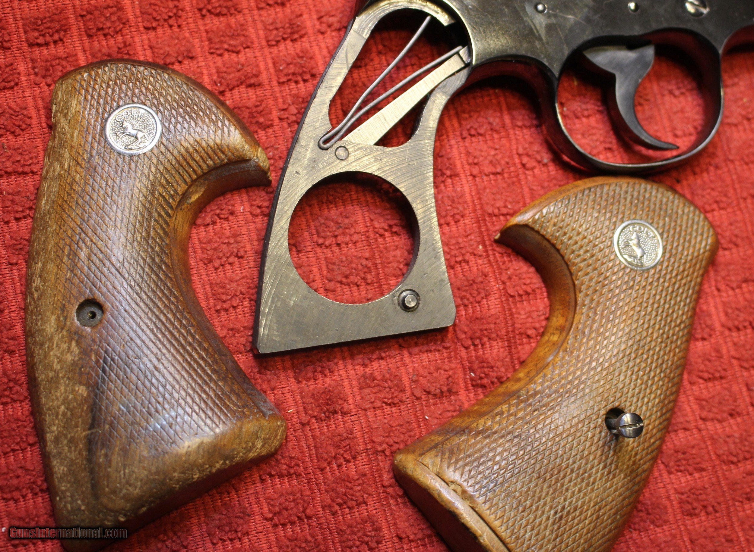 Description: We have a Colt 357 Magnum Pre Python 4" Blue Revolver. This was the fore runner of the Python. According to some internet searches the internals are same as a Python. Serial Number indicate 1959 year of manufacture (according to the Colt Serial Number look up ) The grips are probably original but with amount of significant wear on the right grip have less than ZERO no collector value. There is plenty holster wear. Just a solid 357 Magnum revolver with some personality. Well lots of personality. There is a set or rubber grips as shown in the pictures that was with the firearm as inventory. Guessing the rubber grips were either part of the trade or just added for use. Just a guess. This was a duty firearm for someone who worked the streets.. All of the holster wear indicate plenty of time in a holster. The right grips is totally worn as if in a right hand duty holster. Just a solid service gun. We took as many pictures as we could to show everything possible flaw. There is NO box or paperwork. Just the gun and those extra grips This came from the one of five estates we represent of an FFL/SOT Gun Smith, Gun Store. There will be countless other listings ranging from firearms from antique to modern to custom. There will be countless non firearms from vintage ammo to "take off" parts to just whatever a store accumulates. All of this for the past 4 years as well as the next 4 to 5 years. We are selling for the each of the five estate/store. This is NOT a liquidation. We DID NOT buy them out. There are no lists and will be no lists. Please check our other listings for the items. NOTE: Look close at the pictures posted As is means AS IS. There is no refund You are welcome to check out our webpage or facebook page at P&T Partners Price is for Certified Funds meaning Certified Check or USPS Money Orders Credit or Plastic in any form, shape or manner add 3.5% NOTE: Credit by PHONE only and add 3.5% I post on many of the firearms forums as PT-Partners. This is an FFL to FFL Transaction, as PT-Partners is a retail/FFL Dealer. For those that are local, there is no Face To Face. On Line means On Line Shipping on this one is included. Shipping will be UPS Next Day Air Signature Required with an adult signature at the receiving end. Shipping is NOT FREE just included. For all in states where the local laws restrict this type of firearms, DO NOT BUY. If your local laws restrict the magazine capacity, again do not buy. SOLD Curio/Relic: Yes Handgun Caliber: .357 Magnum |