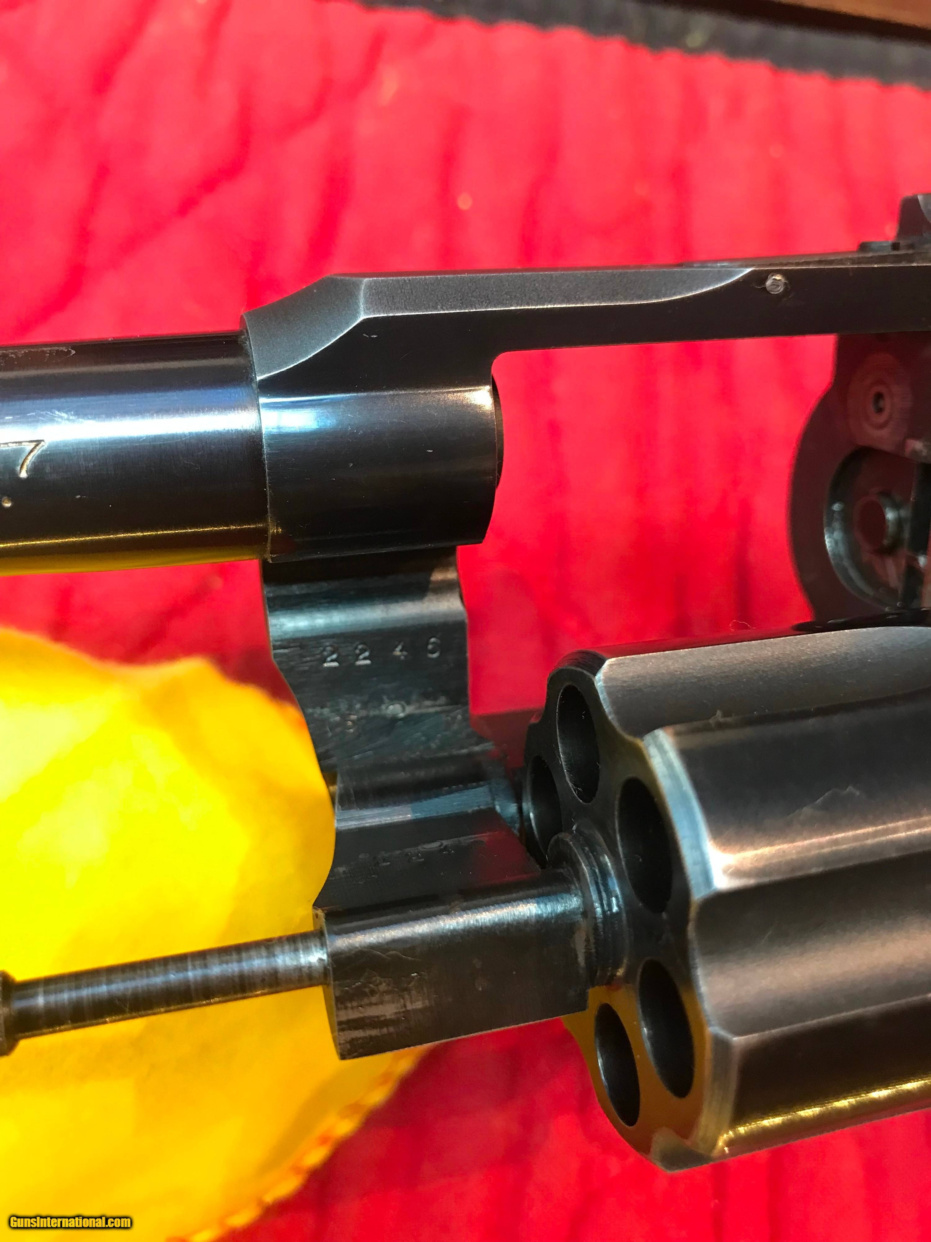 Description: Very fine example of the Colt 357 Mag Made between 1953 and 1961 Pre curser to the Python. Would make a great addition to any Colt revolver collection. SOLD Handgun Caliber: .357 Magnum Manufacturer: Colt Model: 357 Serial Number: 2246 |