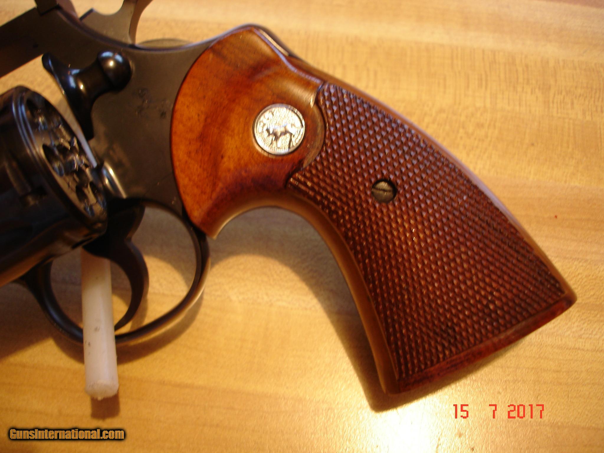 Description: Out of my collection I have for sale a Very hard to find Colt Officers Model Match 5th issue, D/A Revolver in .22 WMRF Caliber. Mint! Over all Original condition. Appears that it may be unfired? 6" BBl. Blue MFG in 1959 Target Stocks and wideTarget Hammer. Arco adjustable target sights. There were only 850 Made in .22 Magnum. I do have a box that came with the revolver but it is not numbered to the revolver it does have a warrenty card and is in Excellent condition. I have ownened this Rare Colt for over 20 years, it is a duplicate in my collection. So I have decided to offer it for sale. SER#. 77895 What A Great Difficult to find Colt D/A Revolver in a wonderful Rrim-Fire Caliber. Ask about our Free layaway's Shipping & Insurance to your FFl is $30.00 C&R is also fine for this Colt. SOLD |