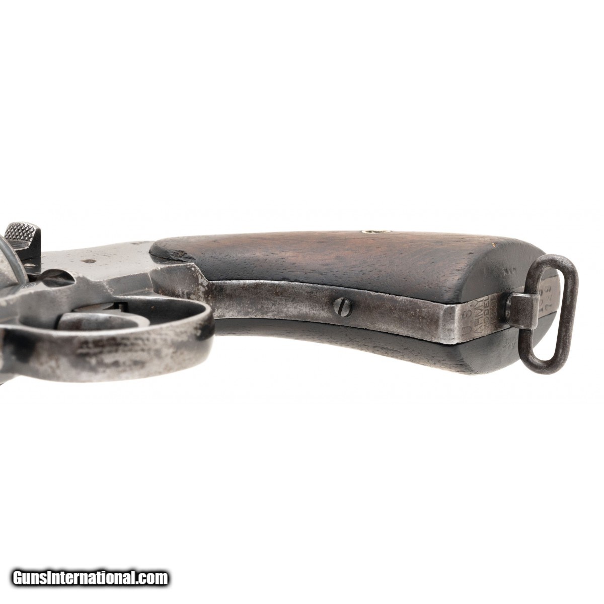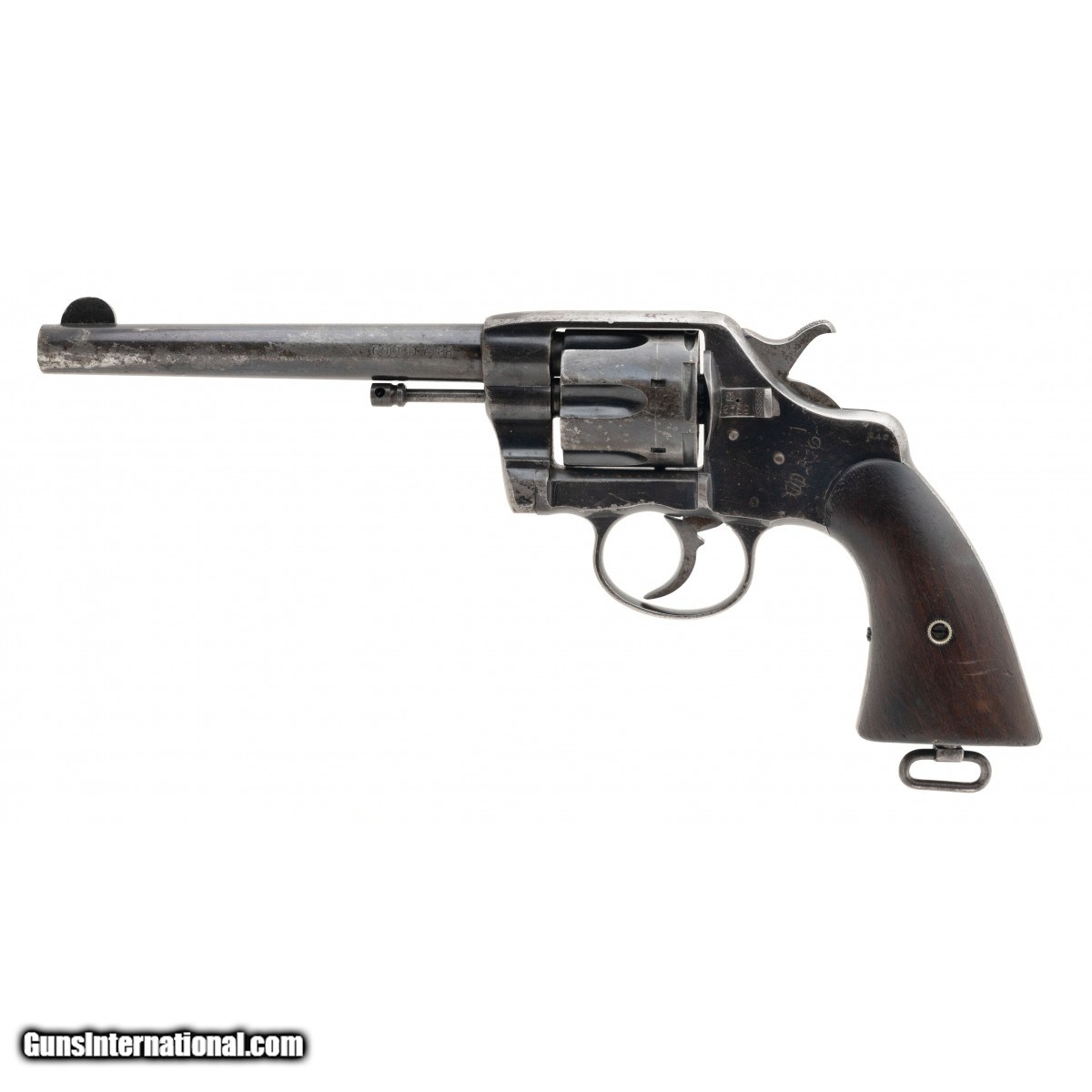 SN: 109729. Made in 1901 .38 LC with 6"" barrel. Bore is good condition. US Military double action revolver with fixed sights and wood grips. Metal has 50% of its original blue with wear. Grips are in very good condition. Overall condition is fair