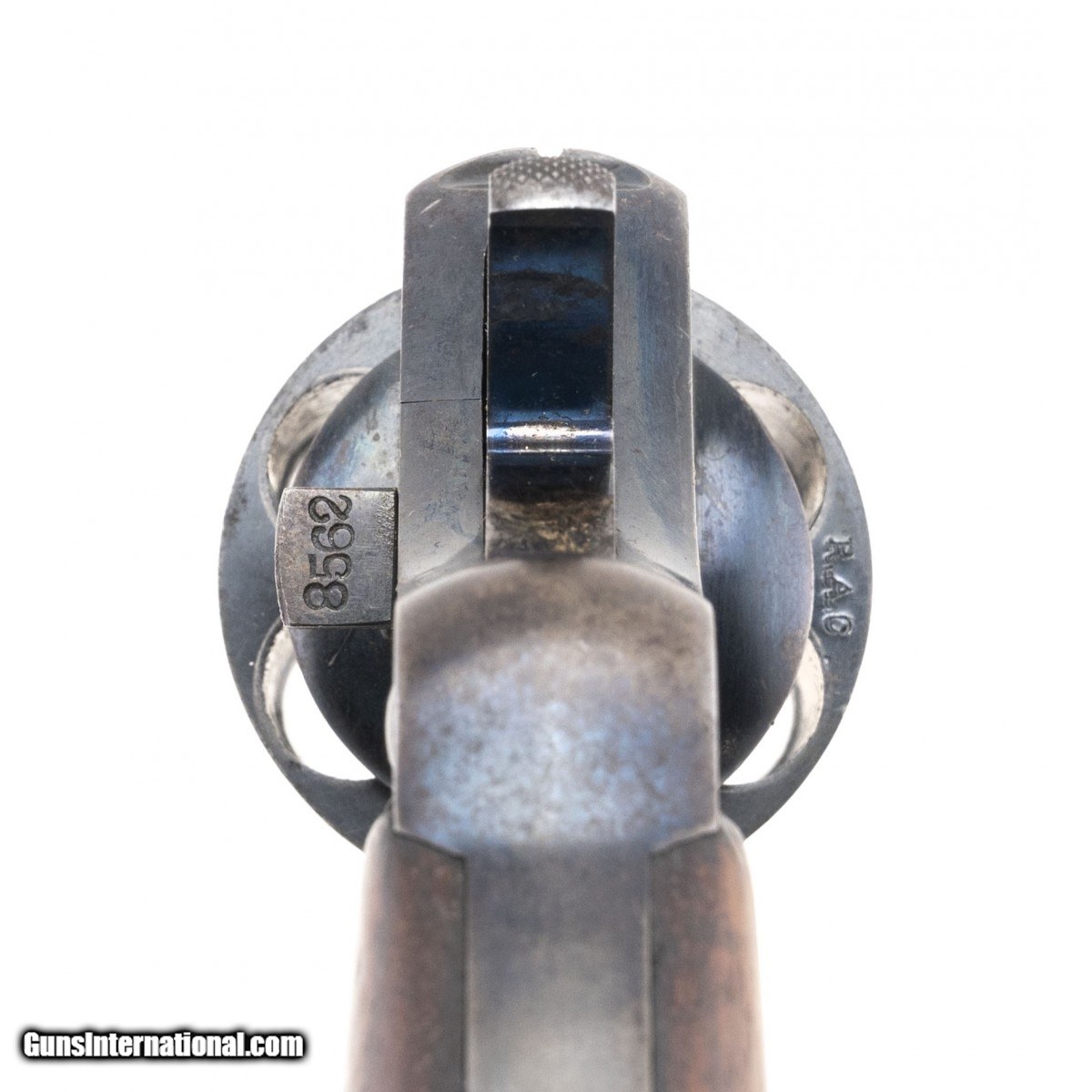 Description: " WWI U.S. Army issue revolver with 5.5"" barrel. The revolver is marked U.S. on the underside of the grip and barrel. The revolver has approximately 65% of its original blue that is beginning to patina. The bore is excellent, bright with strong rifling. The grips are very good with minimal handling wear. Overall a very good plus condition. SOLD Curio/Relic: Yes |