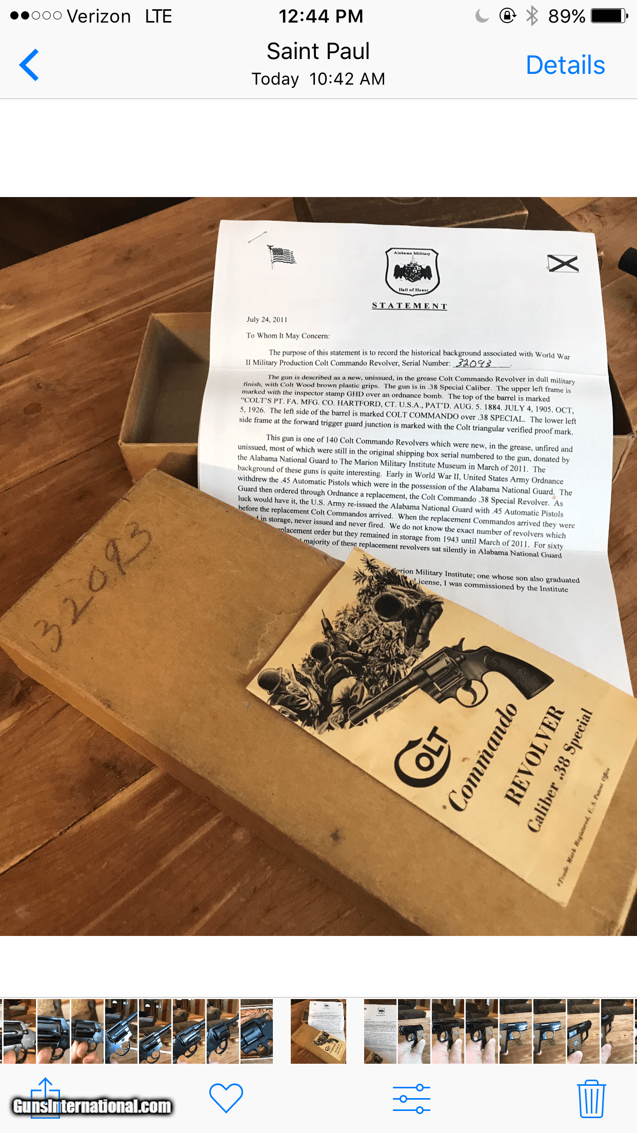 Description: "WE NEED INVENTORY" WE BUY, TRADE & CONSIGN QUALITTY FIREARMS Sold Letter from the Alabama Military Hall of Honor states this gun is New, Unissued, In The Grease Colt Commando Revolver in dull military finish, with dark Colt Wood brown plastic grips. This revolver is one of 140 Colt Commando Revolvers which were new, in the greese, unfired and unissued, most of which were still in the original shipping box serial numbered to the gun. A complete example with a letter of validation. Buyer pays $35 shipping to FFL. 1,795.00 or best offer. SOLD |