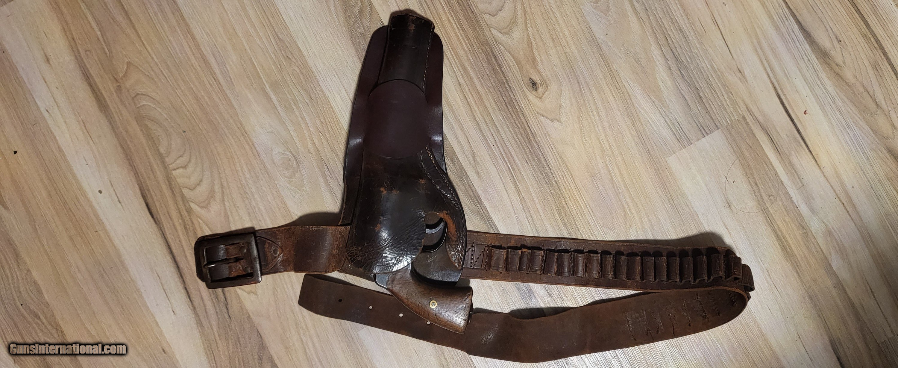 Description: This is a beautiful original finish colt new service in 4440. In a very nice Early cowboy rig The gun is nice and tight with a really nice bore and a perfect smooth action It's an original gun it's never been refinished I've owned this rig for well over 35 years The gentleman I Bought it from's Uncle was a cowboy in Oklahoma From the teens to about 1940 SOLD Curio/Relic: Yes Handgun Caliber: .44-40 Winchester (.44 WCF) |