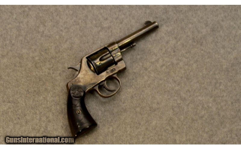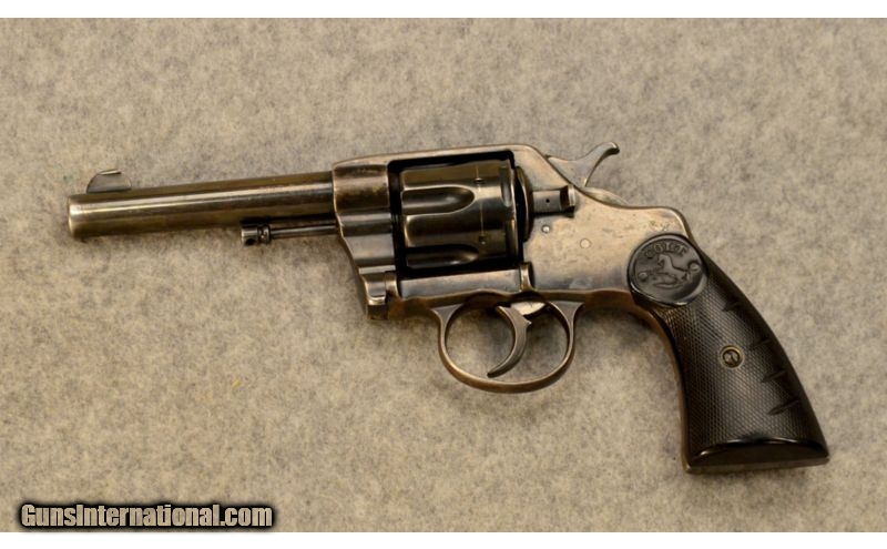 Description: This is a pre-owned Colt revolver. SOLD Curio/Relic: Yes Manufacturer: Aprox. 1903 Caliber Info: .38 Colt Metal Condition: Fair condition with scratches and light pitting. Wood Condition: Fair condition with small scratches and notches carved into the grips. Bore Condition: Clean with visible lands. Barrels: 4 1/2 inch. Stock: Civialian style hard rubber grips, there are 4 notches carved into the left grip. Weight: 2 lbs. Sights: Notch rear with a blade front. Item Location: Glendale, AZ |