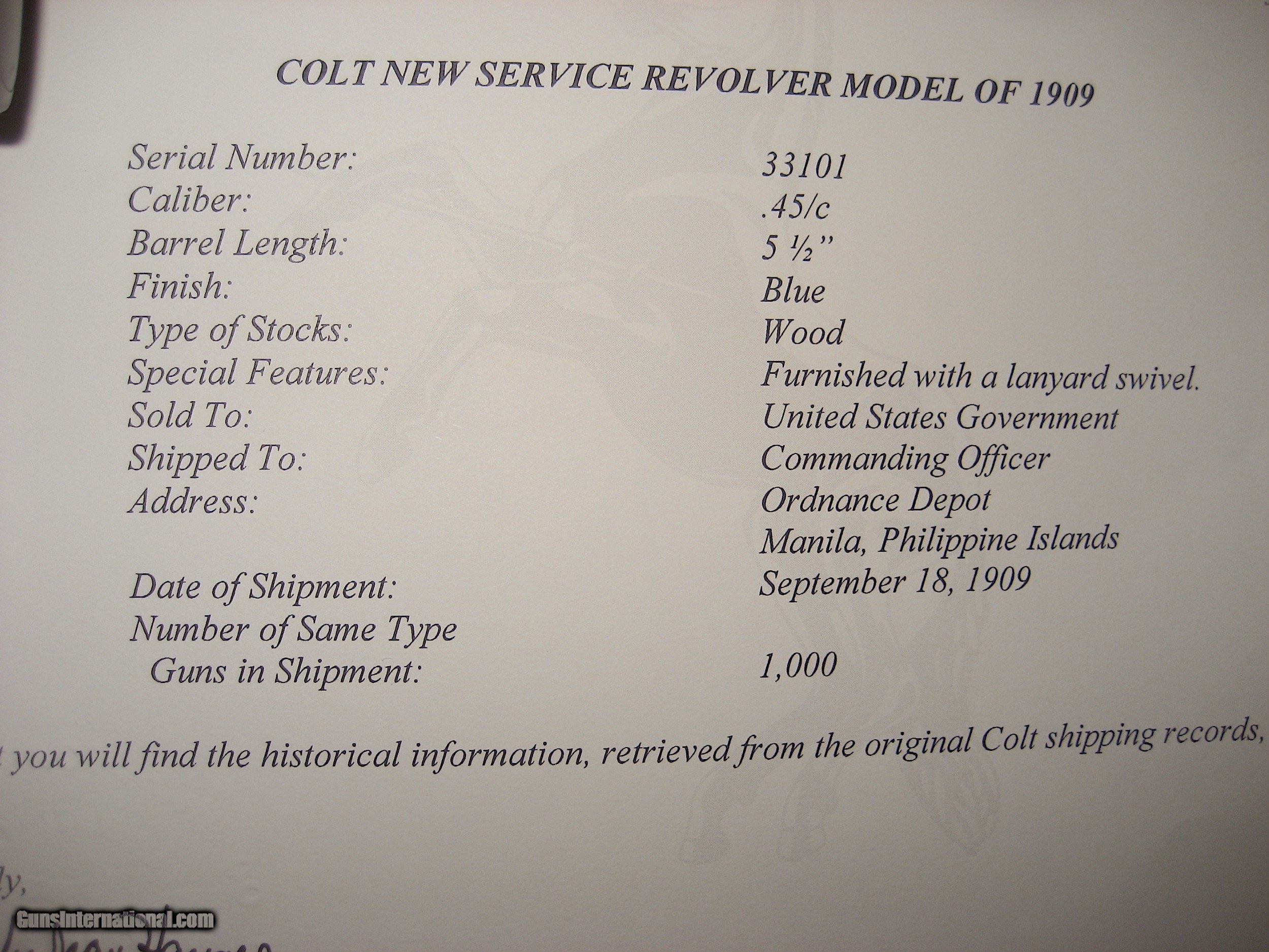 Colt 1909 .45 Colt Revolver - 1910 Philippines Shipment for Changing to .45 Colt from .38