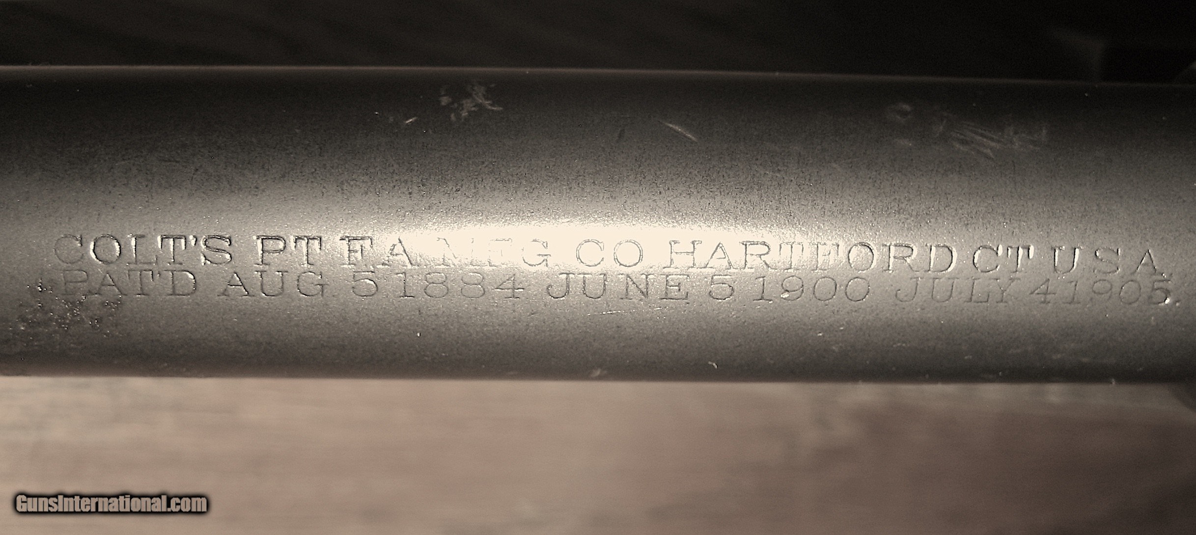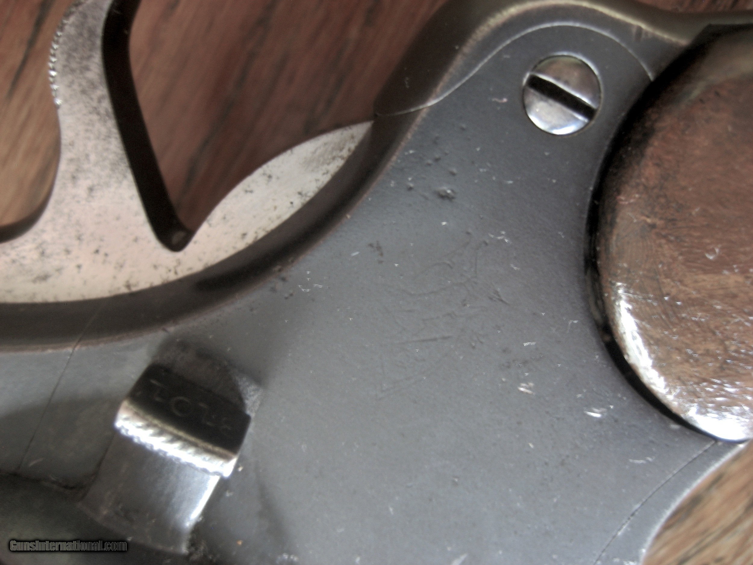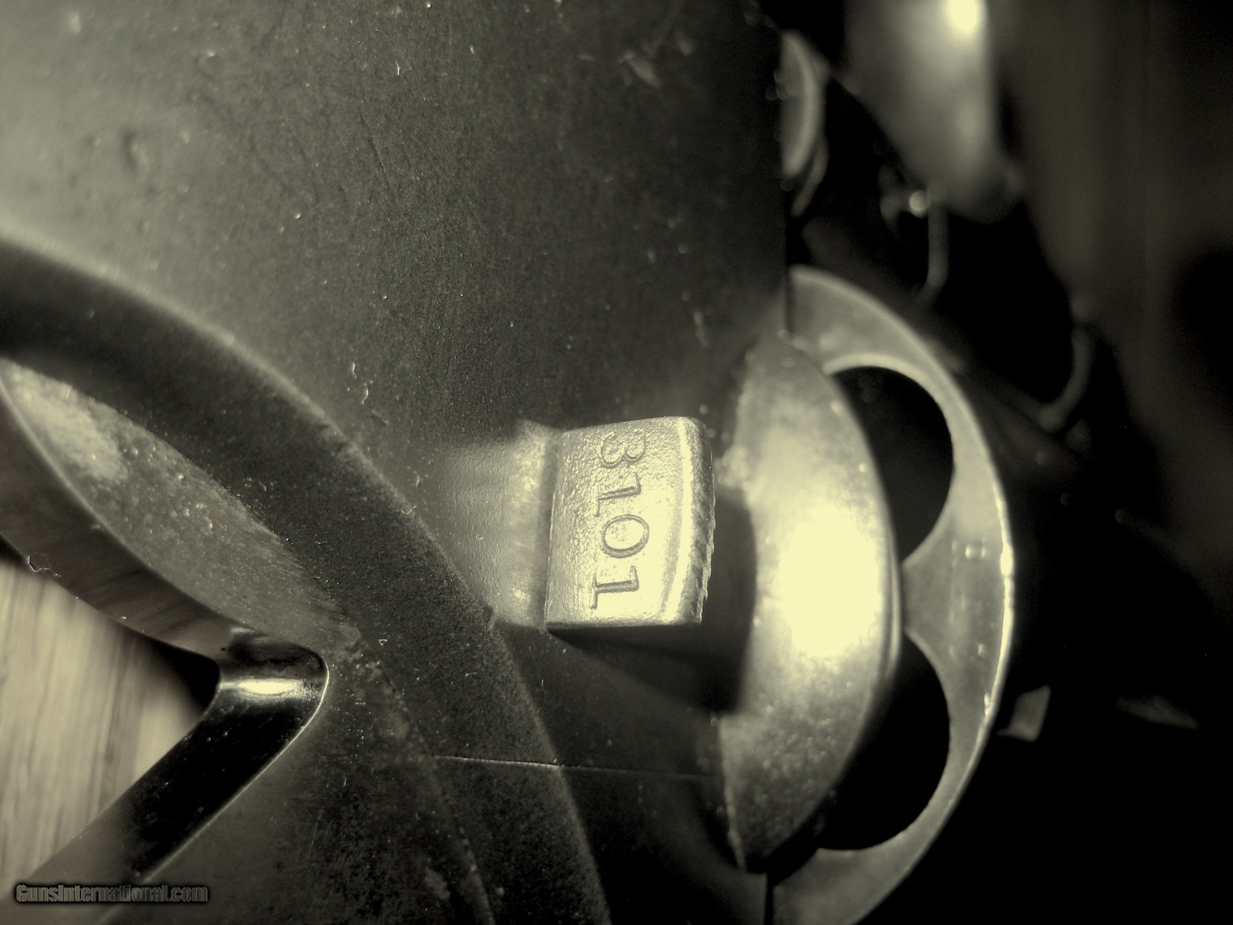 Colt Archives Official Letter stating "Shipped to: Commanding Officer, Ordnance Depot, Manila, Philippine Islands, September 18, 1909, Guns in Shipment 1,000". The Philippine Moro Rebellion after the Spanish American War demonstrated factually that the .38 Colt was an unsatisfactory man stopper. The Moros would take a cylinder of .38 Colt’s and keep on coming. With the result that many American Soldiers were either seriously wounded or killed by the Moro’s knives and machetes. The Army replaced the .38’s with .45 Colts. One of the .45 rounds often did what six of the .38 Colt’s bullets could not do. Stop a charging Moro cold. The War Department placed initial orders for 6000 New Service revolvers Caliber .45, on December, 17 1908. They were officially designated as" Colt's Double-Action Revolver, Caliber .45, Model of 1909". The marking "U.S. ARMY MODEL 1909, N0. 34130. The serial number marked on the butt is the same number stamped under the receiver as well as on the crane. All numbers match. The cylinder latch was marked on the rear with the last 4 digits of the serial number. The stocks were hand numbered inside as well as marked on the butt with the inspectors initials "RAC" (Renaldo A. Carr.) The right side of the receiver was also marked with the initials of the inspector as well as with those of the "Army Inspector of Ordnance". Additional orders were placed in 1910 and 1911 for a grand total of 19,503 pistols. The pistols were serial numbered from 30001 through 49503. This one is number 33101. Bore shiny and riflings still very strong. Grips generally good and solid. 90% Blue remaining. Cylinder tight. Bright fire blue on the trigger. Small pitting in bore. Fully Functional, Shootable. Curio/Relic: Yes Zelle, cashiers check, money order or personal check accepted. SOLD Curio/Relic: Yes Handgun Caliber: .45 Colt Manufacturer: Colt Model: 1909 Serial Number: 33101 Condition: Very Good Metal Condition: Very Good Wood Condition: Very Good Bore Condition: Good Action: Revolver Finish: Blued Manufacture Date: 1909 |