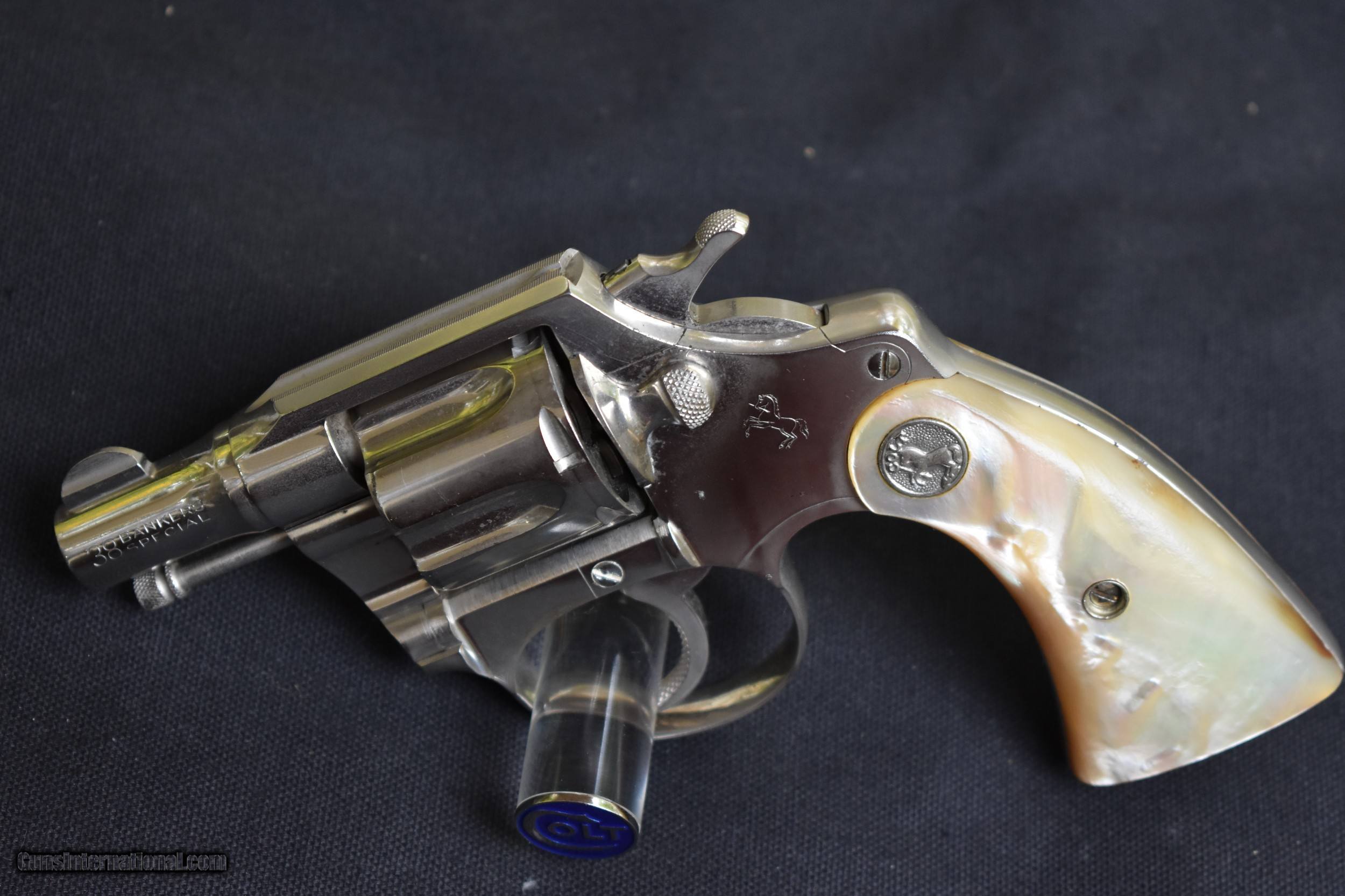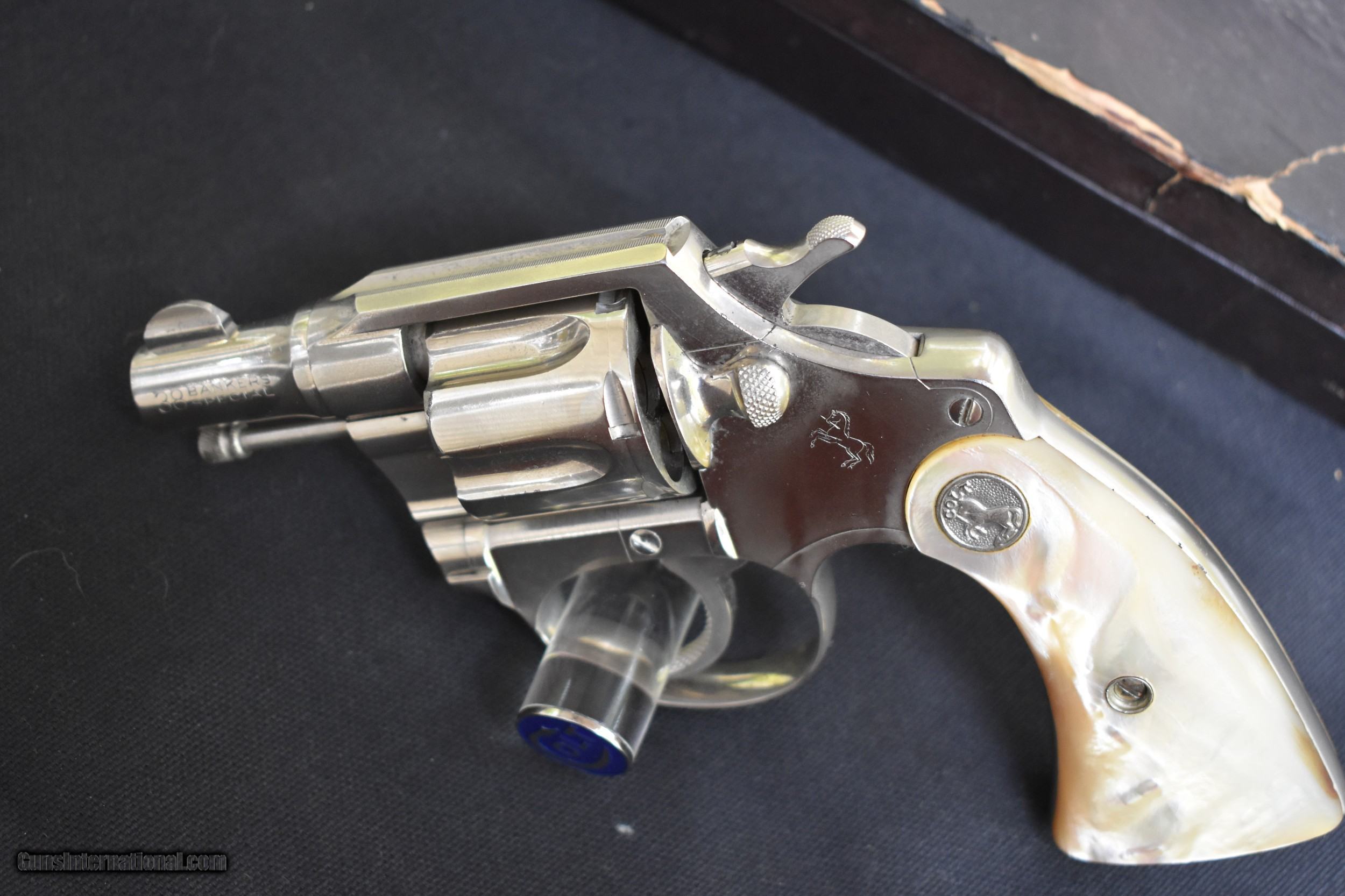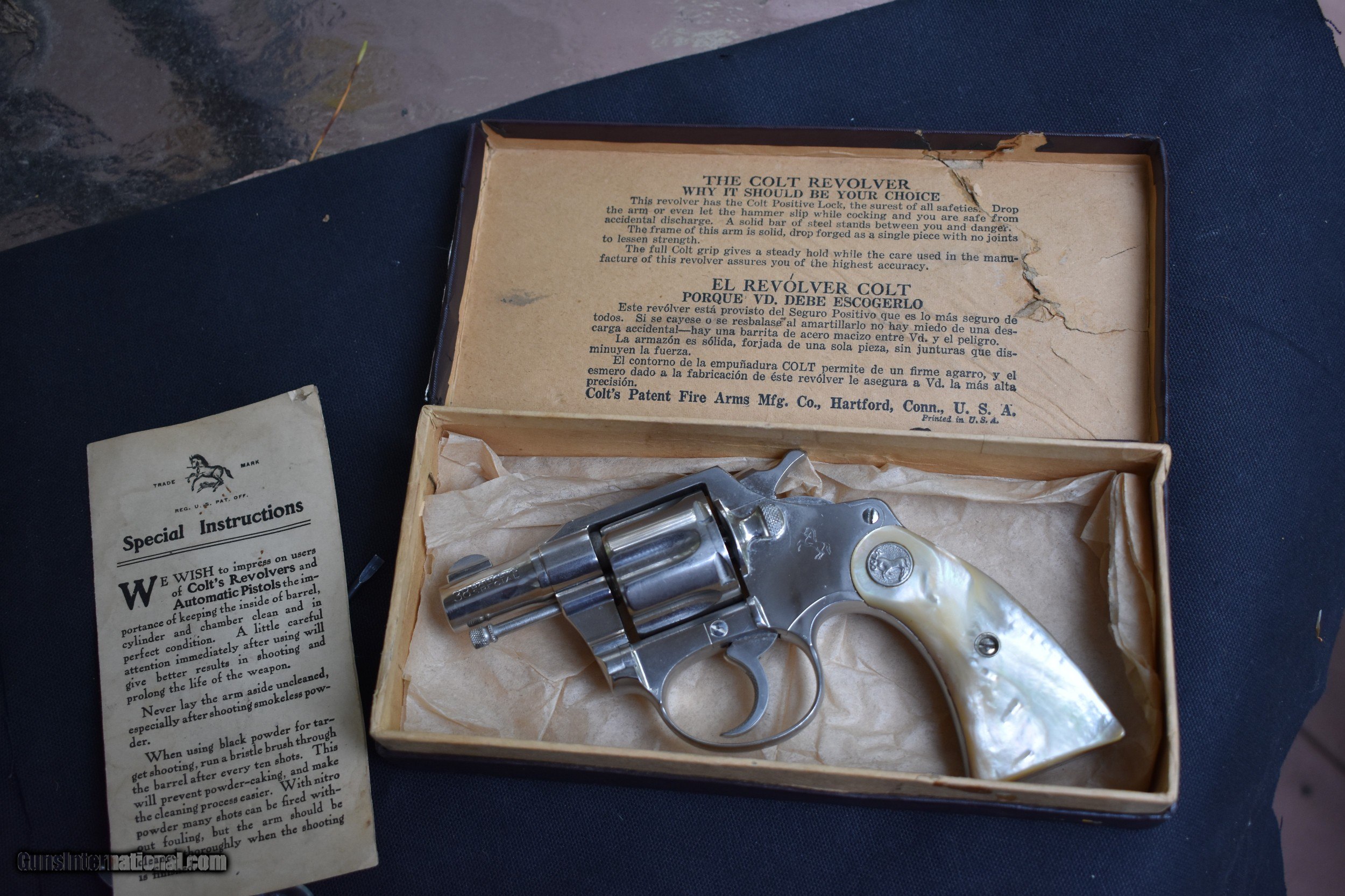 COLT BANKER SPECIAL PRE WAR 1937 SQUARE BUTT NICKEL WITH FACTORY BOX AND FACTORY MOTHER OF PEARL GRIPS