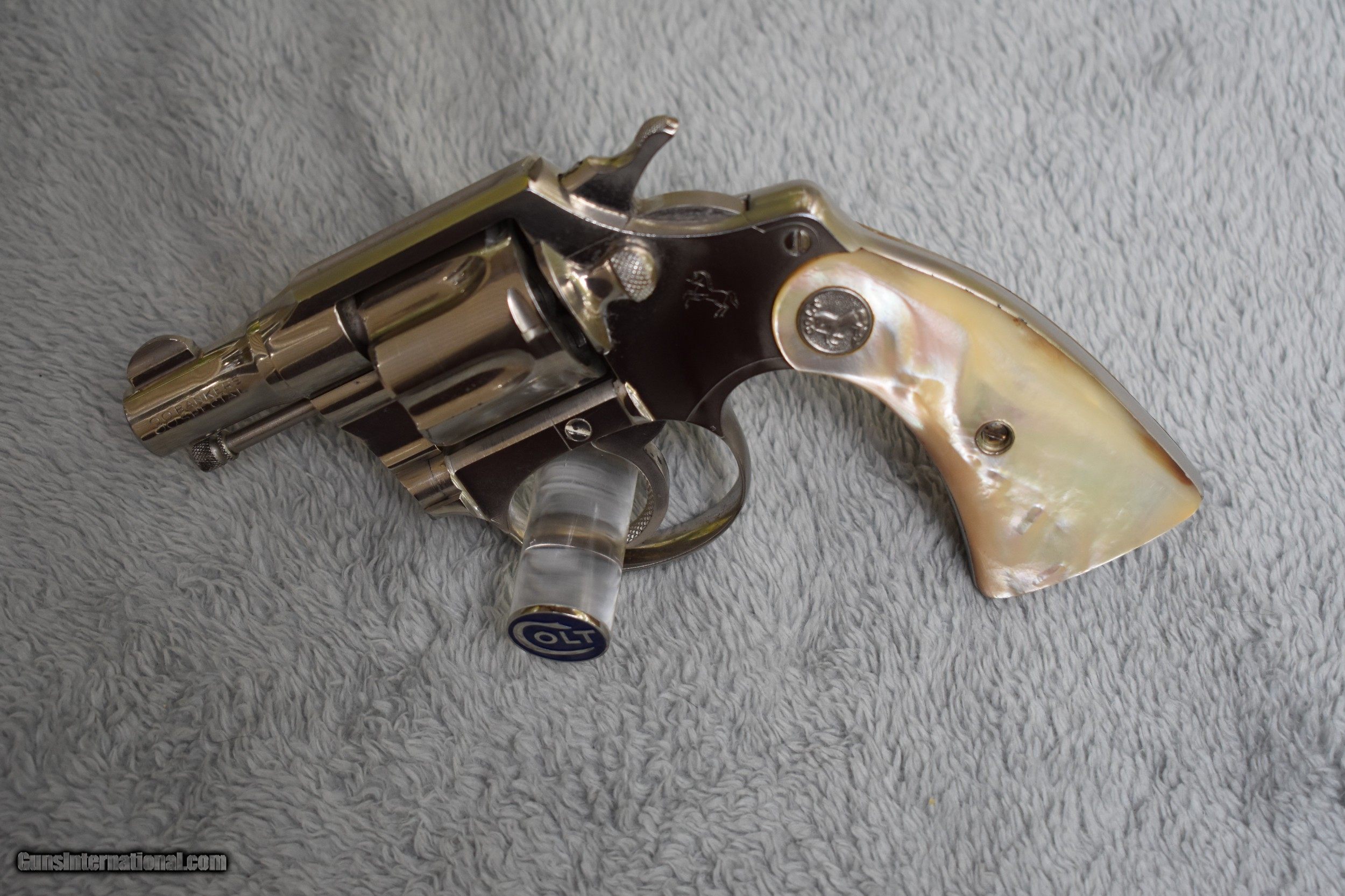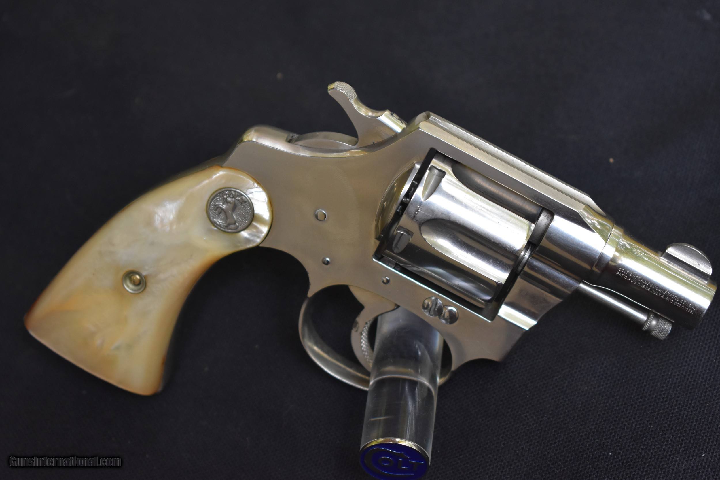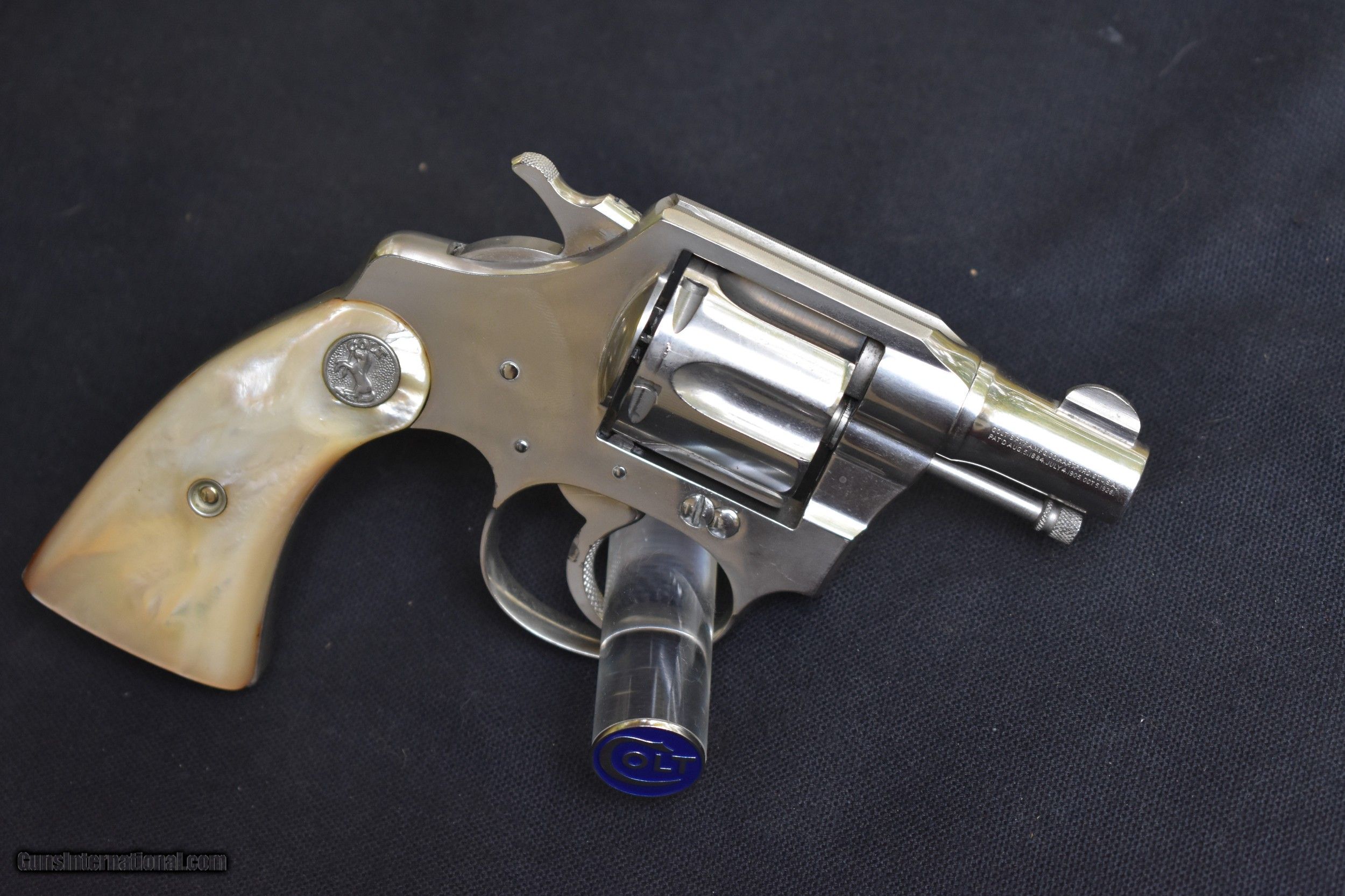 COLT BANKER SPECIAL PRE WAR 1937 SQUARE BUTT NICKEL WITH FACTORY BOX AND FACTORY MOTHER OF PEARL GRIPS