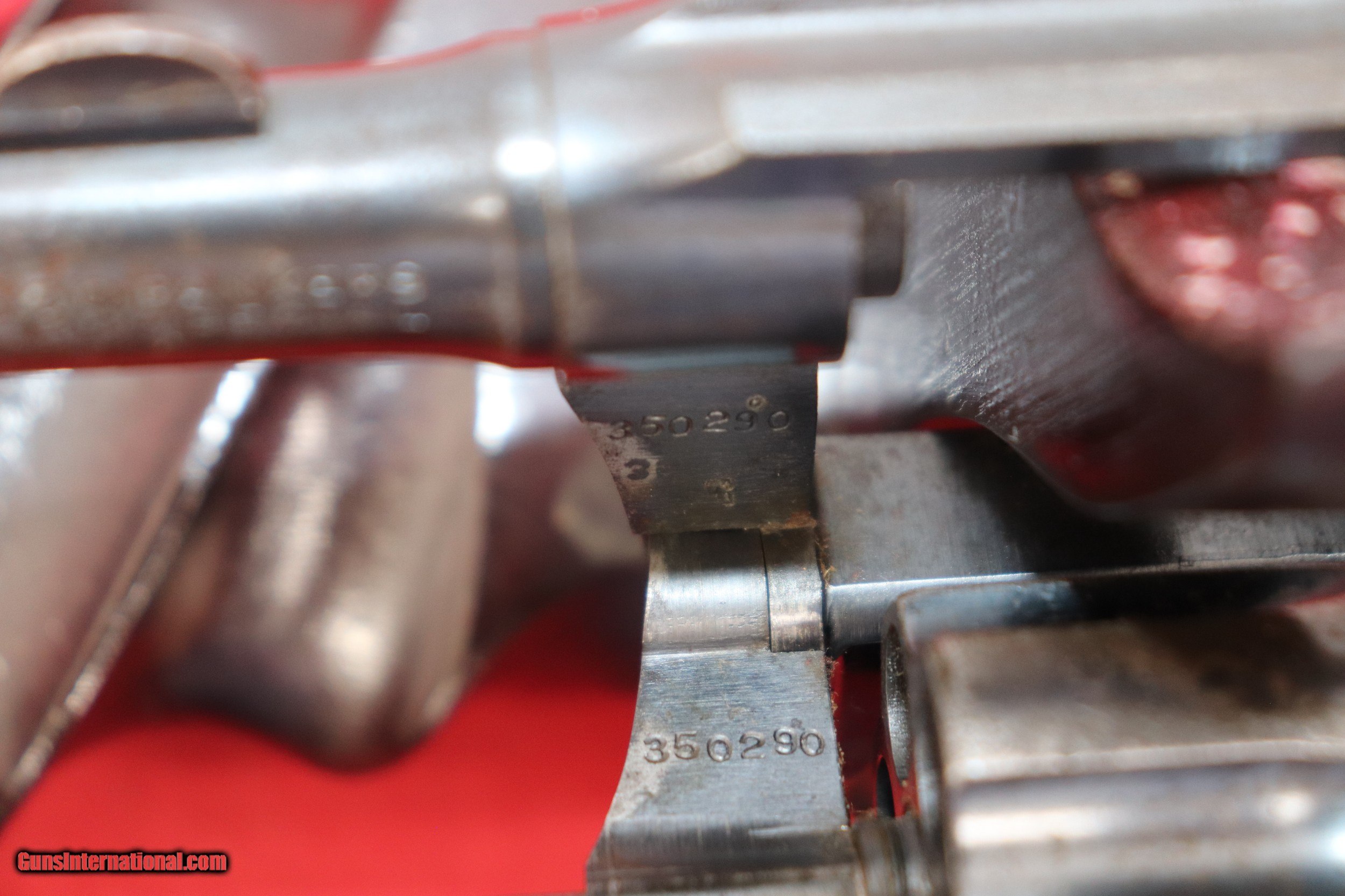 Description: Price reduced....Another great item from Gainesville Pawn! Up for sale is Colt Banker Special. This is a very neat and scarcely seen gun. This Banker Special was sold to the United States Post Office and was used in the sub unit Railway Mail Service. It was shipped to Springfield Armory and is proofed by the inspector at the time Col. George A. Woody. It is Factory engraved R.M.S. P.O. DEPT. on the backstrap. It also bears the factory engraved Postal service serial number on the butt No. 11791 These are scarcely seen and most of the 20000 bought by the Postal service were destroyed in 1992. This one saw some use while 85 percent of the color remains there is quite a bit of frecking all over. This prewar colt was made in 1931. Very good bore and it functions good with good timing. The Walnut checkered grips with Colt Medallion's are original but show significant wear. Caliber is .38 Colt New Police. *Please be aware that all items are sold “AS IS”. Feel free to call us at our store (352) 240-6452 or email us at Gainesvillepawngmail with ANY questions. We do not accept trades or offers through through Guns International We only entertain trades and offers through our store. $35 shipping and handling. Insurance extra. We only accept USPS money orders and major credit cards for payment. 3% convenience fee for credit cards. WE collect Florida state sales tax for in state sales. Please be aware that this item is for sale in our store as well as the occasional gun show so it may be sold there at any time. We will not ship the item until you have your dealer/receiving store email us a signed copy of their FFL to gainesvillepawngmail. SOLD Curio/Relic: Yes Handgun Caliber: .38 S&W (.38 Colt New Police, .38 Super Police) Manufacturer: Colt Model: Banker Special Serial Number: 350290 Barrel Length: 2 inch Condition: good Metal Condition: good Wood Condition: poor Bore Condition: good |