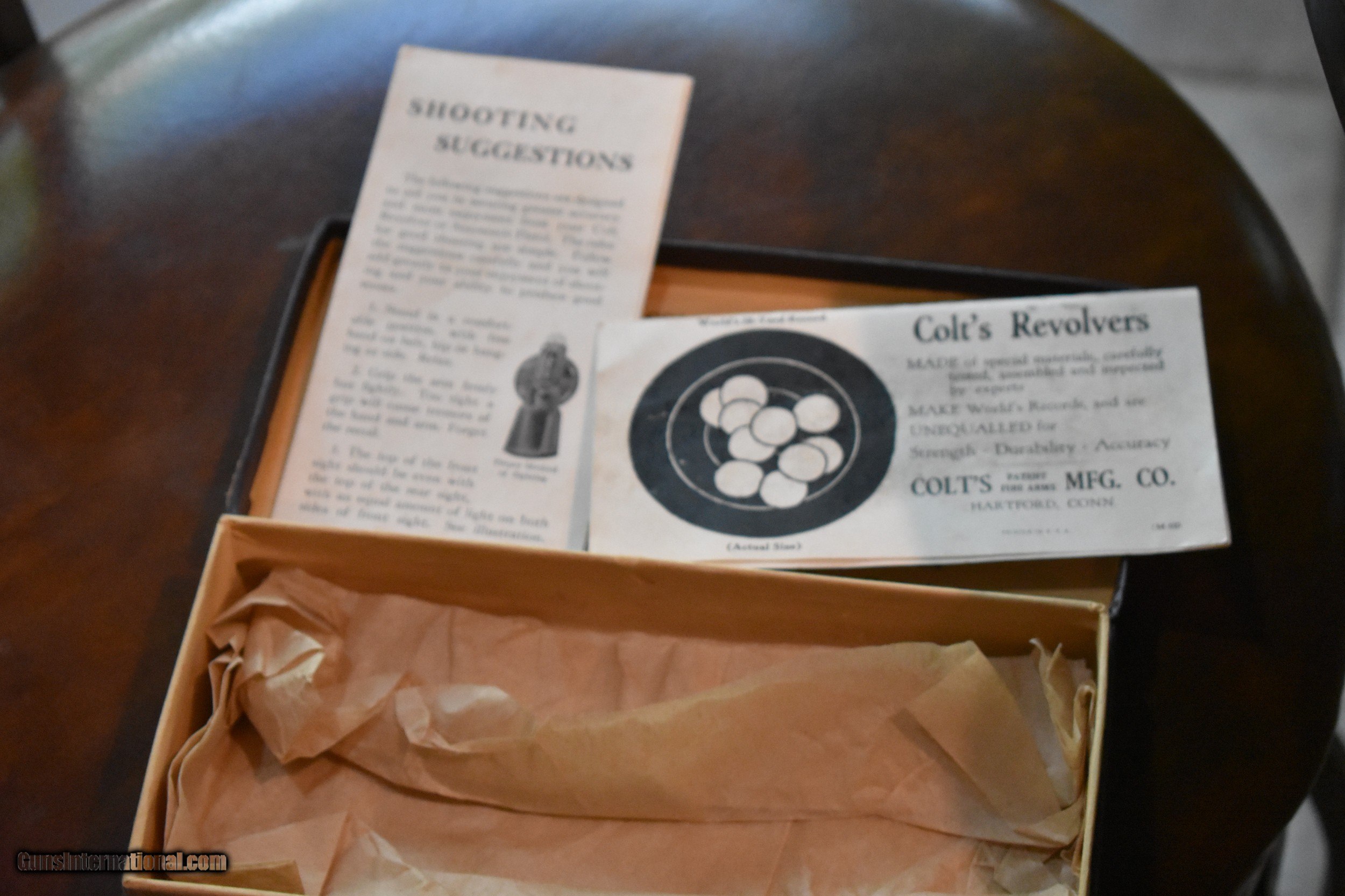 Description: Extremely rare Colt Bankers Special 22 Nickel Factory finish with factory Colt Archive letter. Colt manufactured the .22 caliber Banker Special from 1931-1941. The total production is estimated at about 1000, of that number approximately 50 were made and sold with nickel finish.This gun is in unfired condition. This gun also has factory original box with serial number to the gun. I have purchased my Colt Bankers as an investment or like a bank CD with no intention of selling at this time; however due to a recent medical diagnosis I have decided to sell my Colt Bankers and collection. Buyer must have a FFL or Curio Relics License all shipping and insurance paid by the buyer. 810-300-4993 SOLD Curio/Relic: Yes Handgun Caliber: .22 Long Rifle Manufacturer: COLT Model: colt bankers special 22 nickel Condition: EXCELLENT Metal Condition: EXCELLENT Wood Condition: EXCELLENT Finish: FACTORY NICKEL |